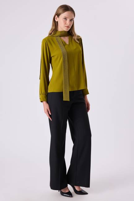 V yakalı fuları taşlı bluz