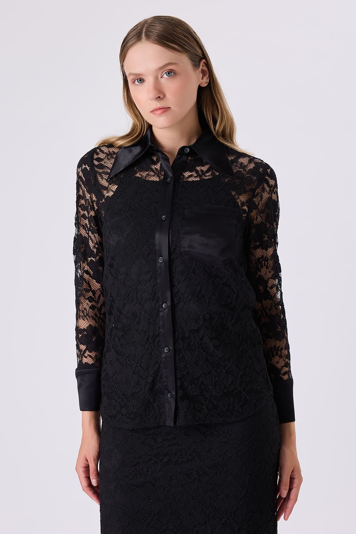 Siyah dantel gömlek