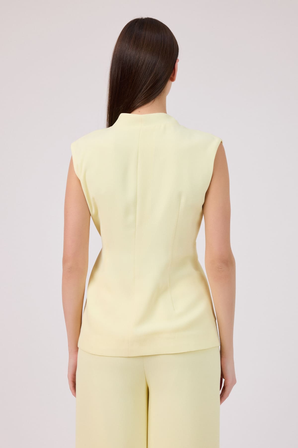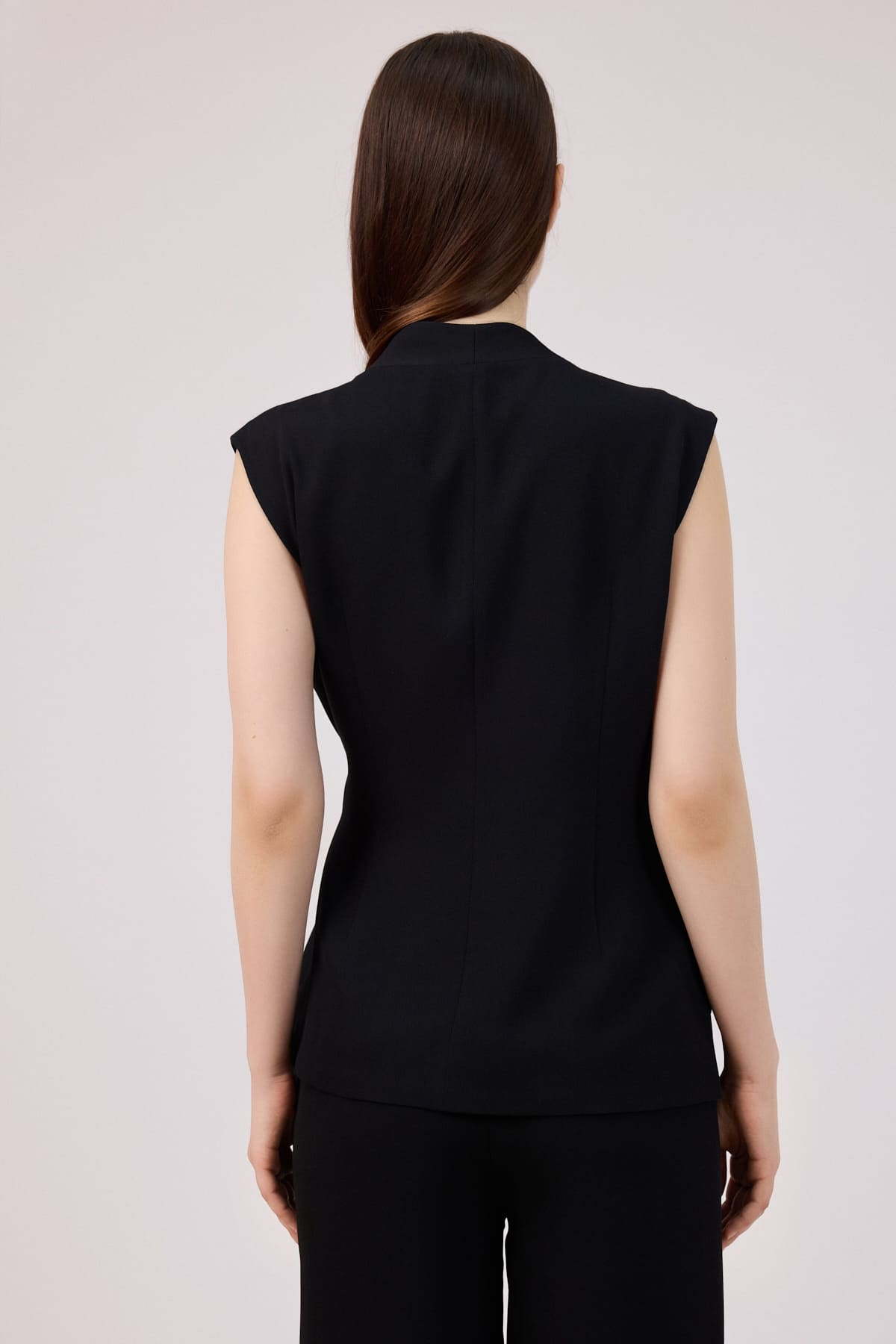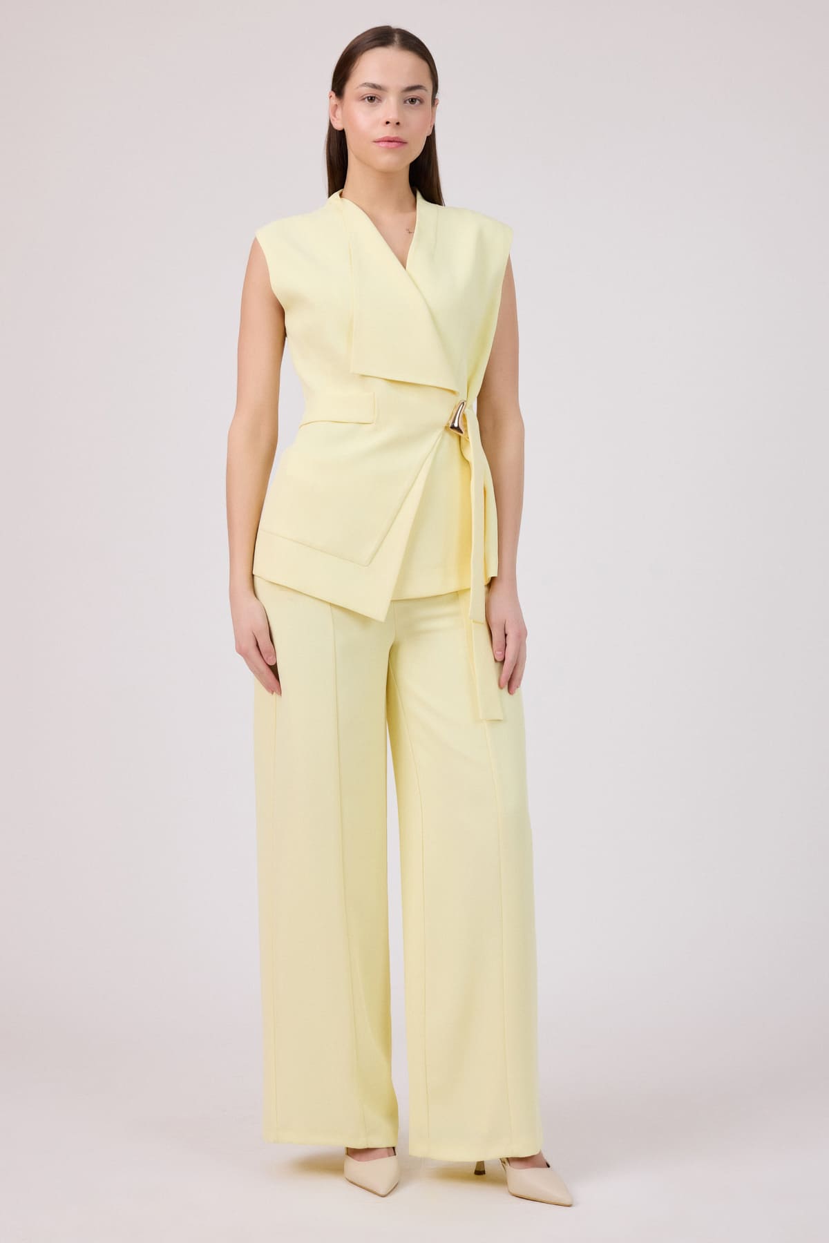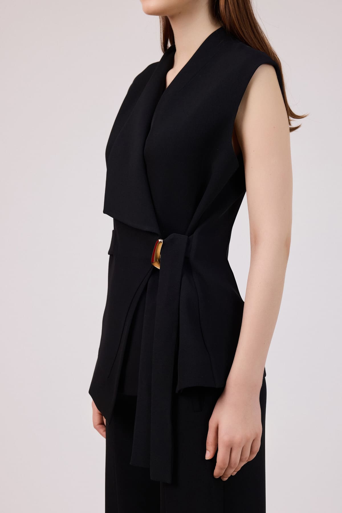 ÜRÜN BİLGİSİ:Hafif dökümlü kumaş,tek tarafta asimetrik yakalı,gold metal aksesuarlı ve ön yanda bağlamalı şık yelek