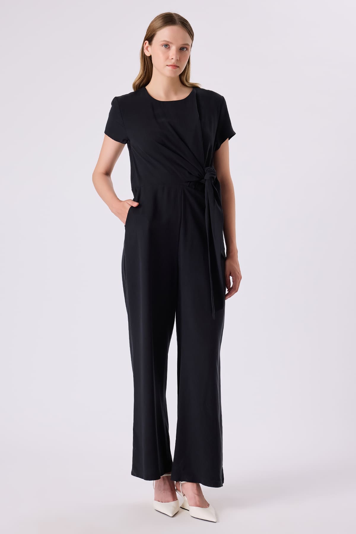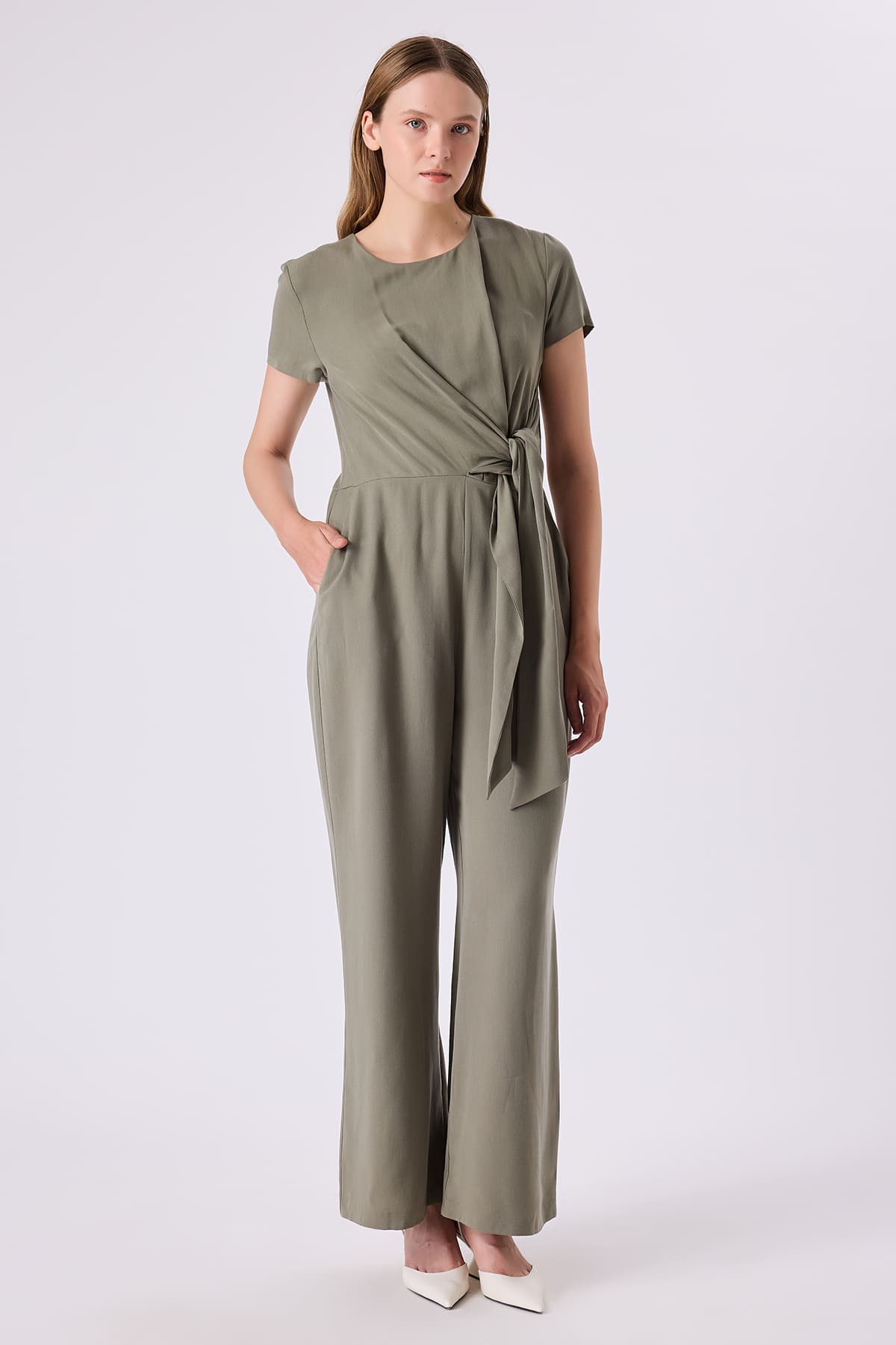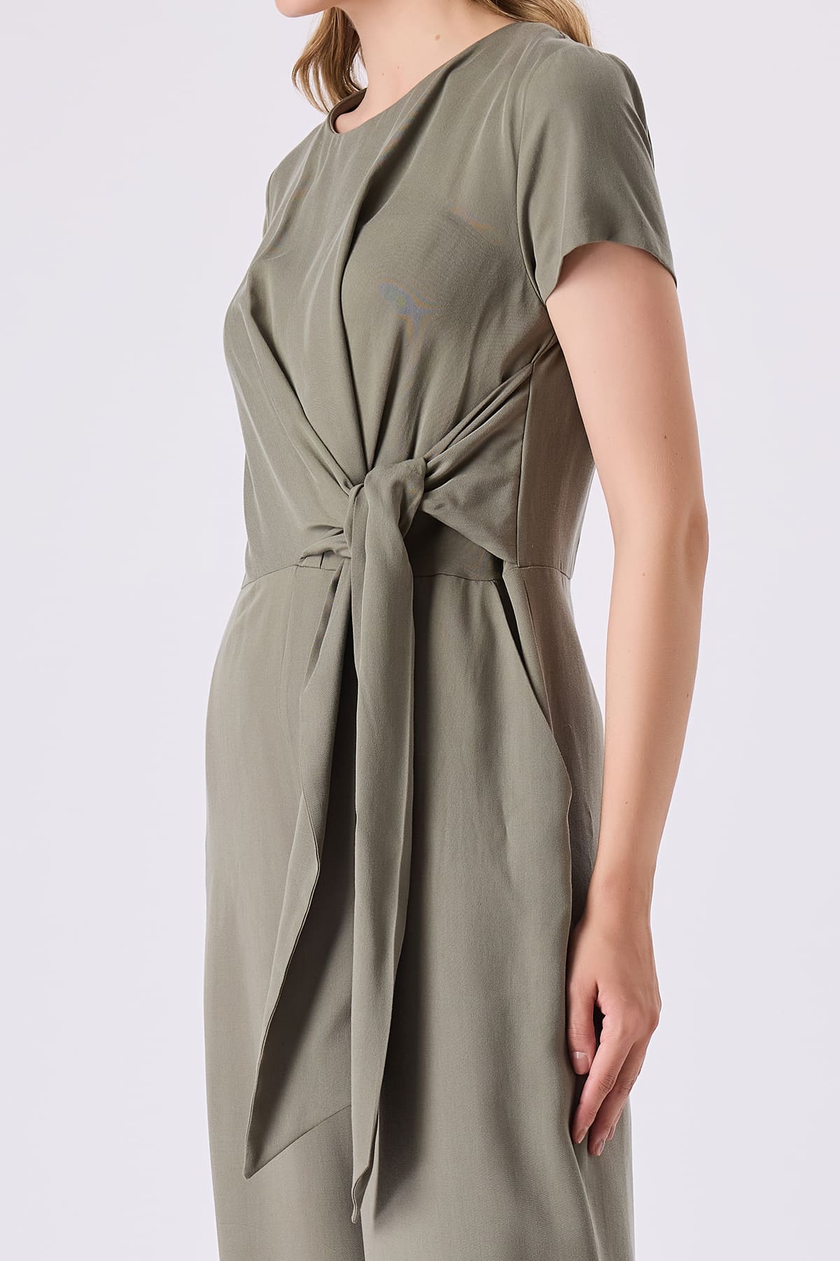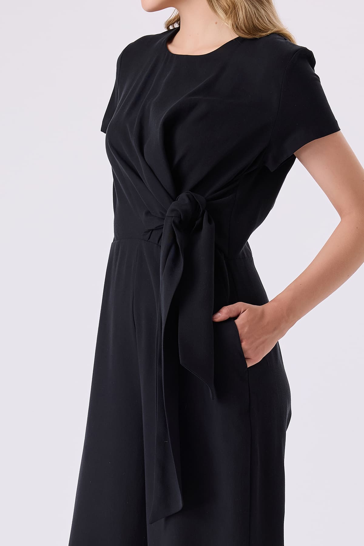 ÜRÜN BİLGİSİ:Tencel kumaş,yuvarlak yakalı,yarım kollu,cepli,bağlama detaylı,rahat form tulum.