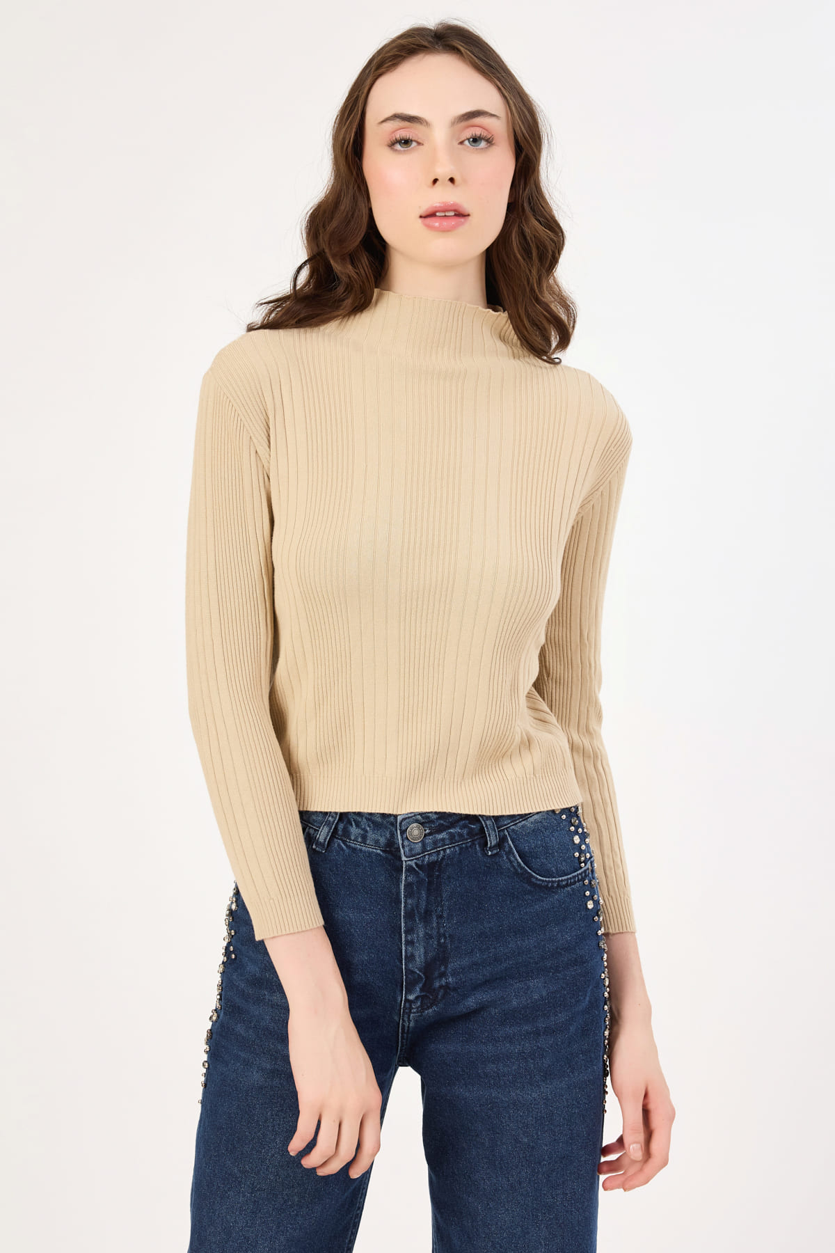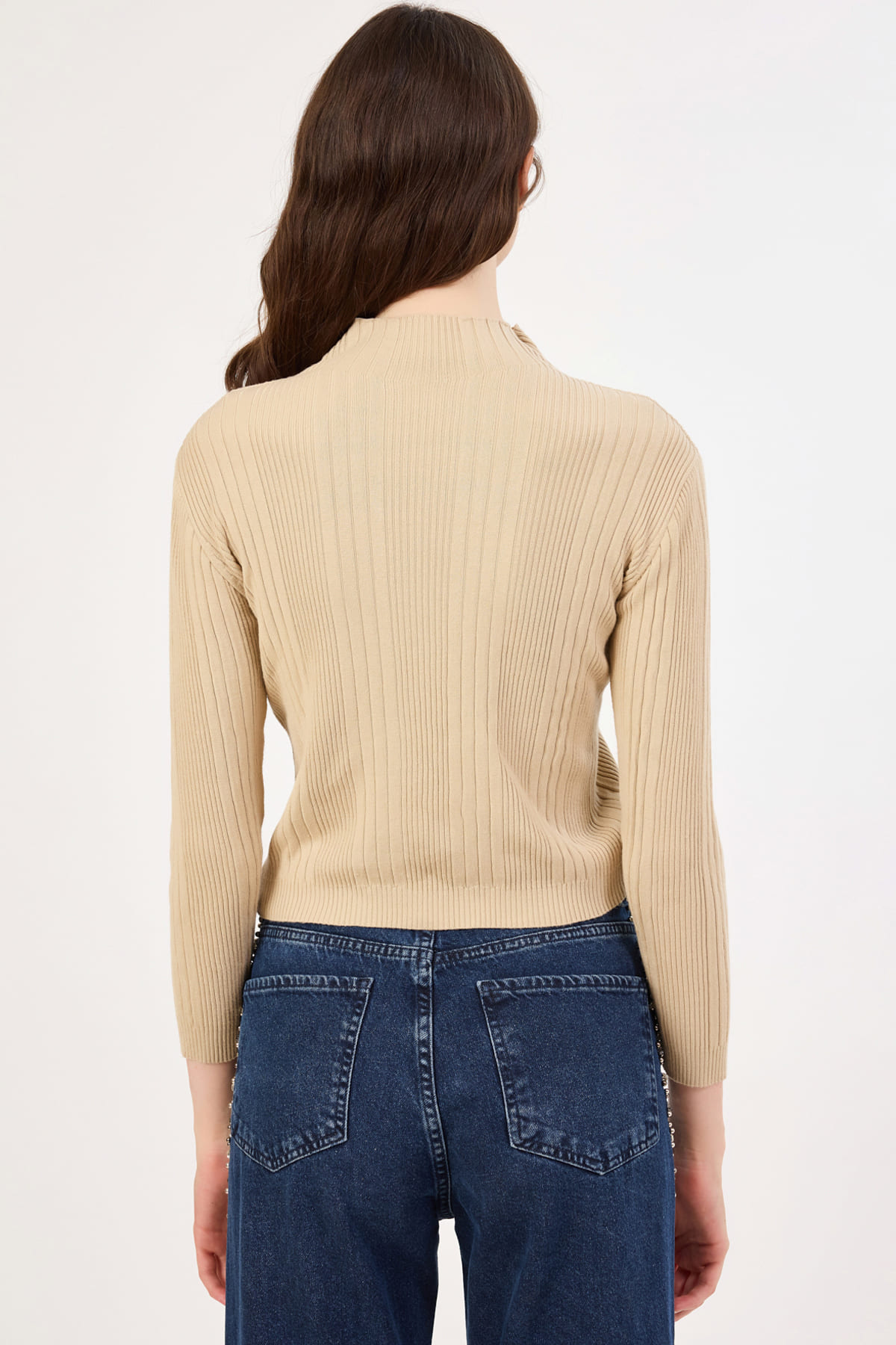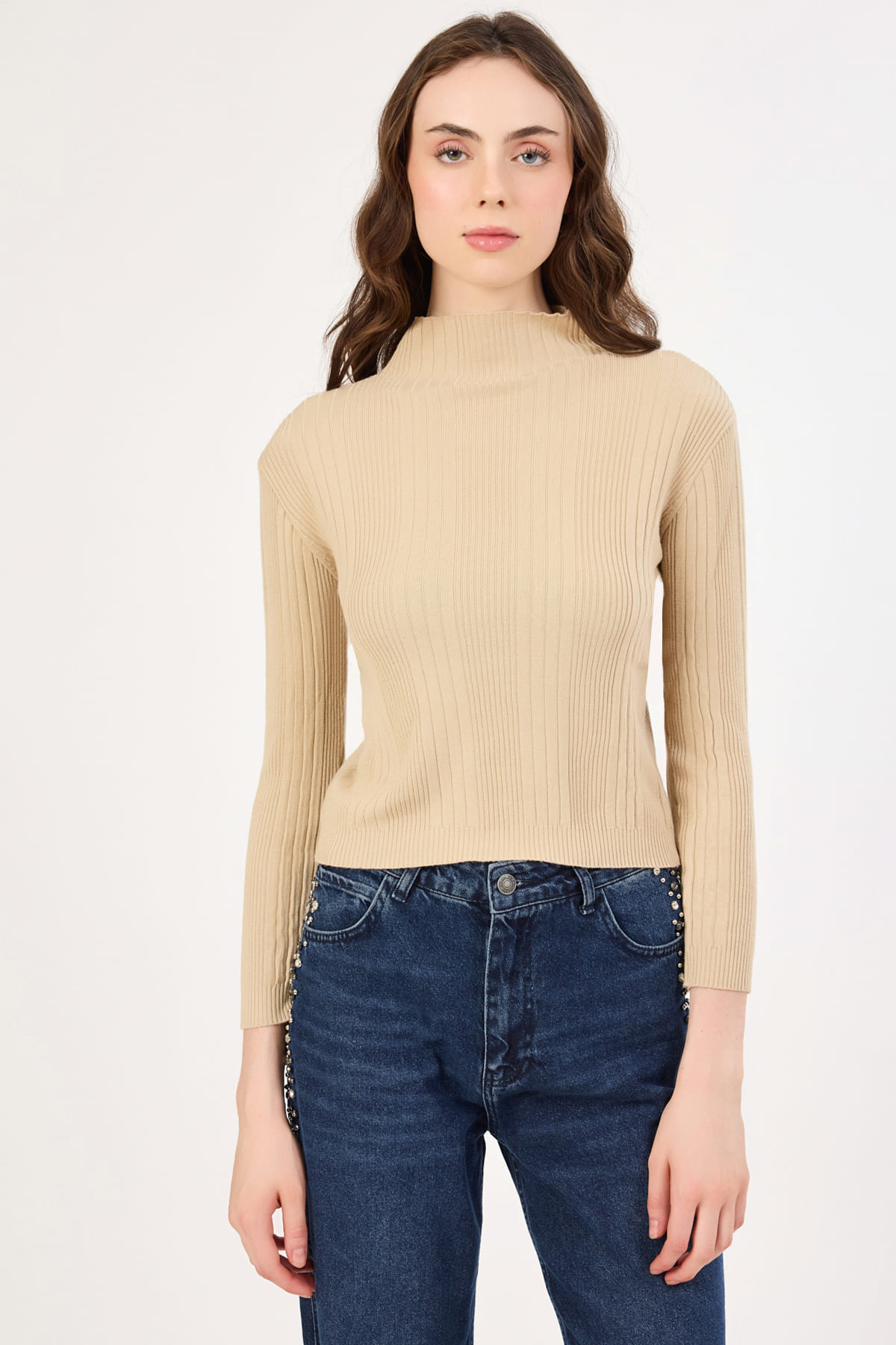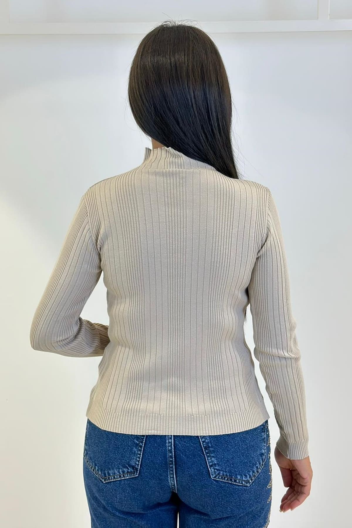 ÜRÜN BİLGİSİ:Triko kumaş,balıkçı yaka,uzun kollu,fit form triko top.