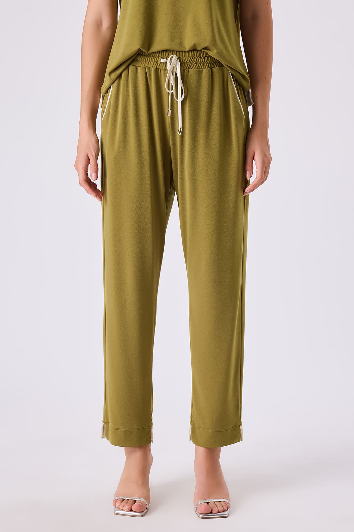 Beli bağcıklı örme pantolon
