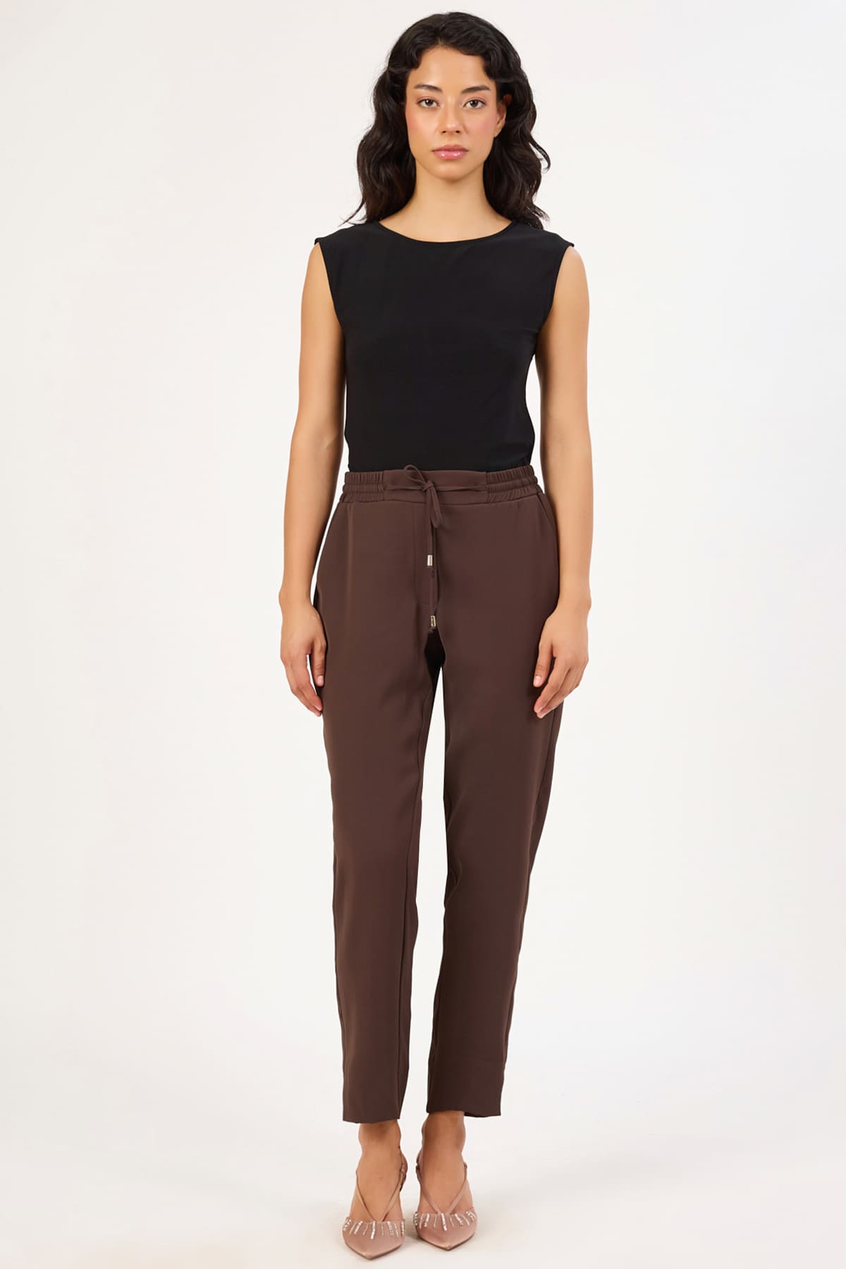 ÜRÜN BİLGİSİ:Dökümlü kumaş,elastik bel,ayarlanabilir bağcıklı,cepli,düz form rahat pantolon.