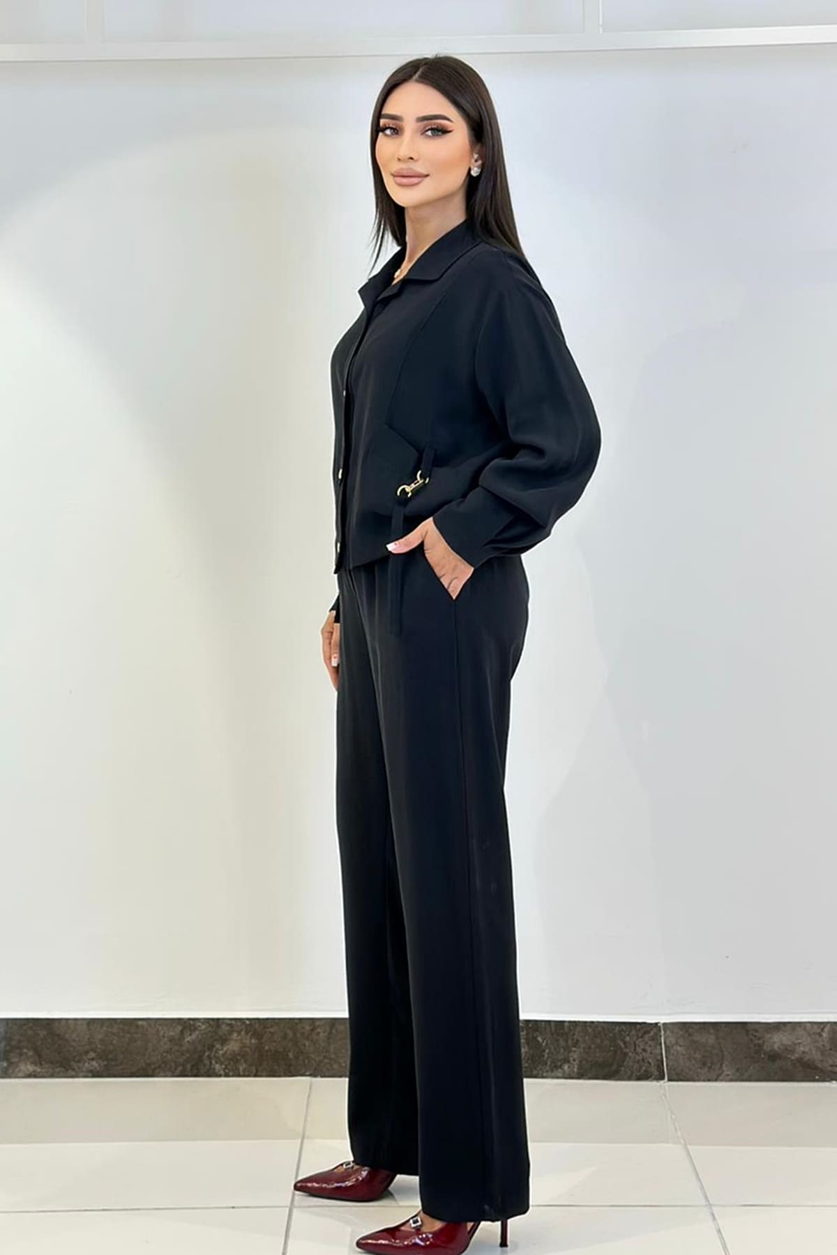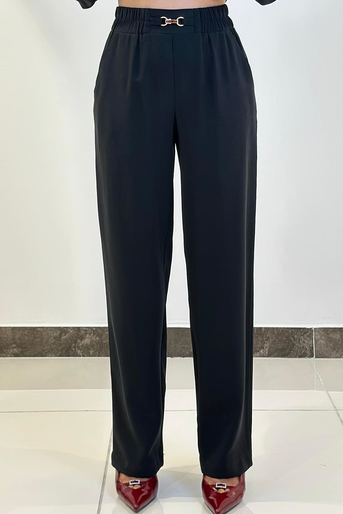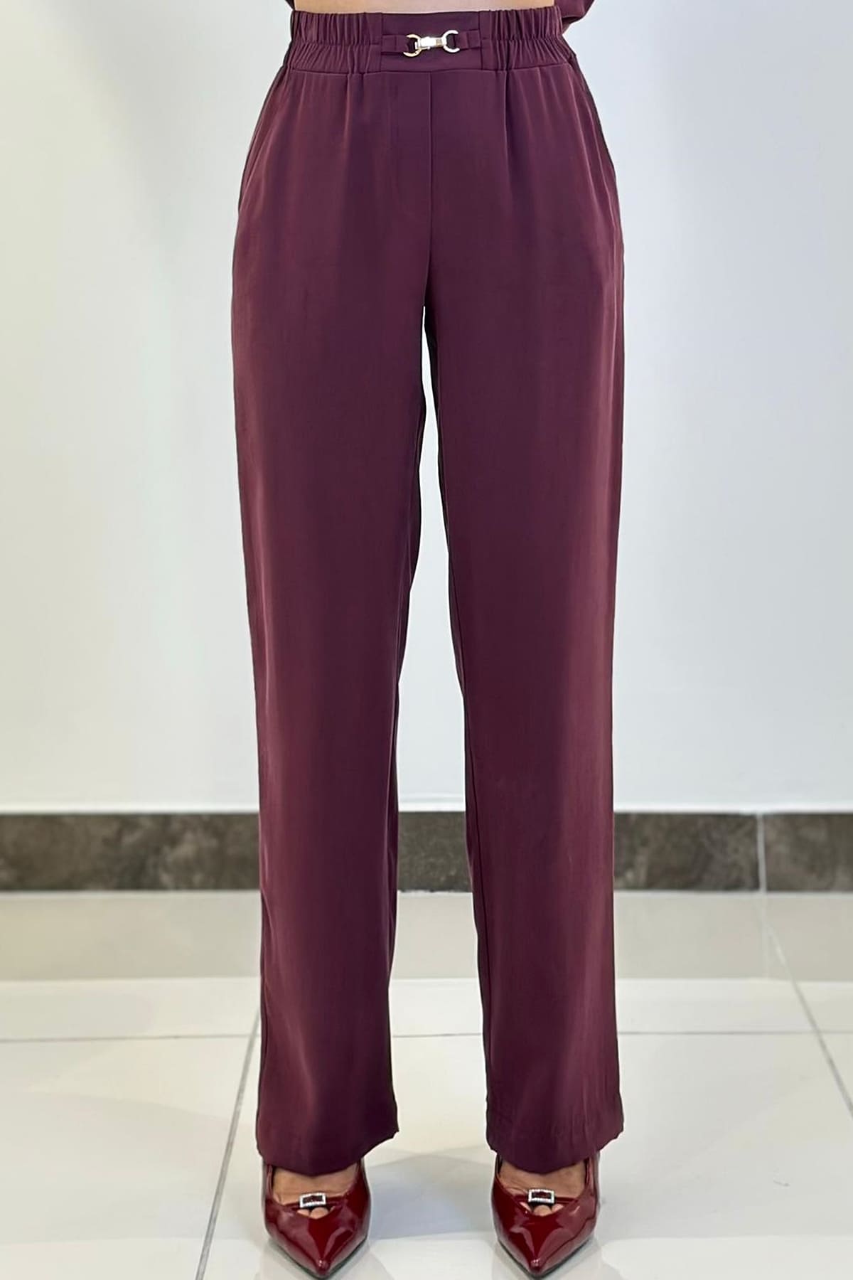 ÜRÜN BİLGİSİ:Nefes alabilir modal kumaş,elastik bel,cepli,toka detaylı,düz form şık pantolon.
