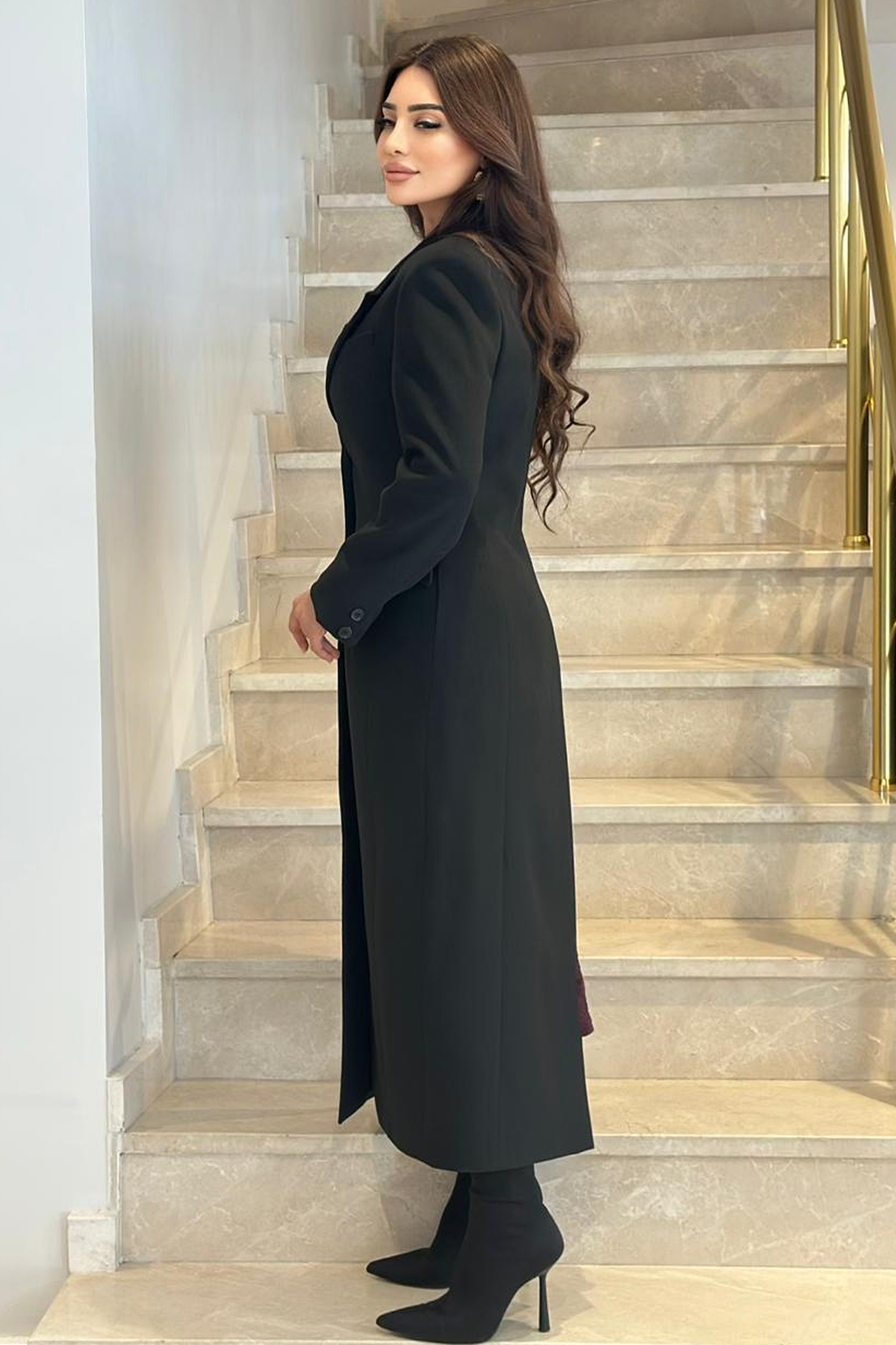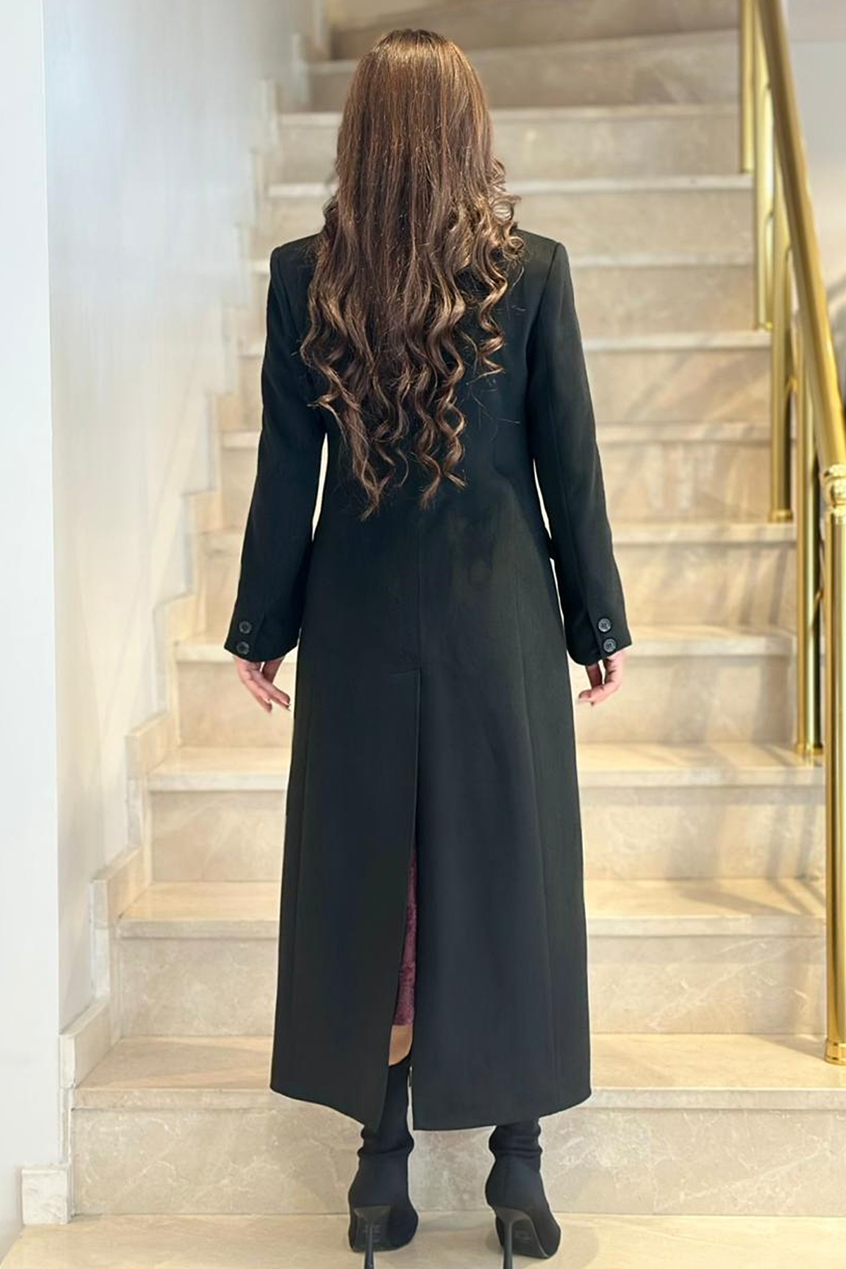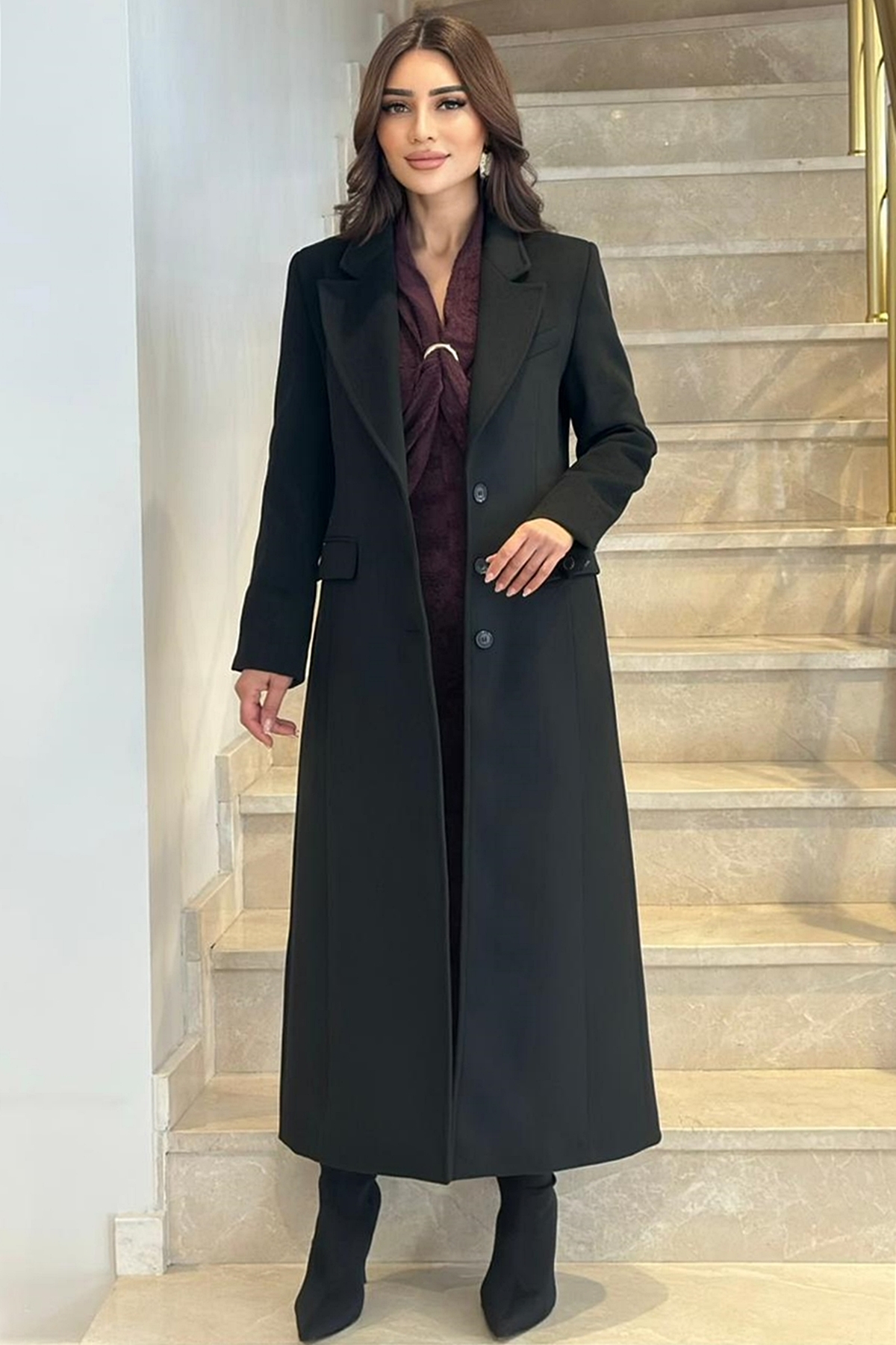 ÜRÜN BİLGİSİ:Doğal elyaflı viskon karışımlı kumaş,blazer yakalı,pensli ve hafif oturan formlu,uzun kollu,astarlı,uzun kaban