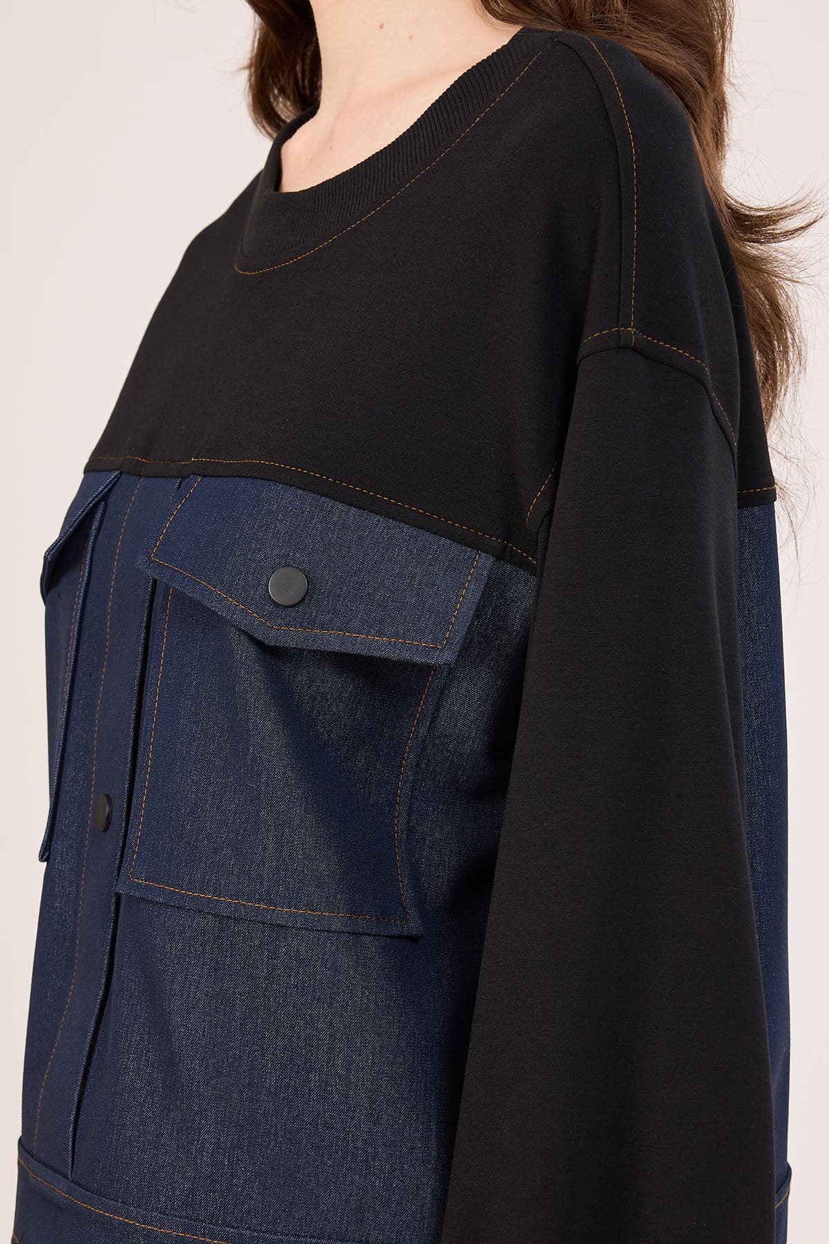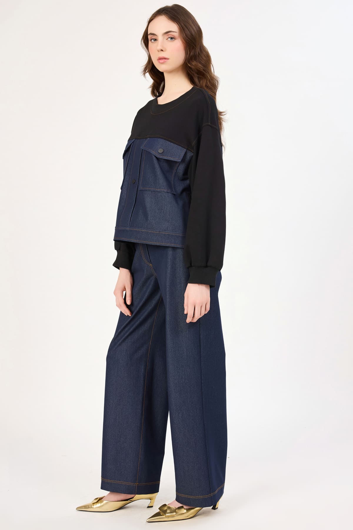 ÜRÜN BİLGİSİ:Hafif likralı örme kumaş ve kot garnili,yaka ve kol ucu kaşkorse detaylı,cepleri çt çıtlı,düz form şık bluz.