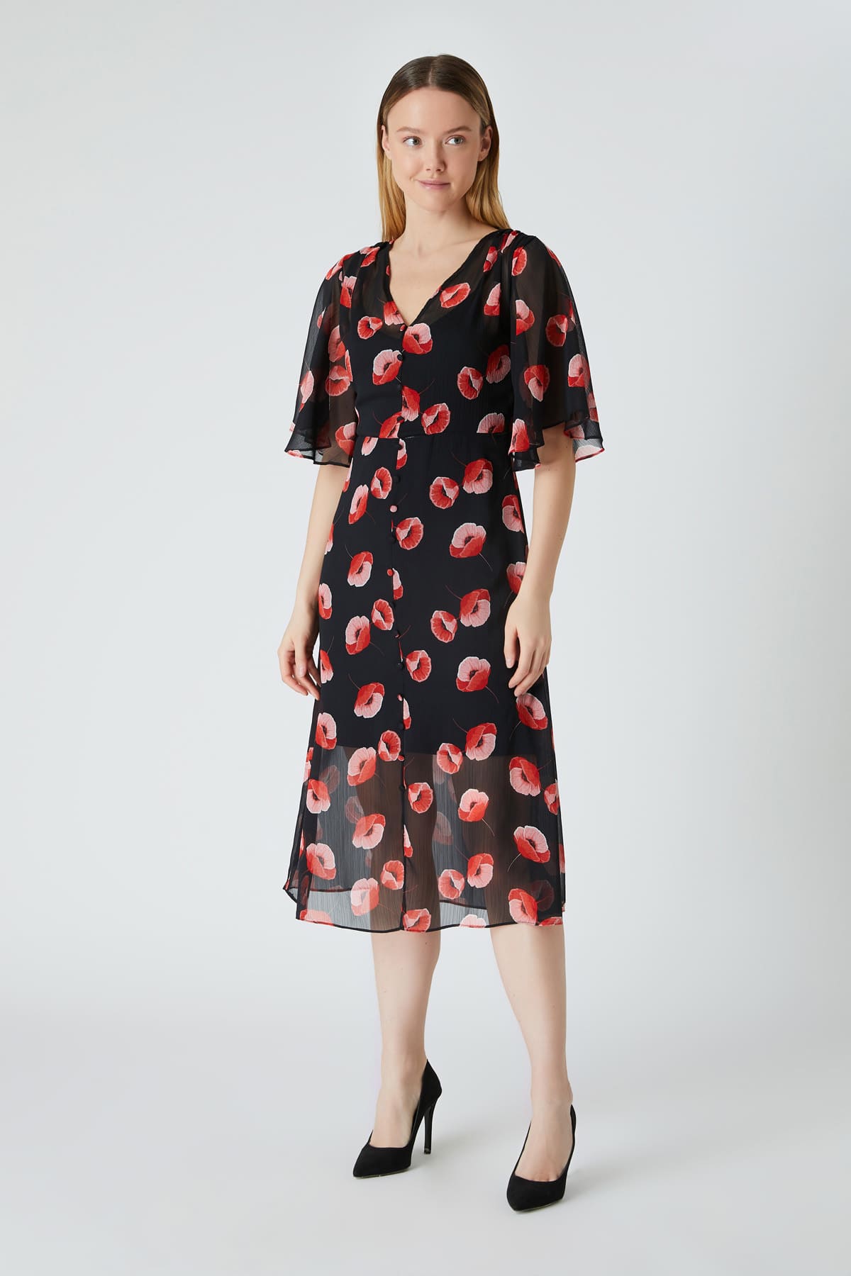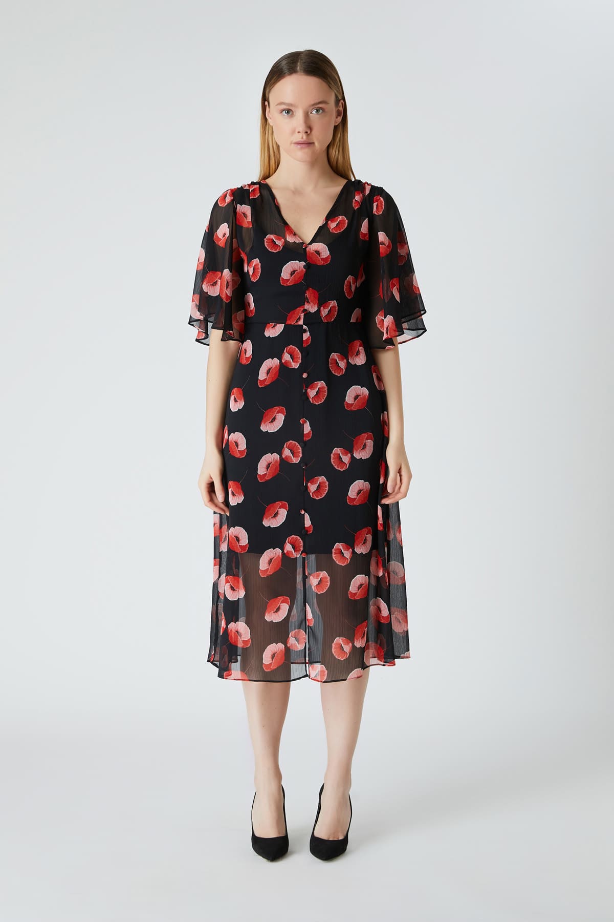 Çicek desenli şifon elbise