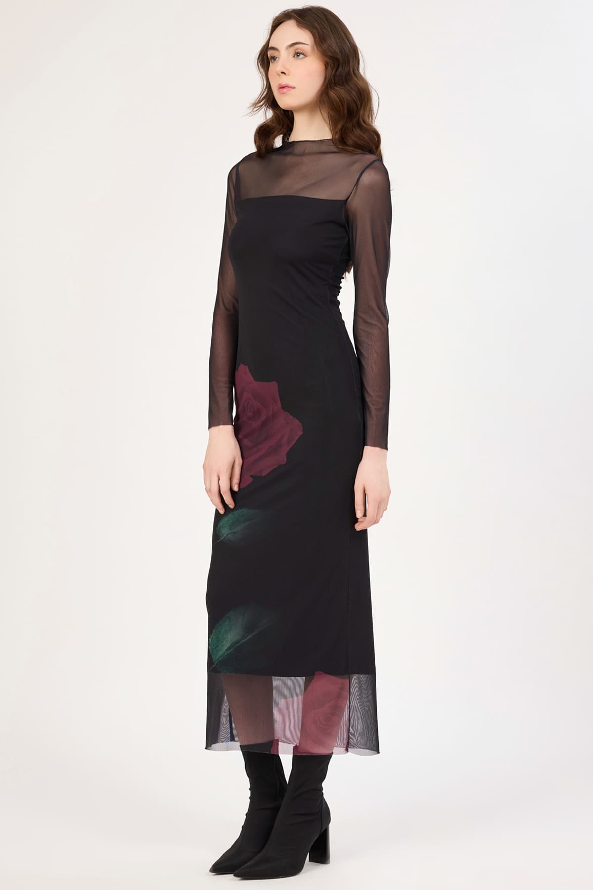 ÜRÜN BİLGİSİ:Likralı tül kumaş,hafif dik yakalı,çicek desenli,astarlı fit form şık elbise.
