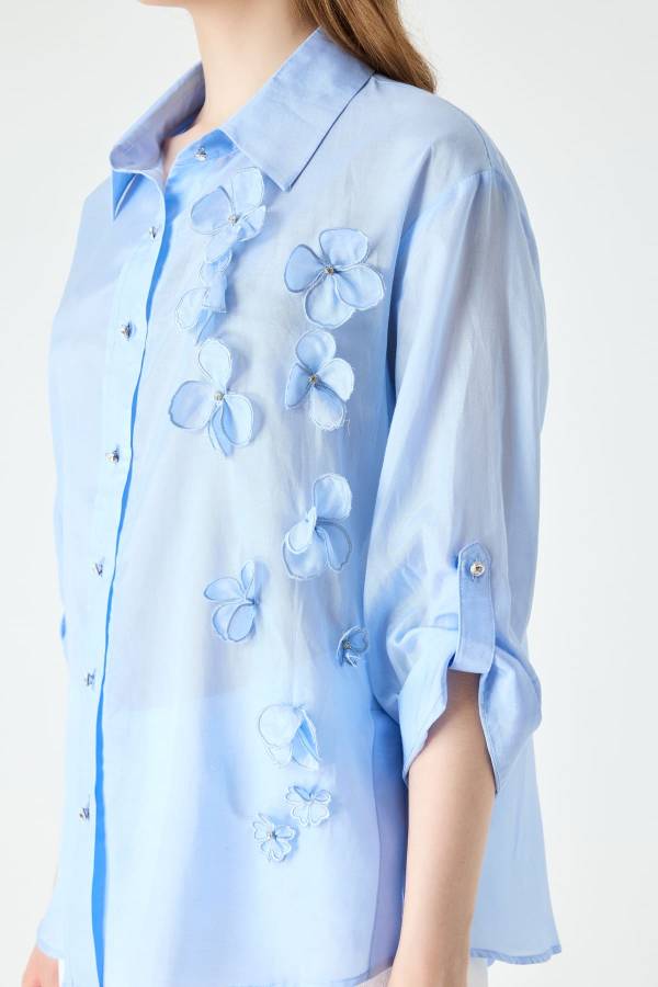 Çicek detaylı naturel viskon gömlek