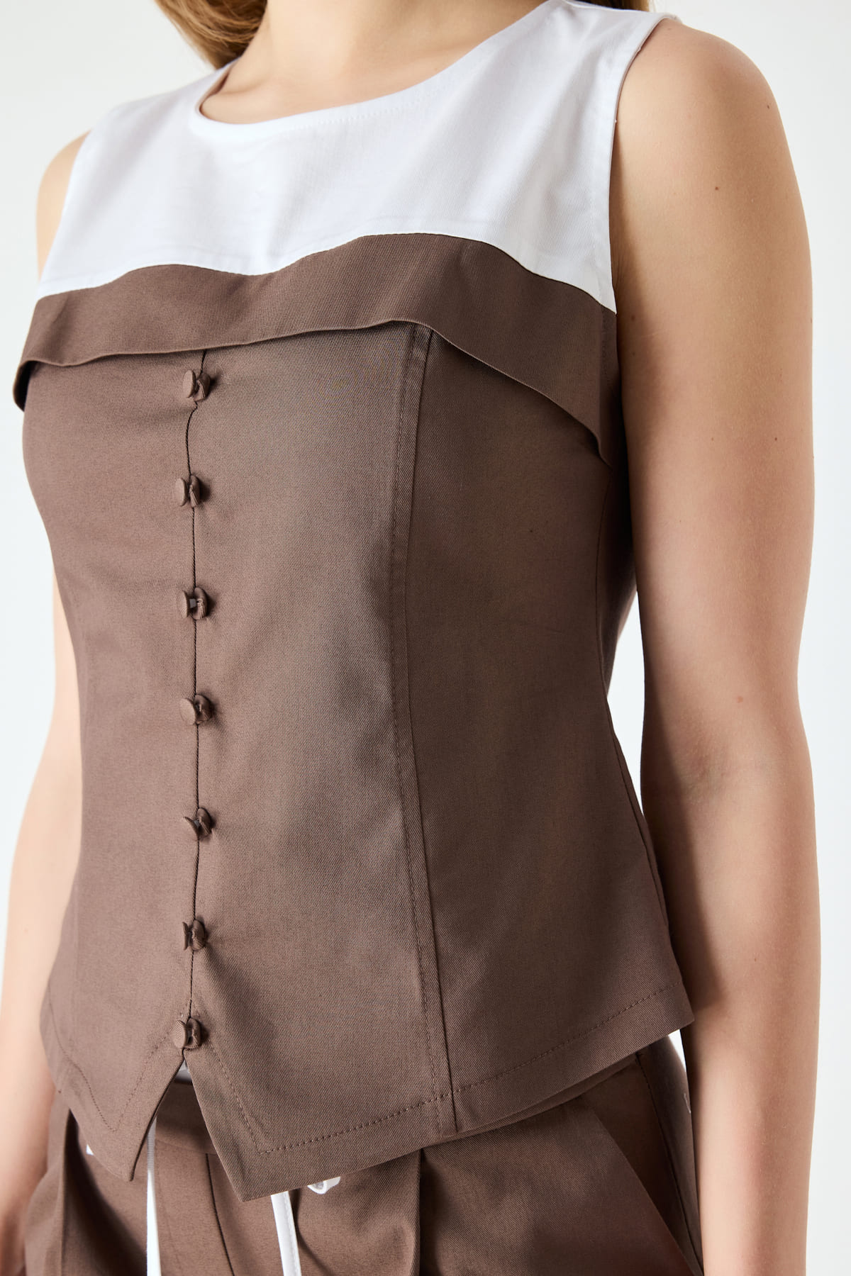 Çift renkli düğme detaylı bluz