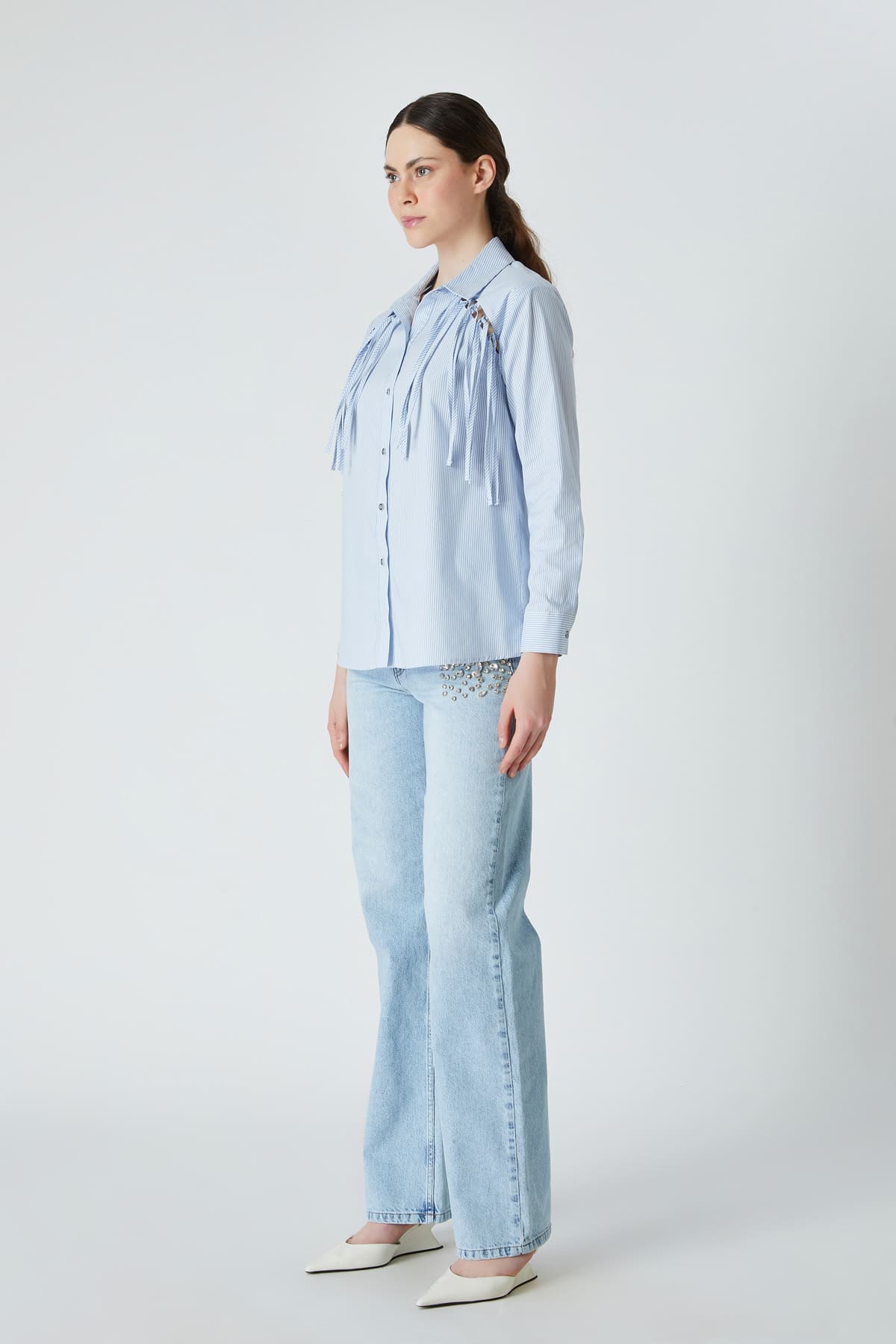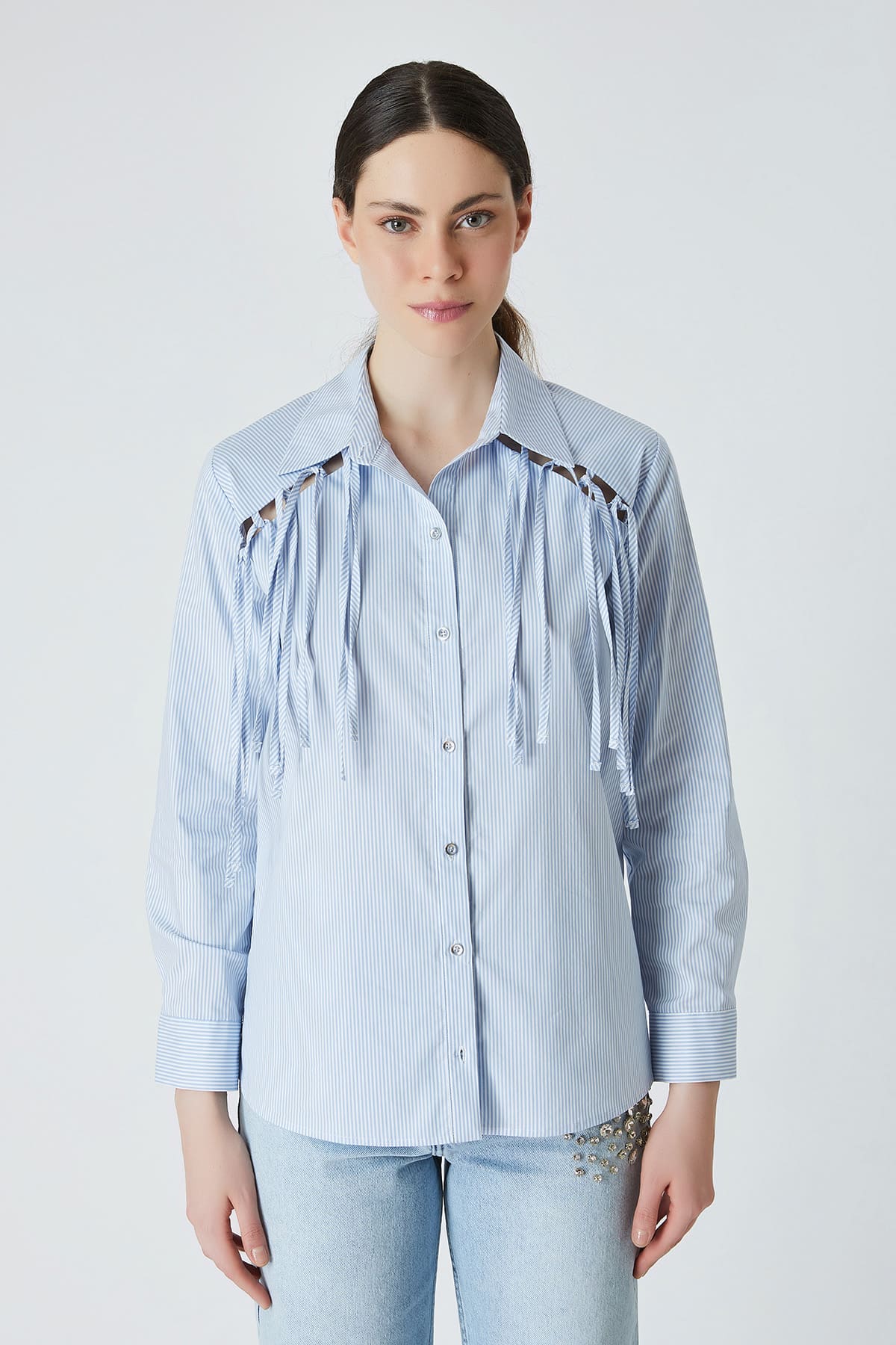 Çizgili saçaklı gömlek