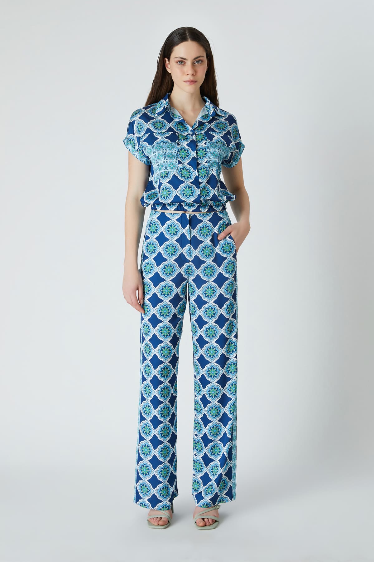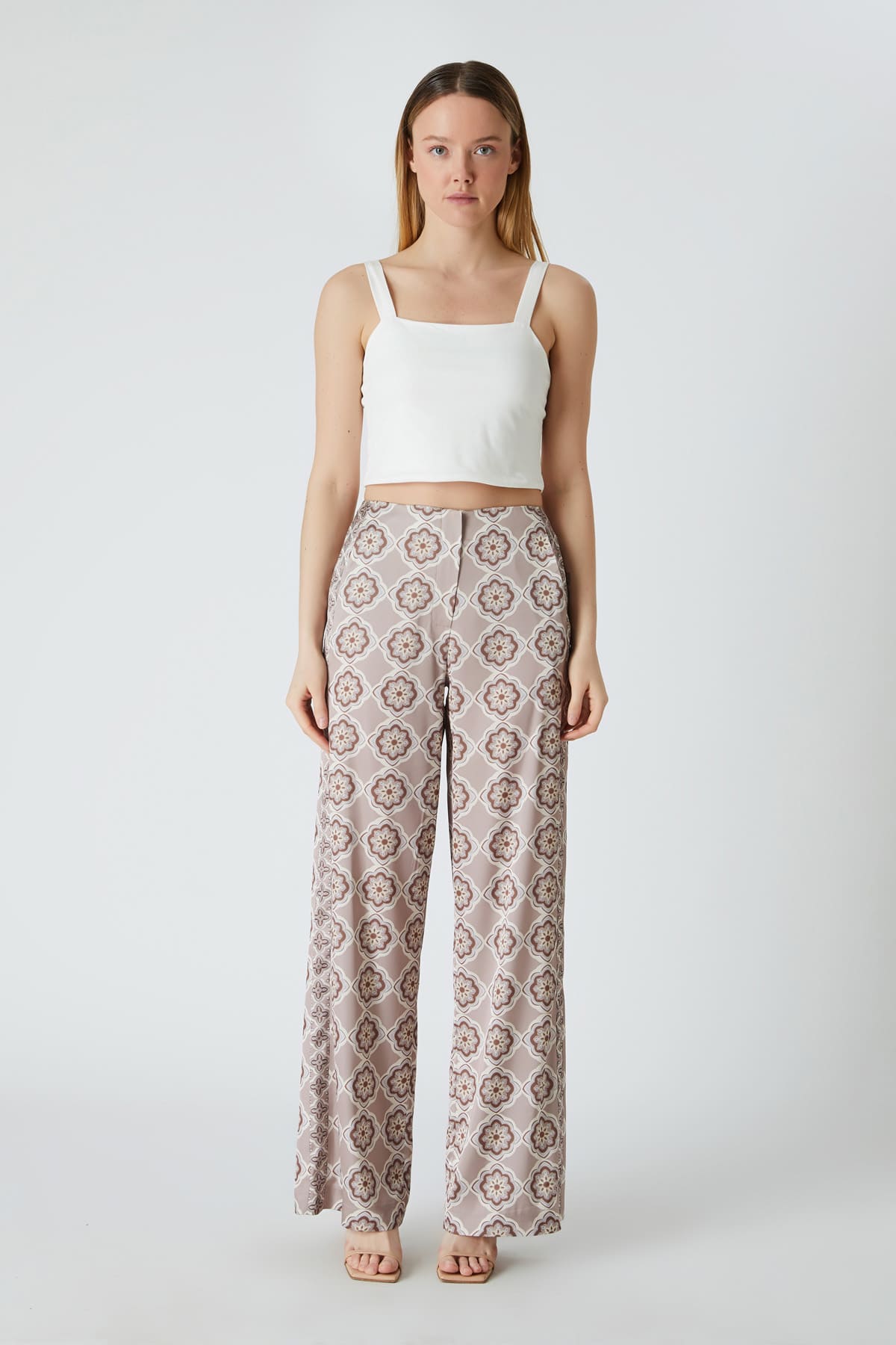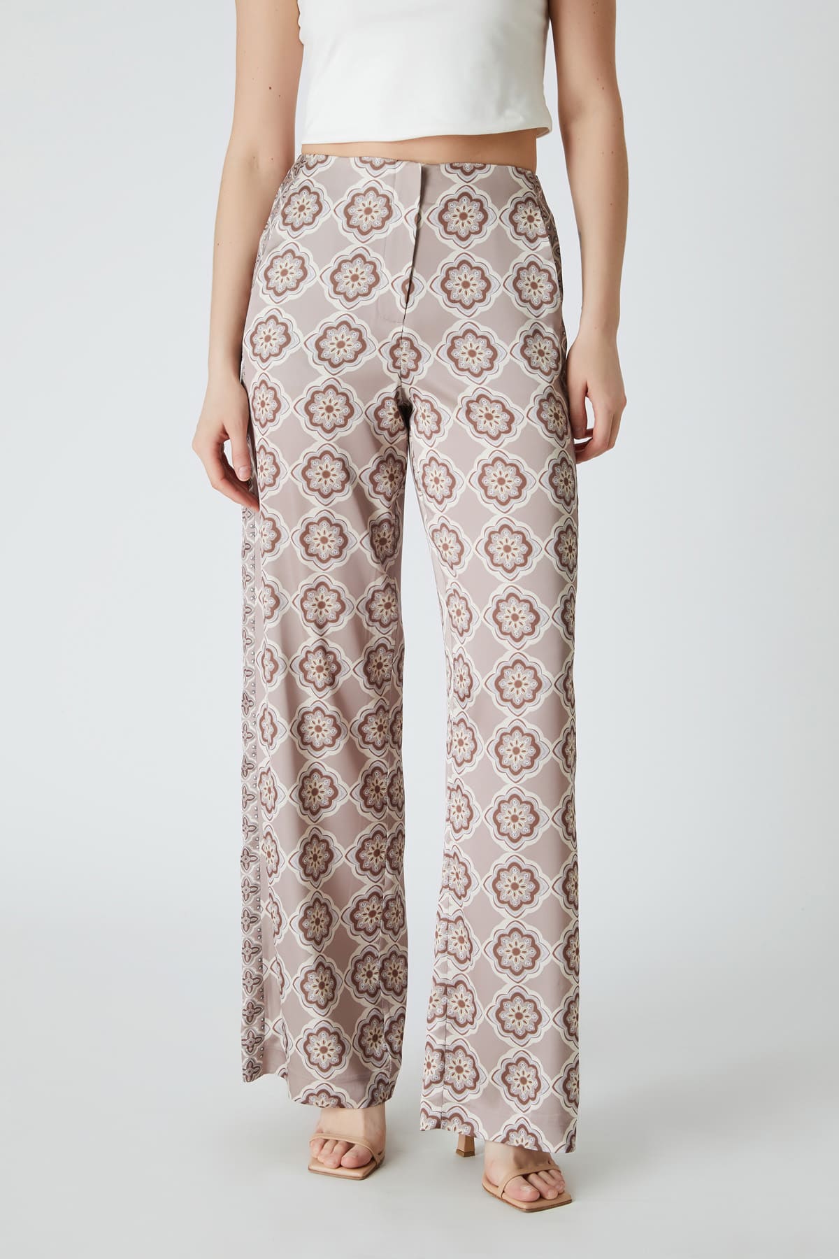 ÜRÜN BİLGİSİ:Desenli floş kumaş,normal bel,fermuarlı,cepli,yanları desen detaylı,astarsız rahat form.