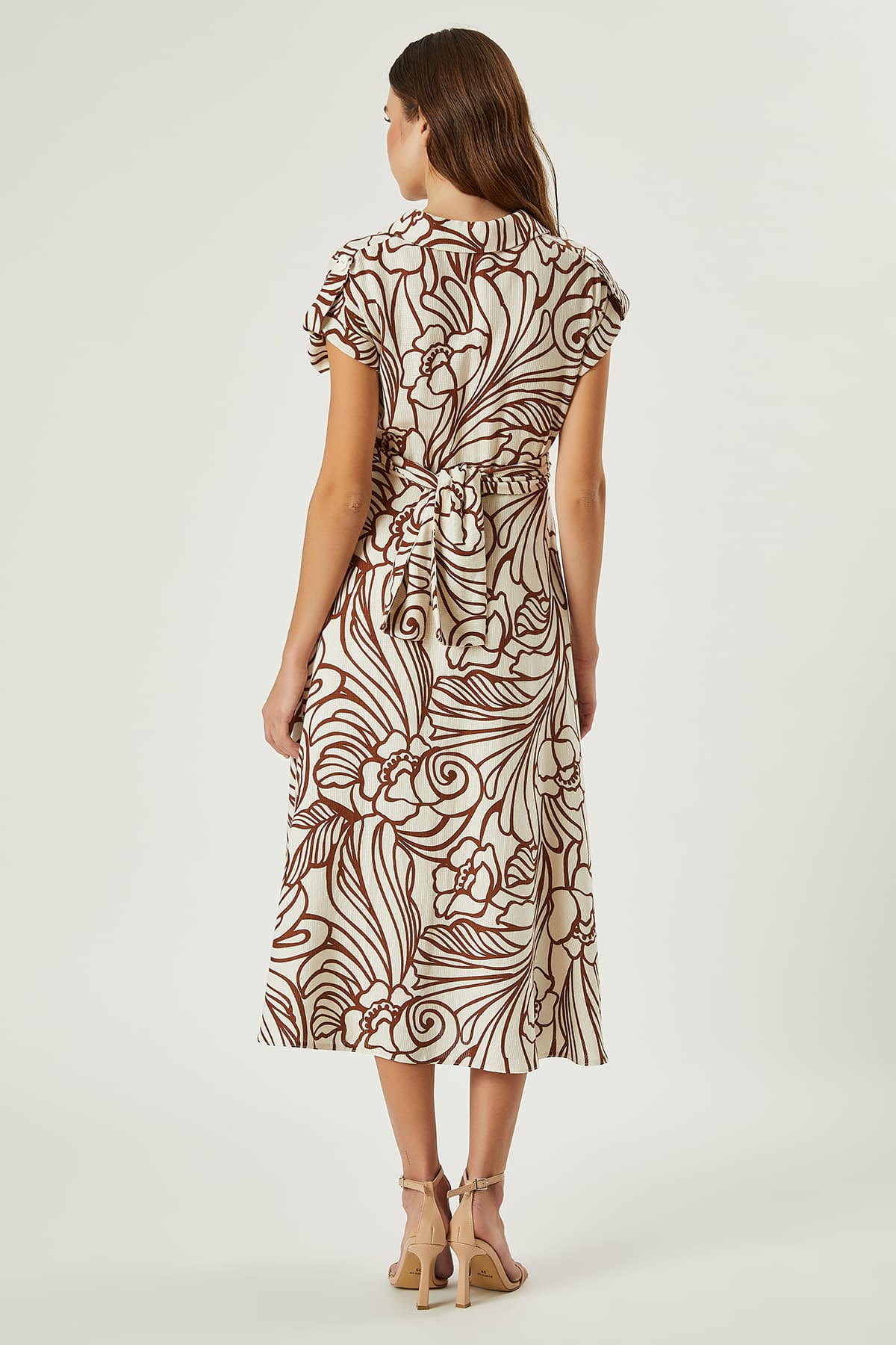 ÜRÜN BİLGİSİ:Viskon ve keten karışımlı doğal kumaş,kontrast renkte desenli,yakalı,düşük kol,bağlama detaylı,astarsız elbise