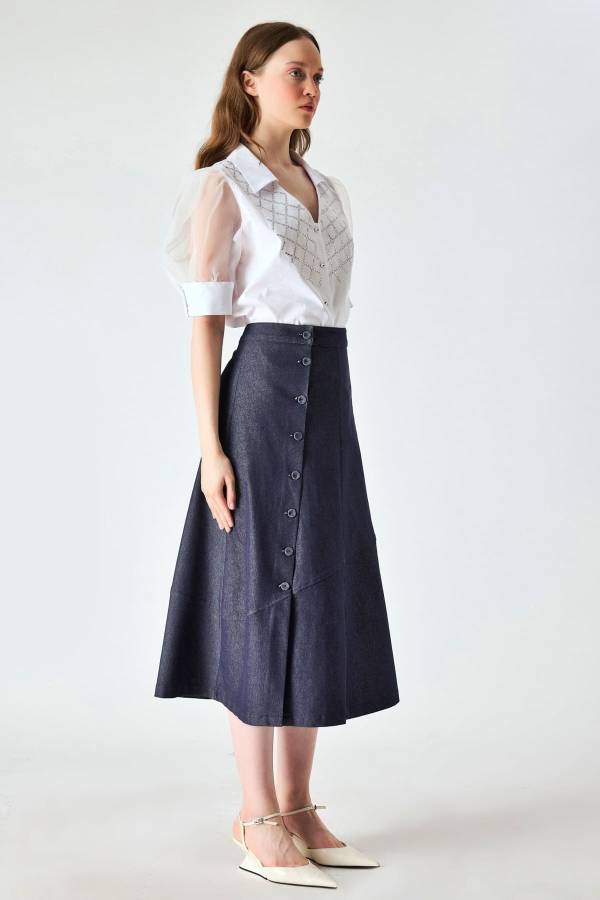 Düğme detaylı denim etek