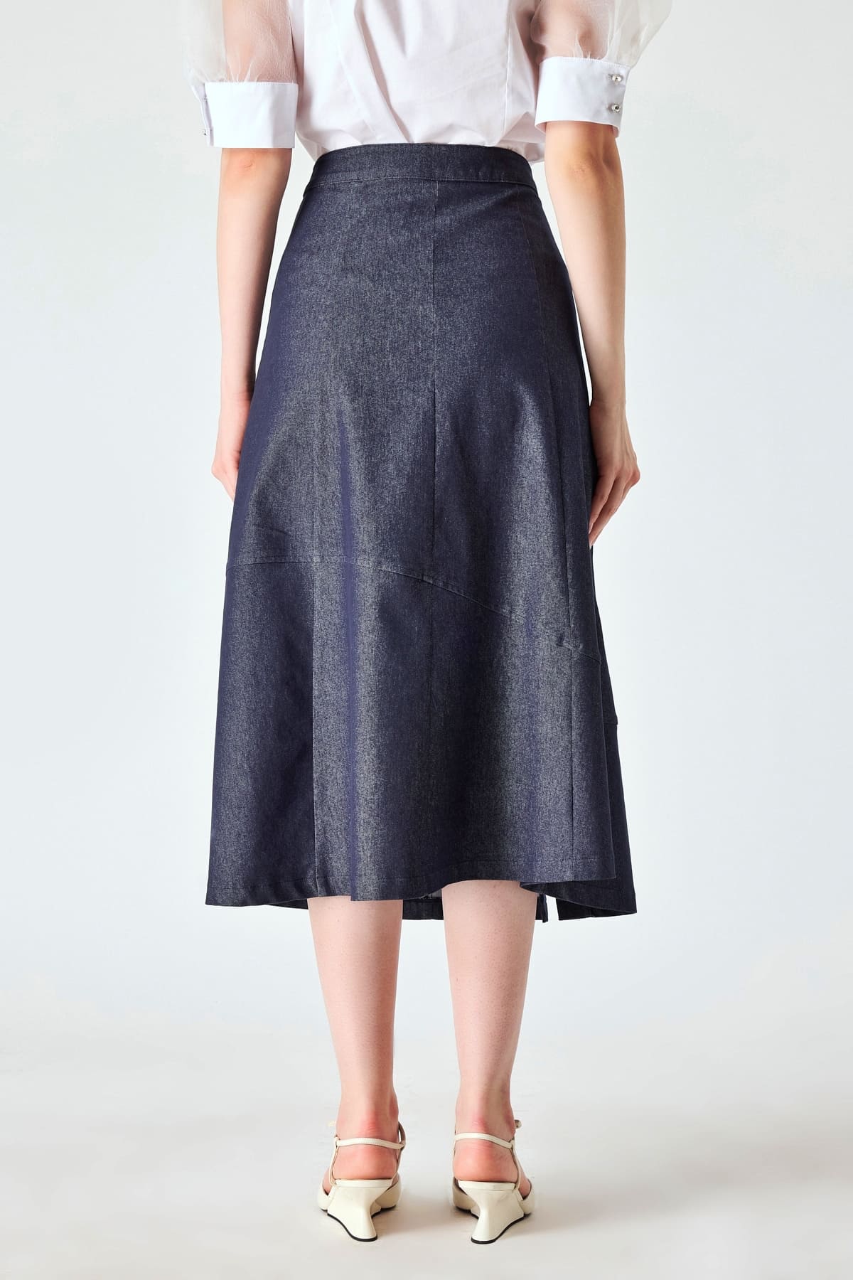 ÜRÜN BİLGİSİ:Pamuklu kot kumaş,düğme kapamalı,anvelop kapamalı diz altı etek.