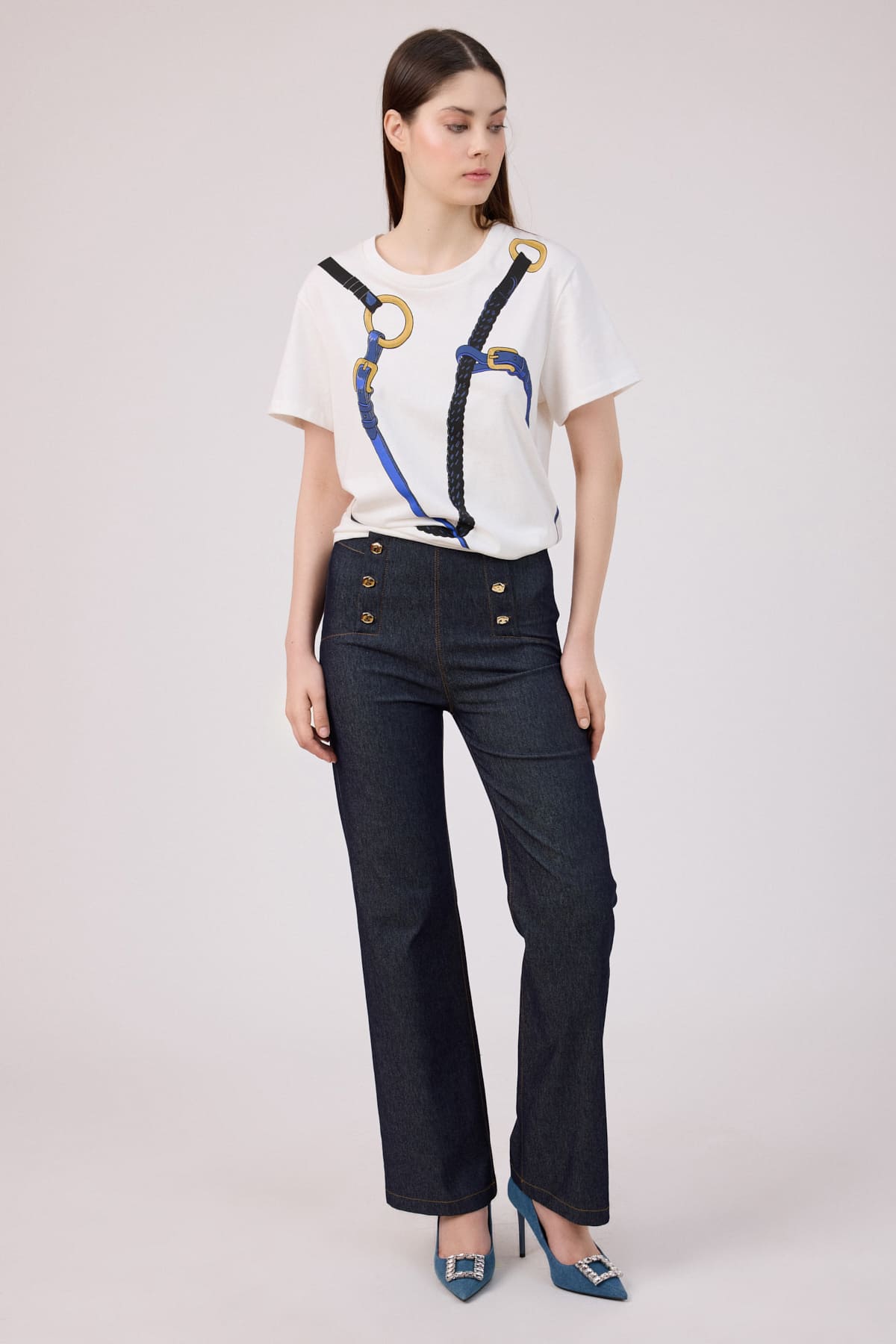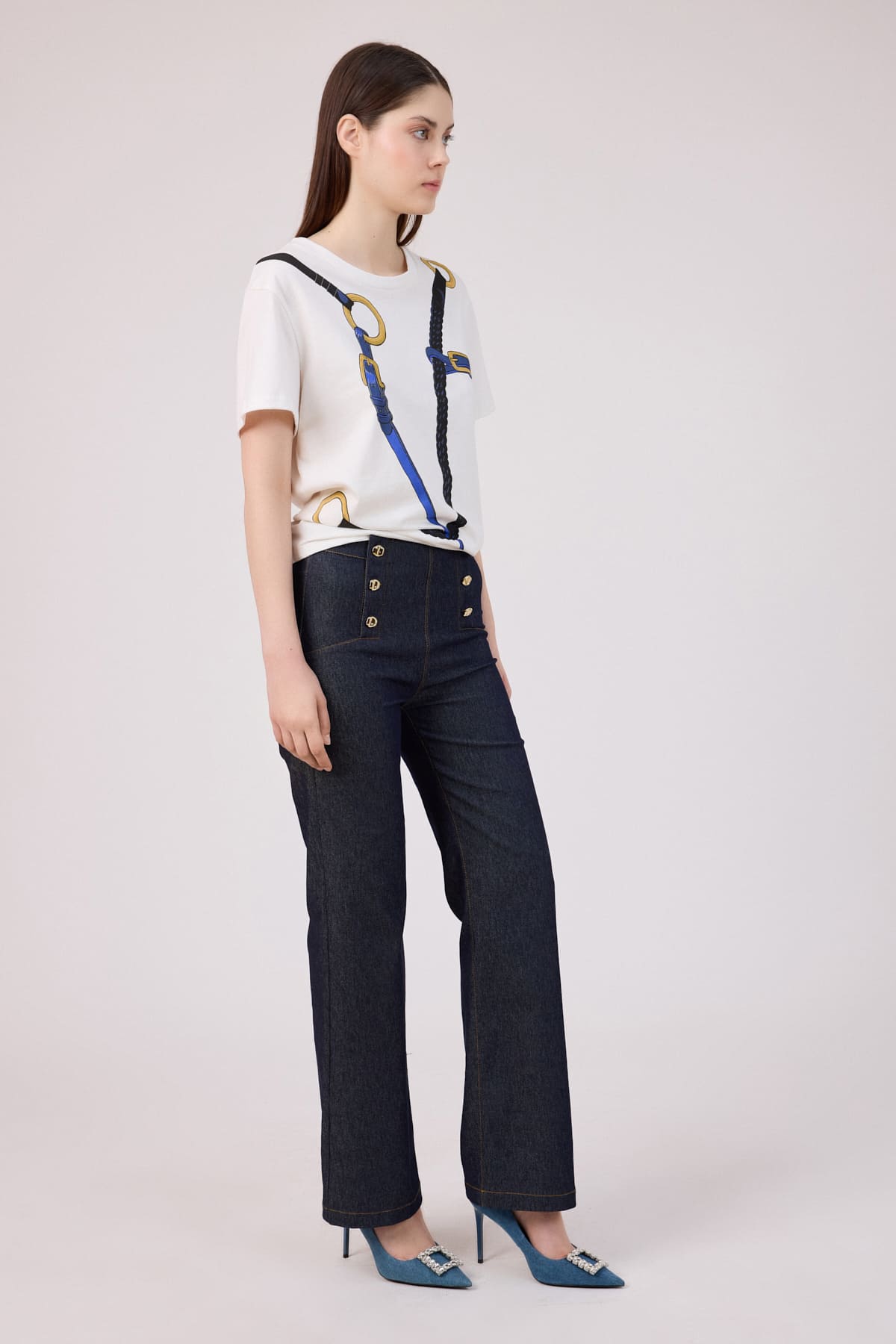 Düğme detaylı jean pantolon