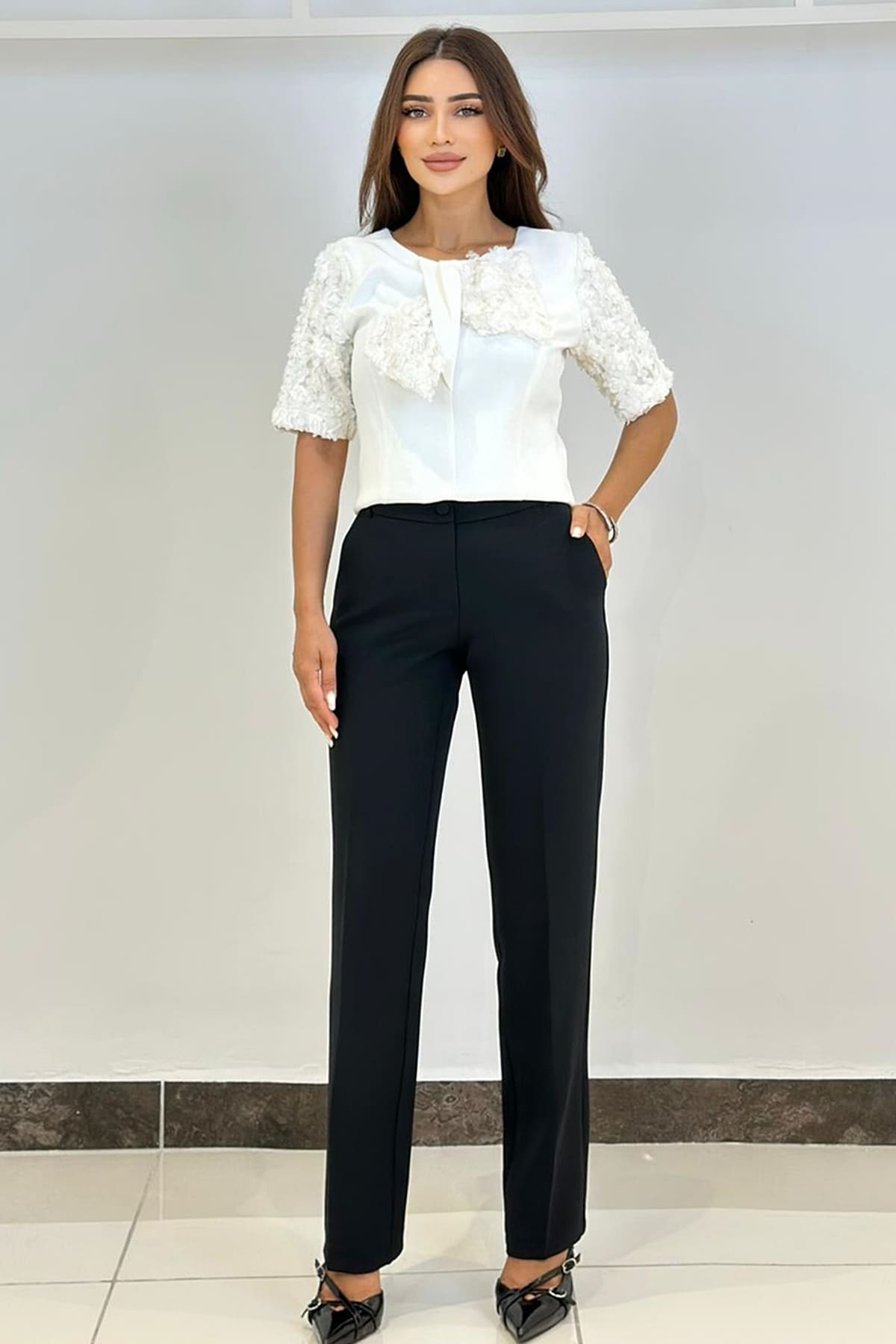 ÜRÜN BİLGİSİ:Likralı dokulu krep kumaş,normal bel,fermuarlı,cepli,düz form şık pantolon.
