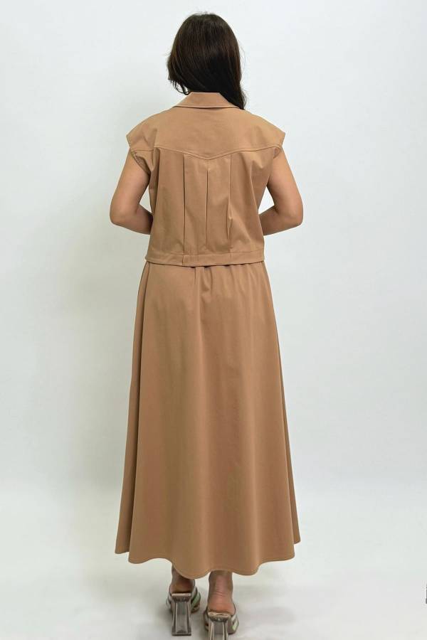 ÜRÜN BİLGİSİ:Yumuşak dokulu pamuklu kumaş,elastik bel,büyük cepli,düğme detaylı,astarsız diz altı etek.