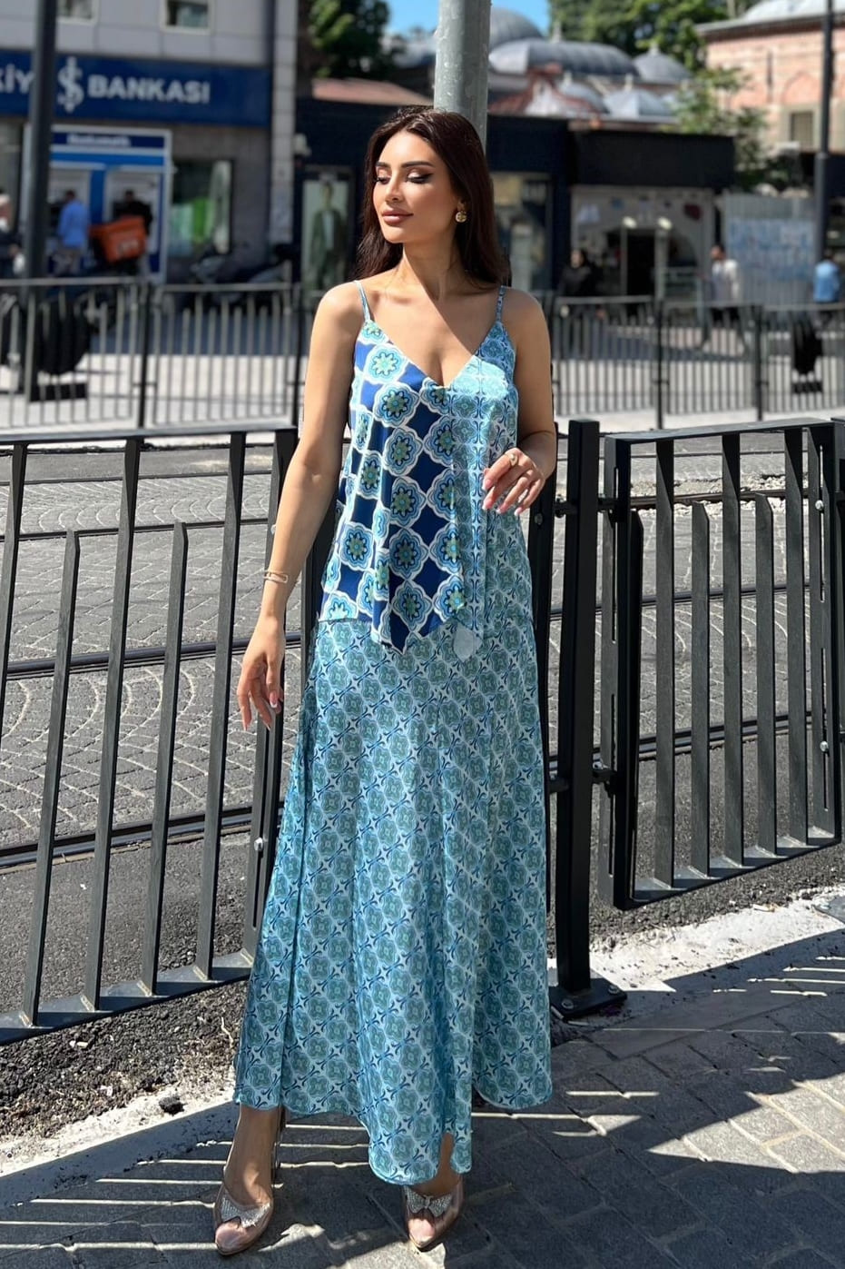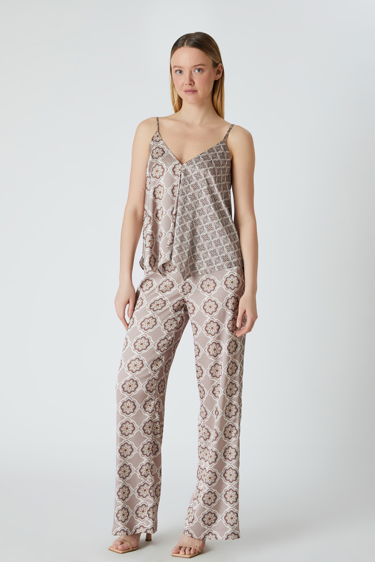 ÜRÜN BİLGİSİ:Floş içerikli,ip askılı,v yakalı,desenli floş bluz.