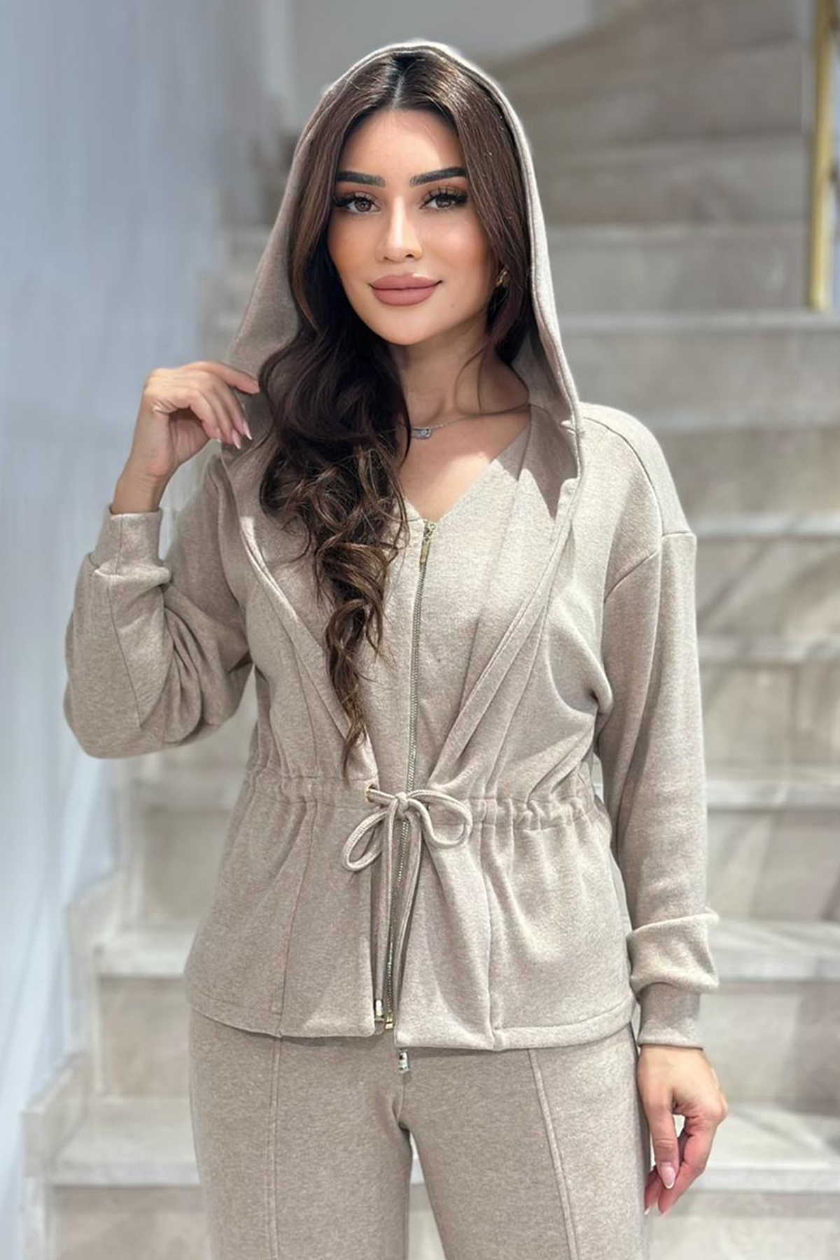 ÜRÜN BİLGİSİ:Soft dokulu viskon karışımlı örme kumaş,önü fermuarlı ve çift katmanlı ve bağcıklı,uzunkollu spor bluz