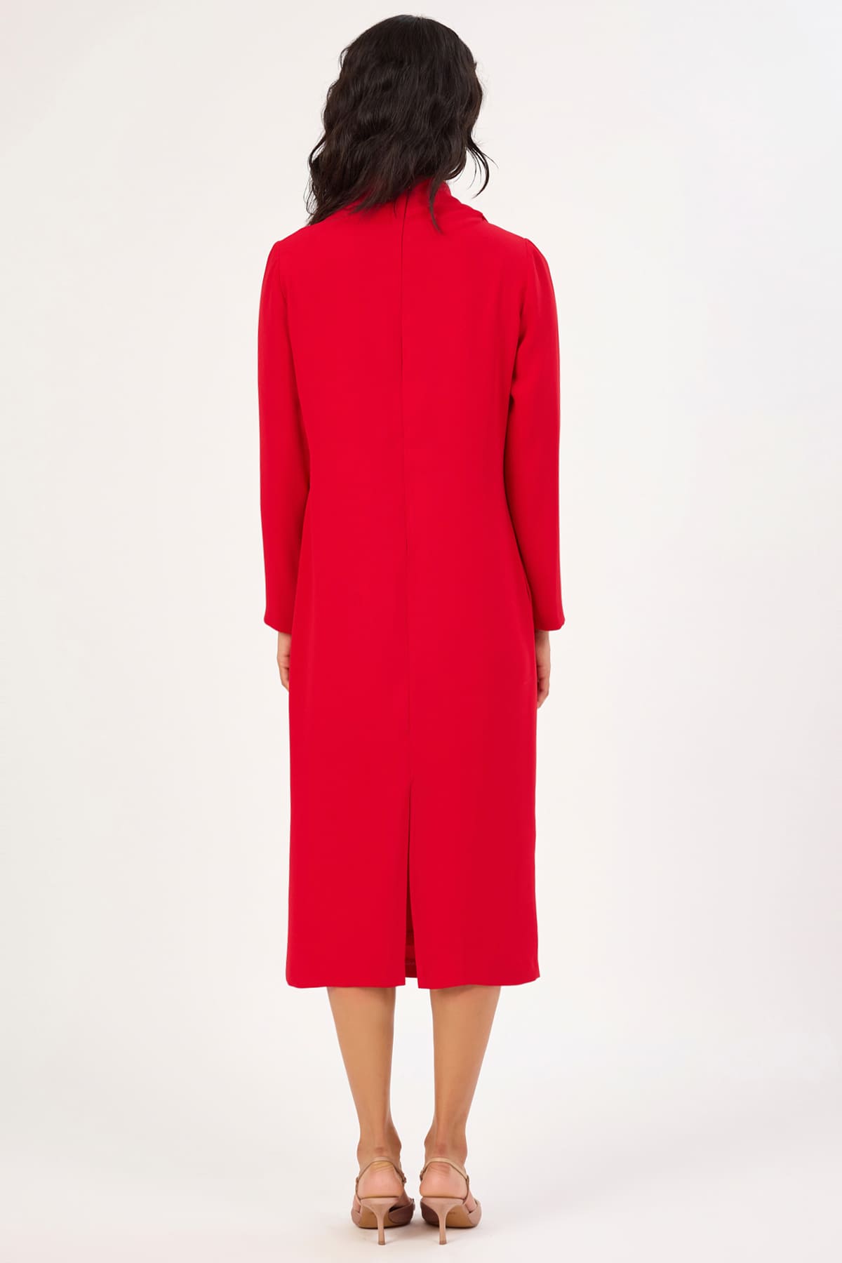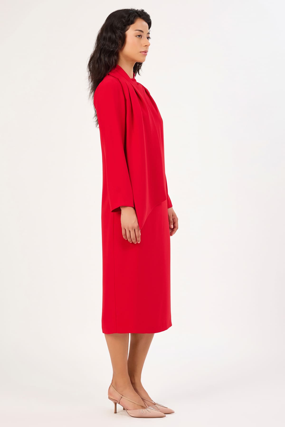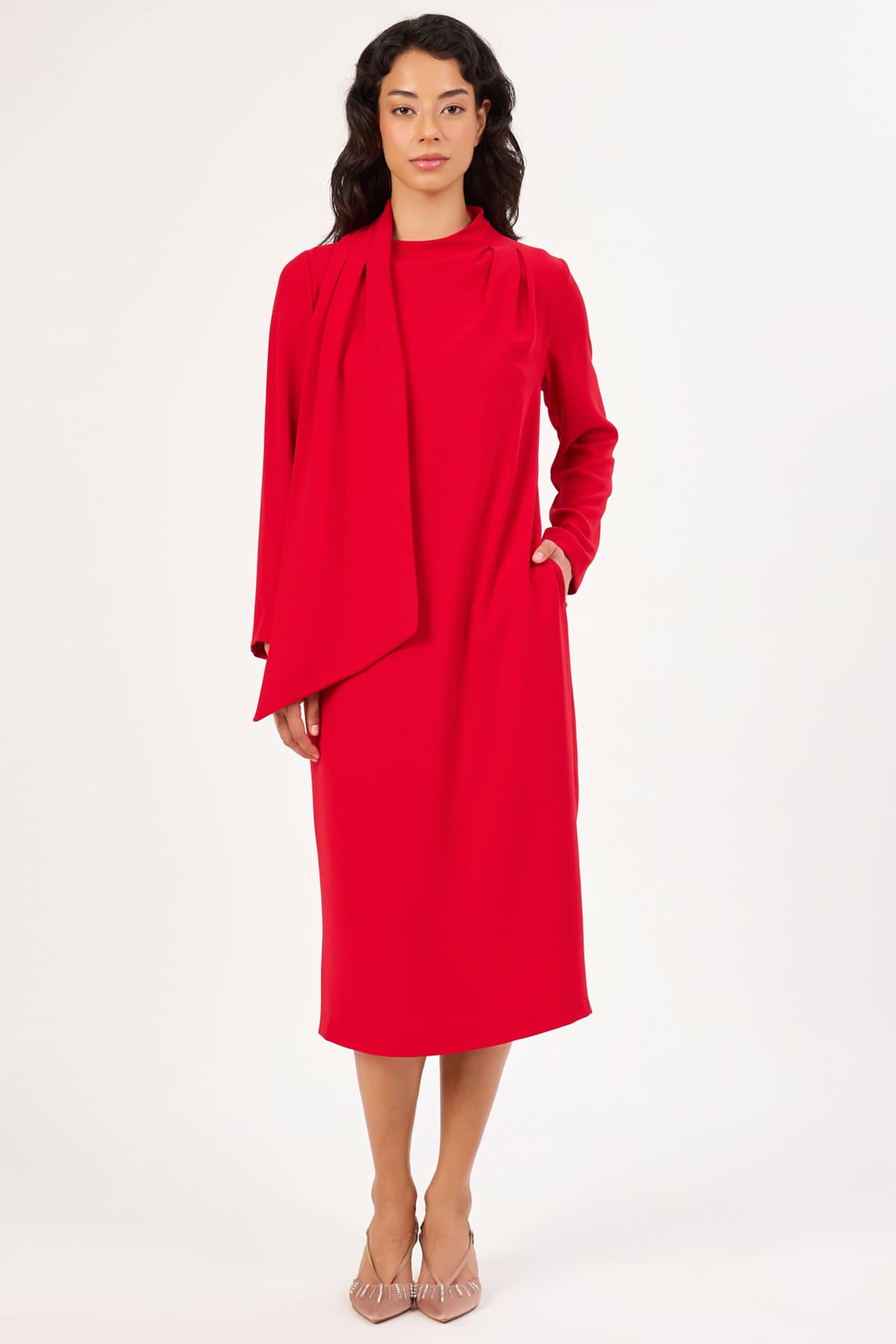 Fular detaylı midi elbise