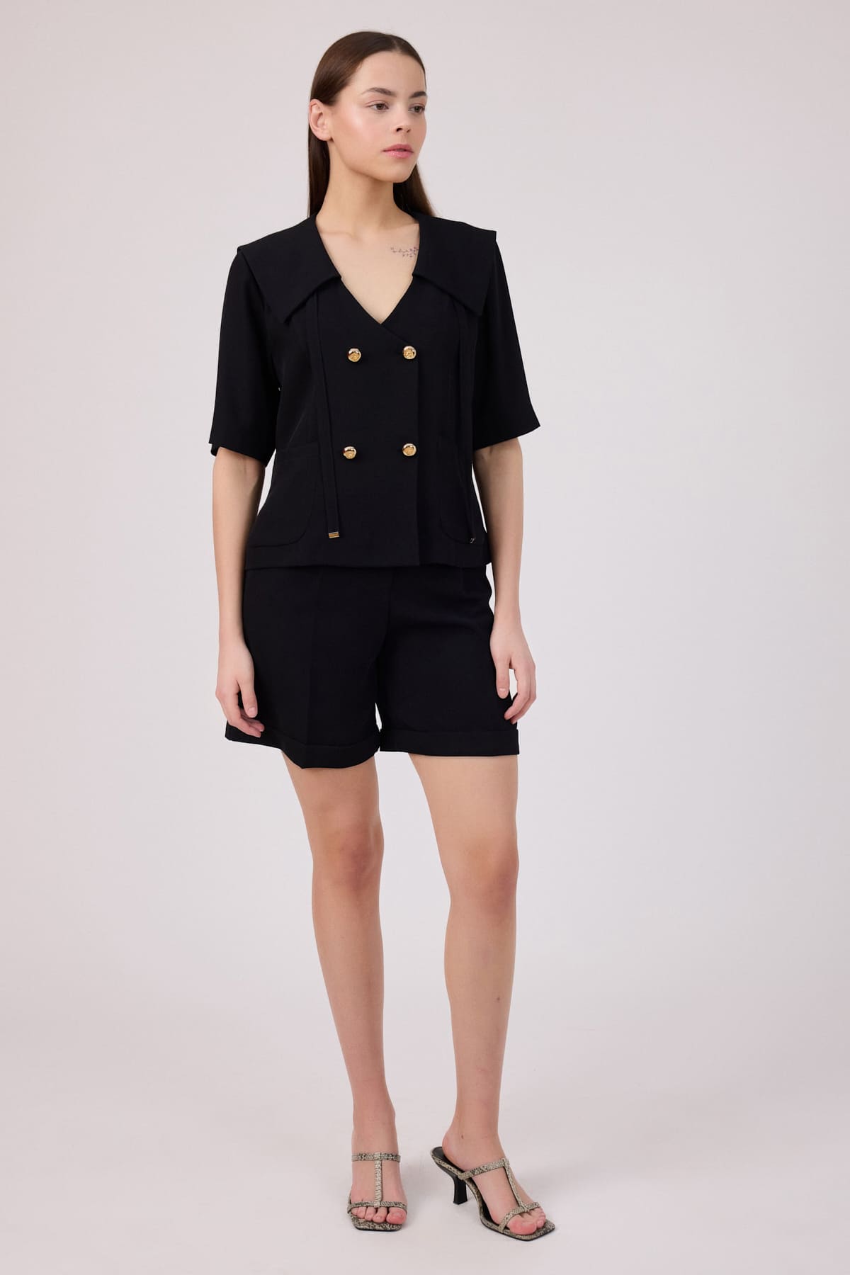 Geniş yakalı bluz ceket