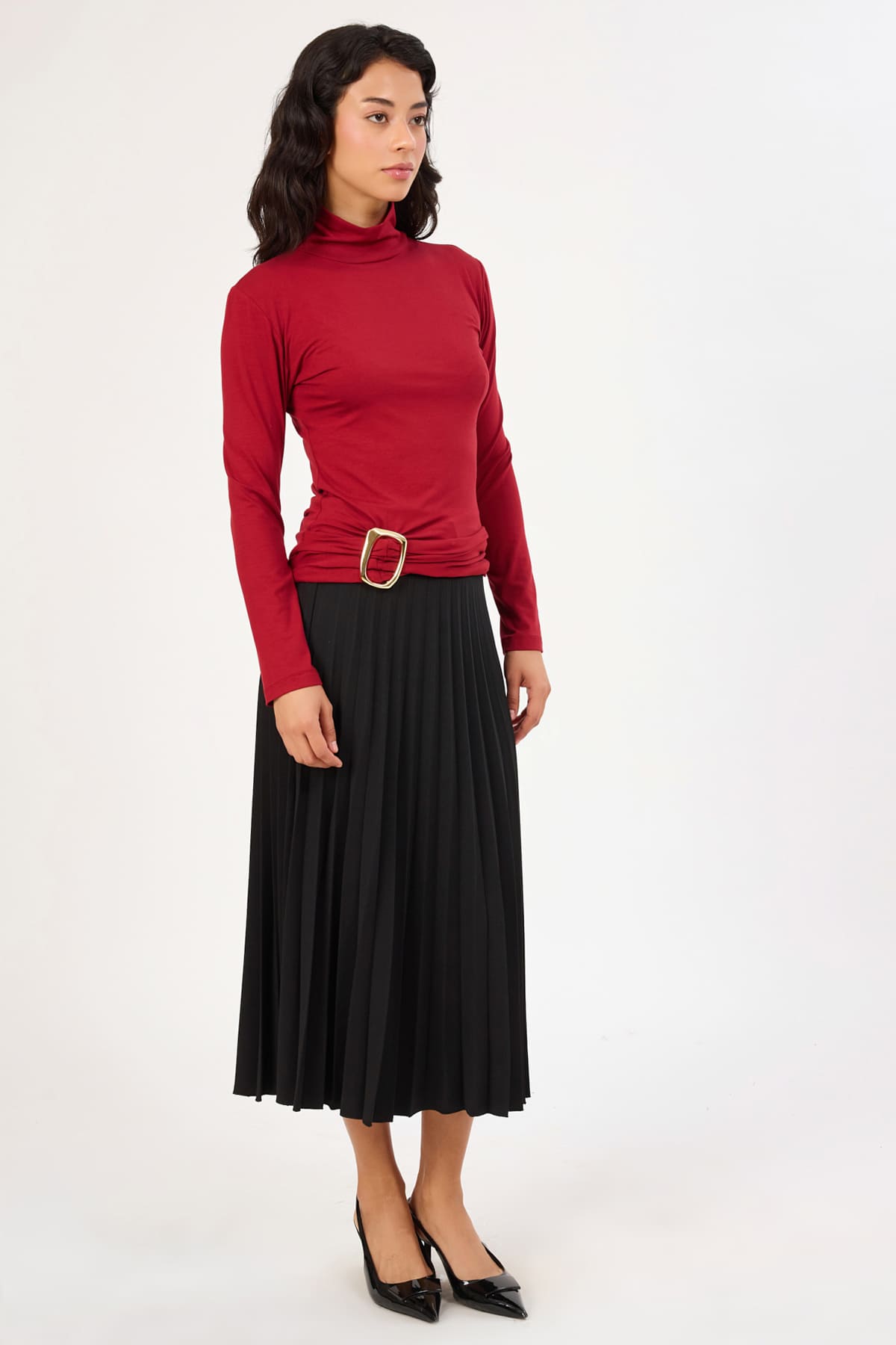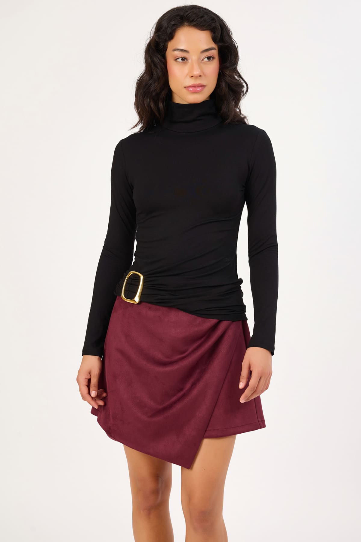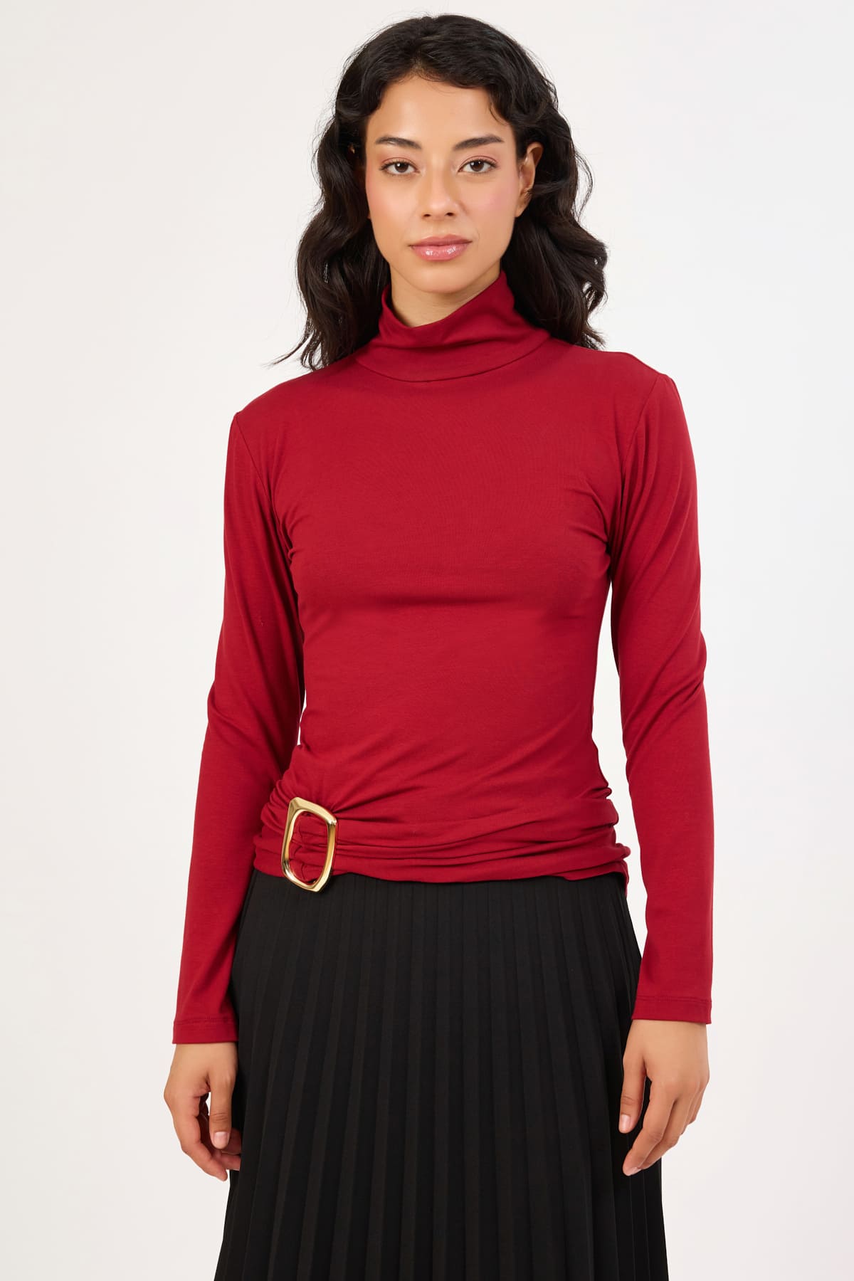 ÜRÜN BİLGİSİ:Nefes alabilir likralı örme kumaş,metal toka detaylı,balıkçı yaka,uzun kollu,likralı fit form bluz.
