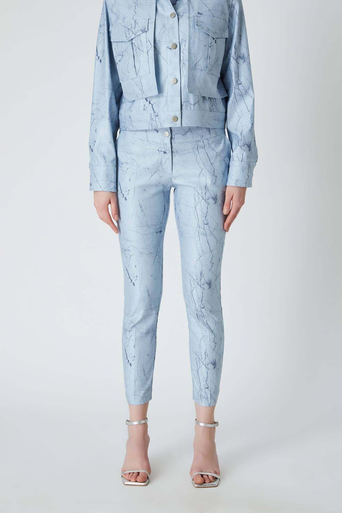 ÜRÜN BİLGİSİ:Saten yüzeyli dökümlü kumaş,normal bel,düğme kapamalı,yan cepli,geniş paça pantolon.