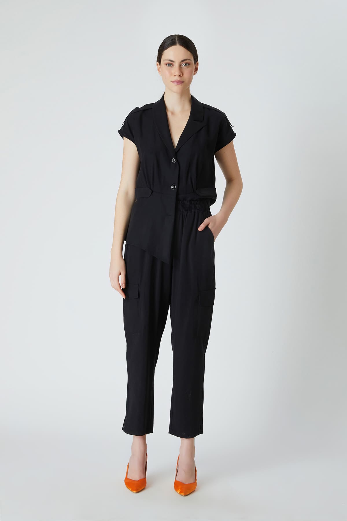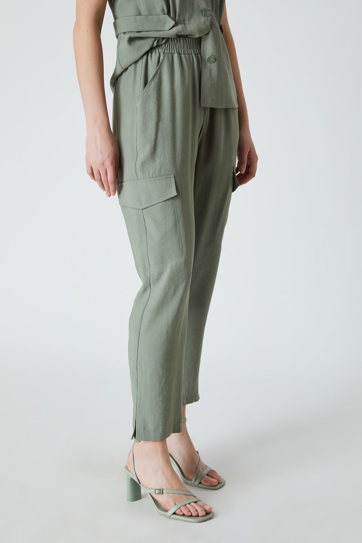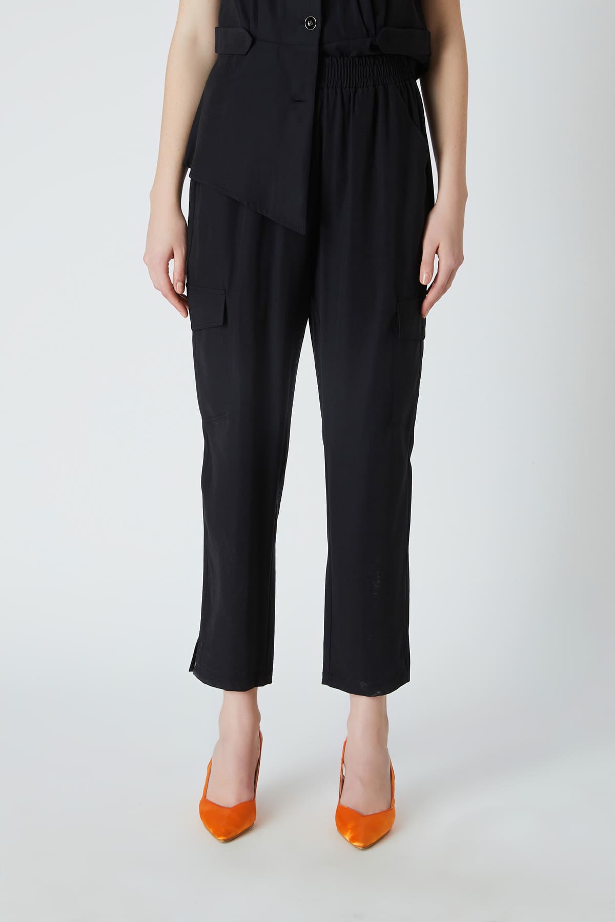 ÜRÜN BİLGİSİ:Dökümlü kumaş,beli lastikli,yan ve kargo cepli,rahat form pantolon.