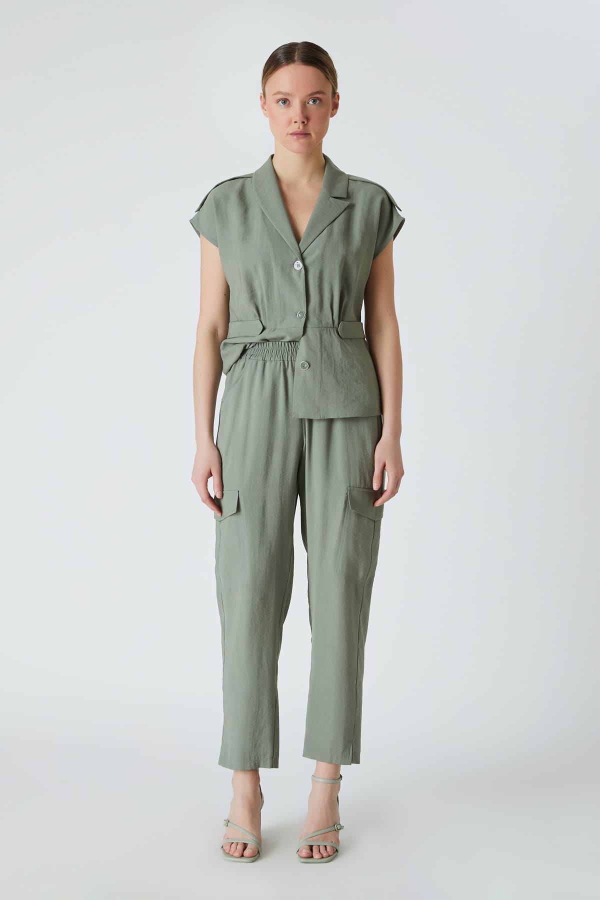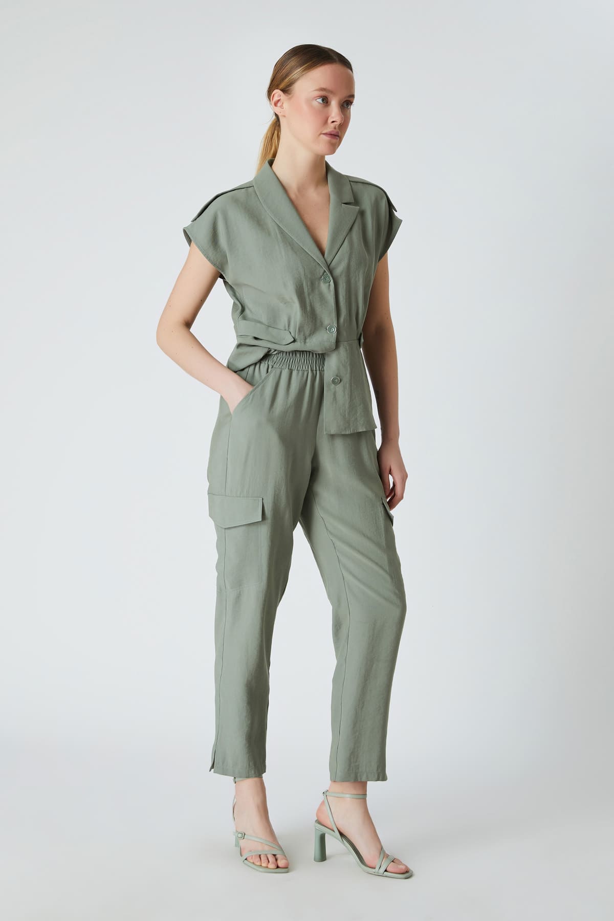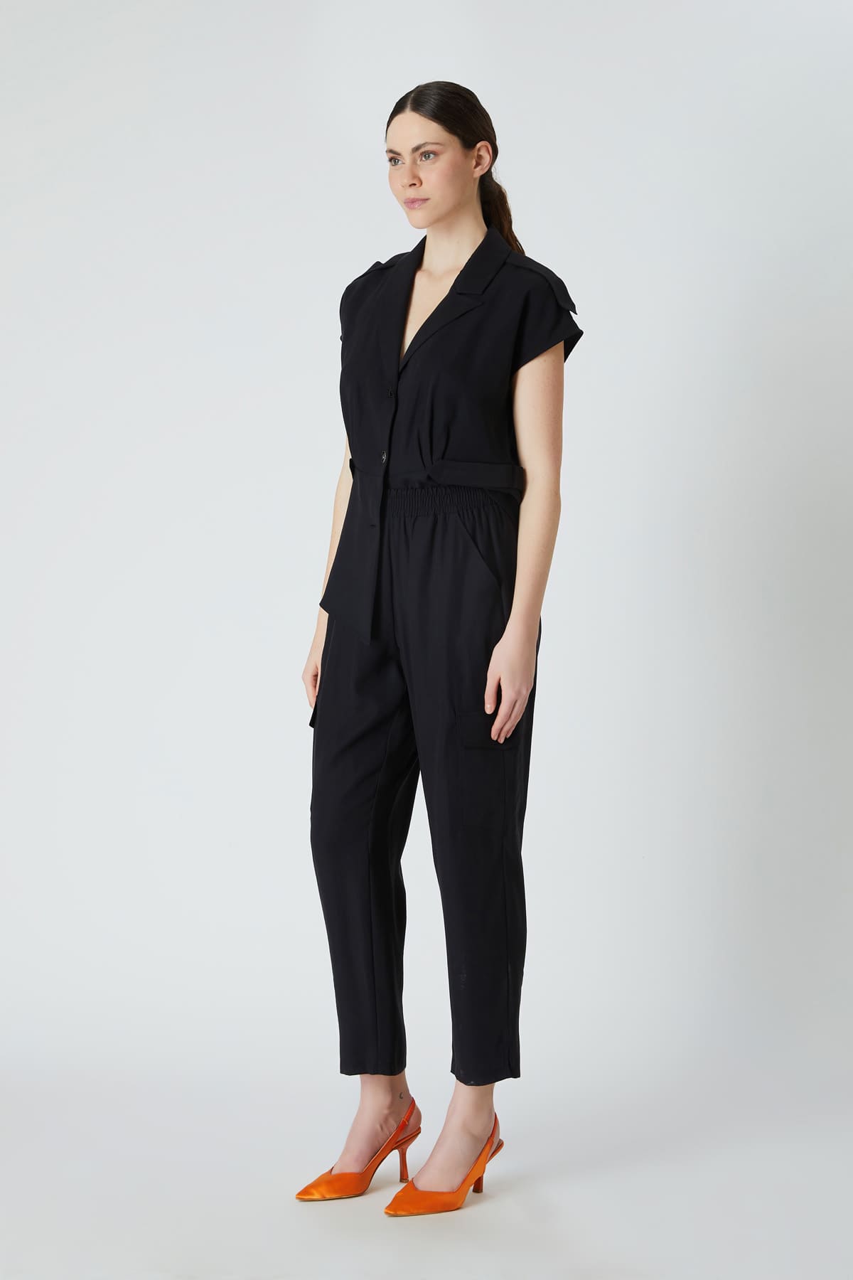 ÜRÜN BİLGİSİ:Dökümlü kumaş,beli lastikli,yan ve kargo cepli,rahat form pantolon.