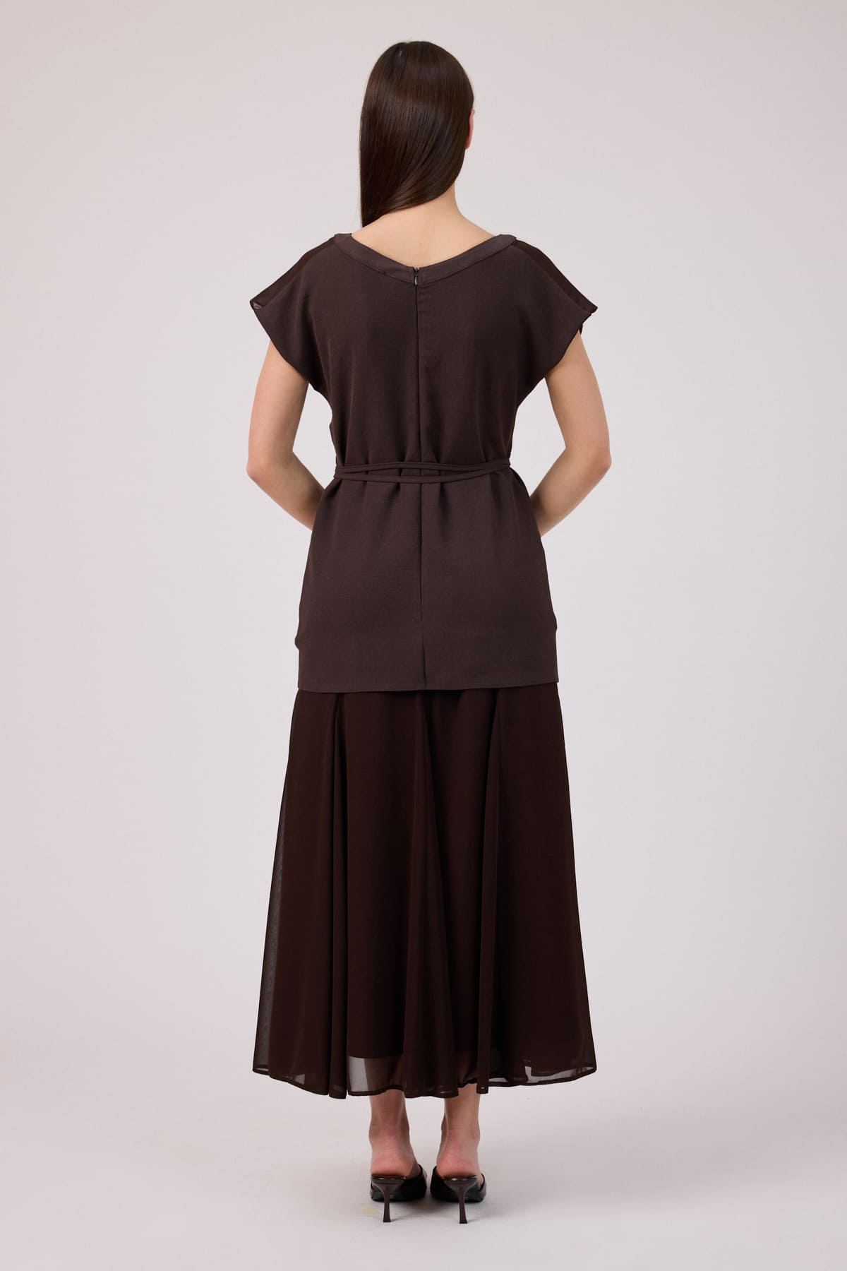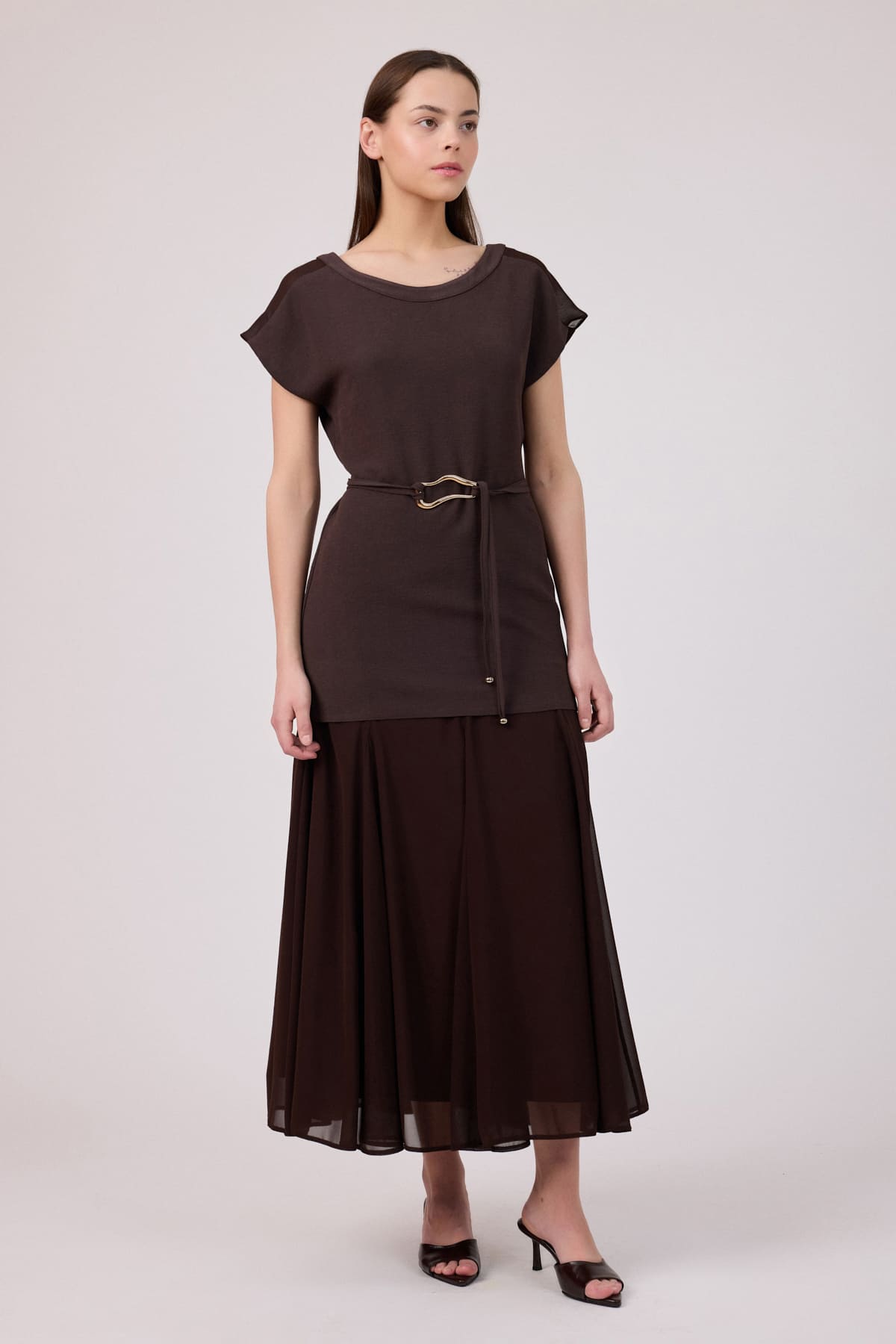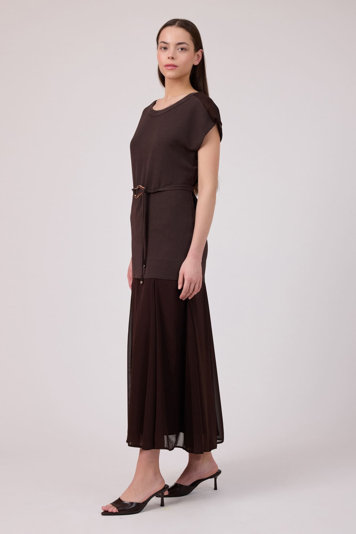 Katmanlı şifon geçişli elbise