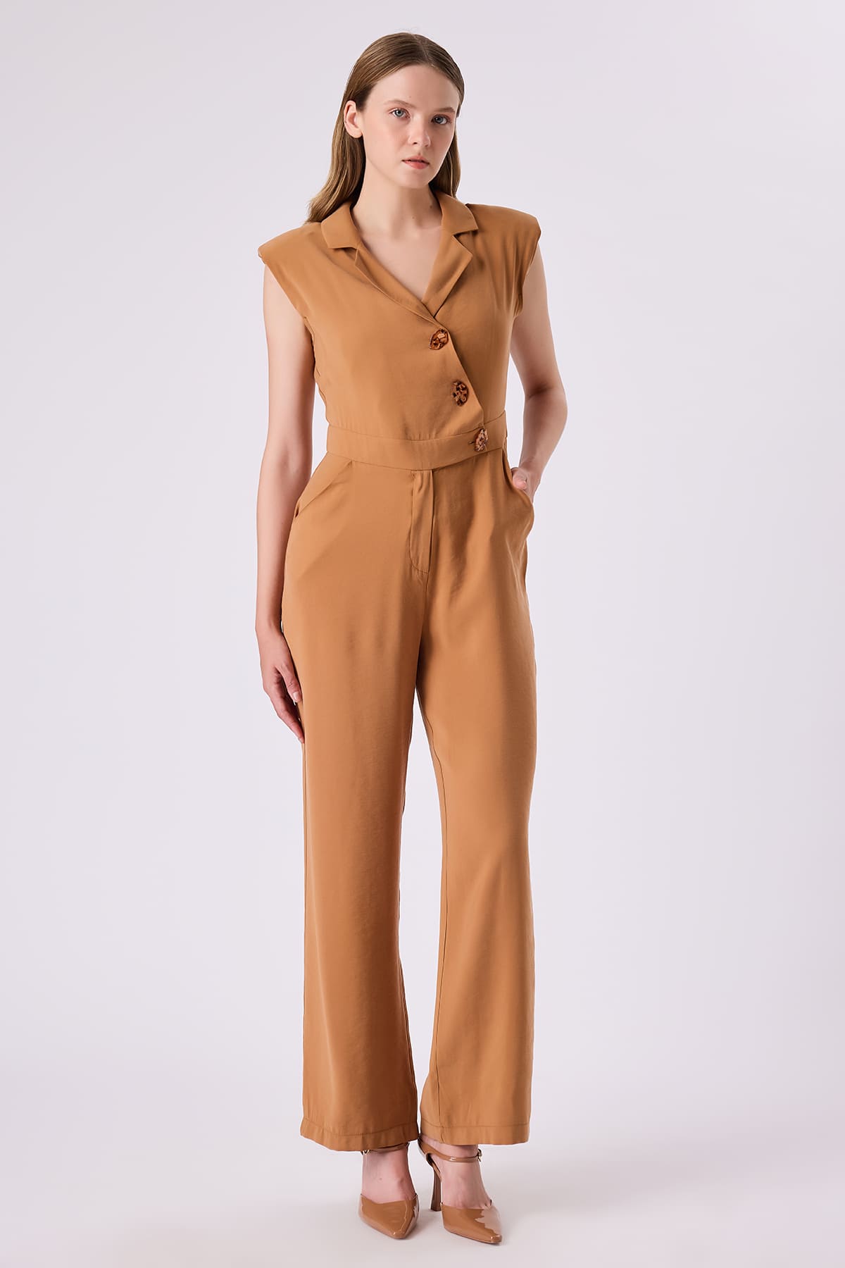 Kruvaze yakalı tulum