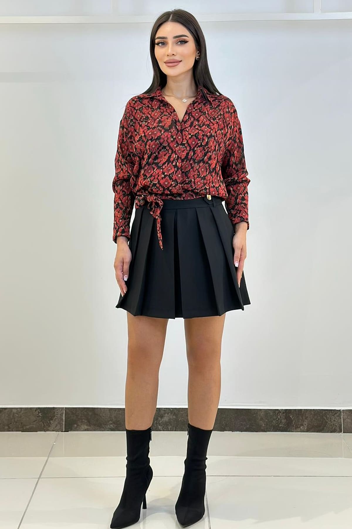 Likralı pileli şort etek