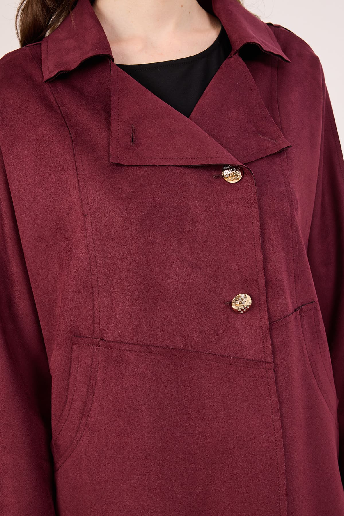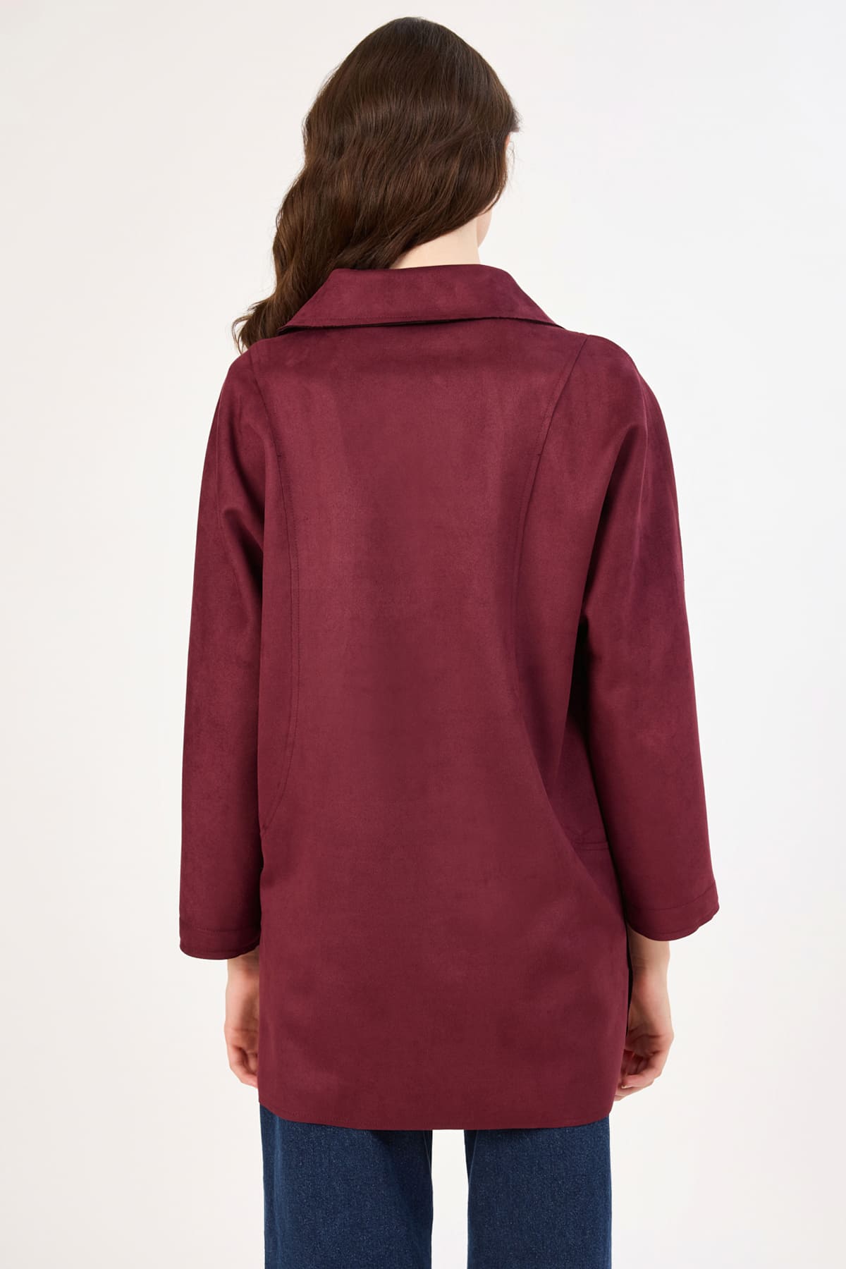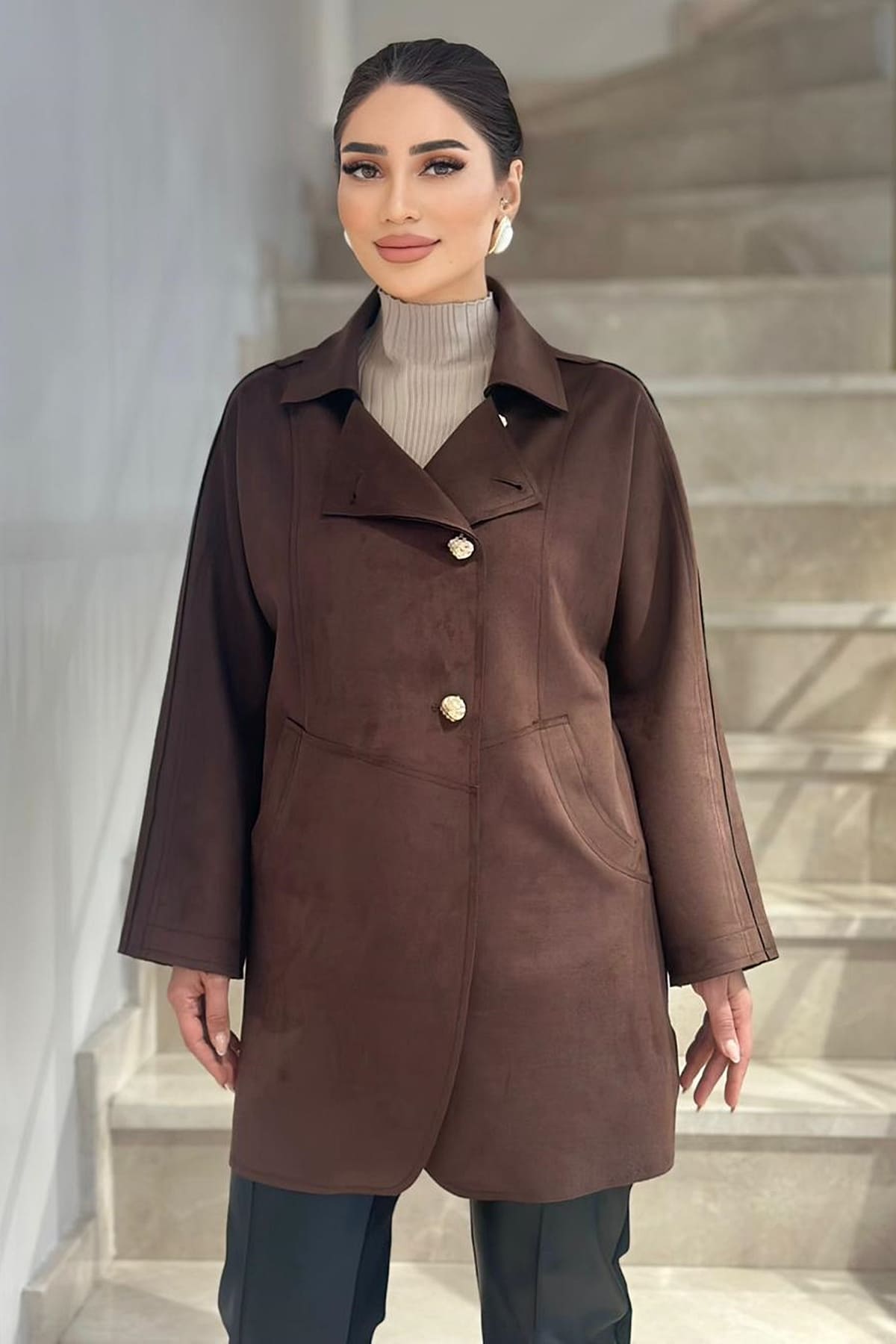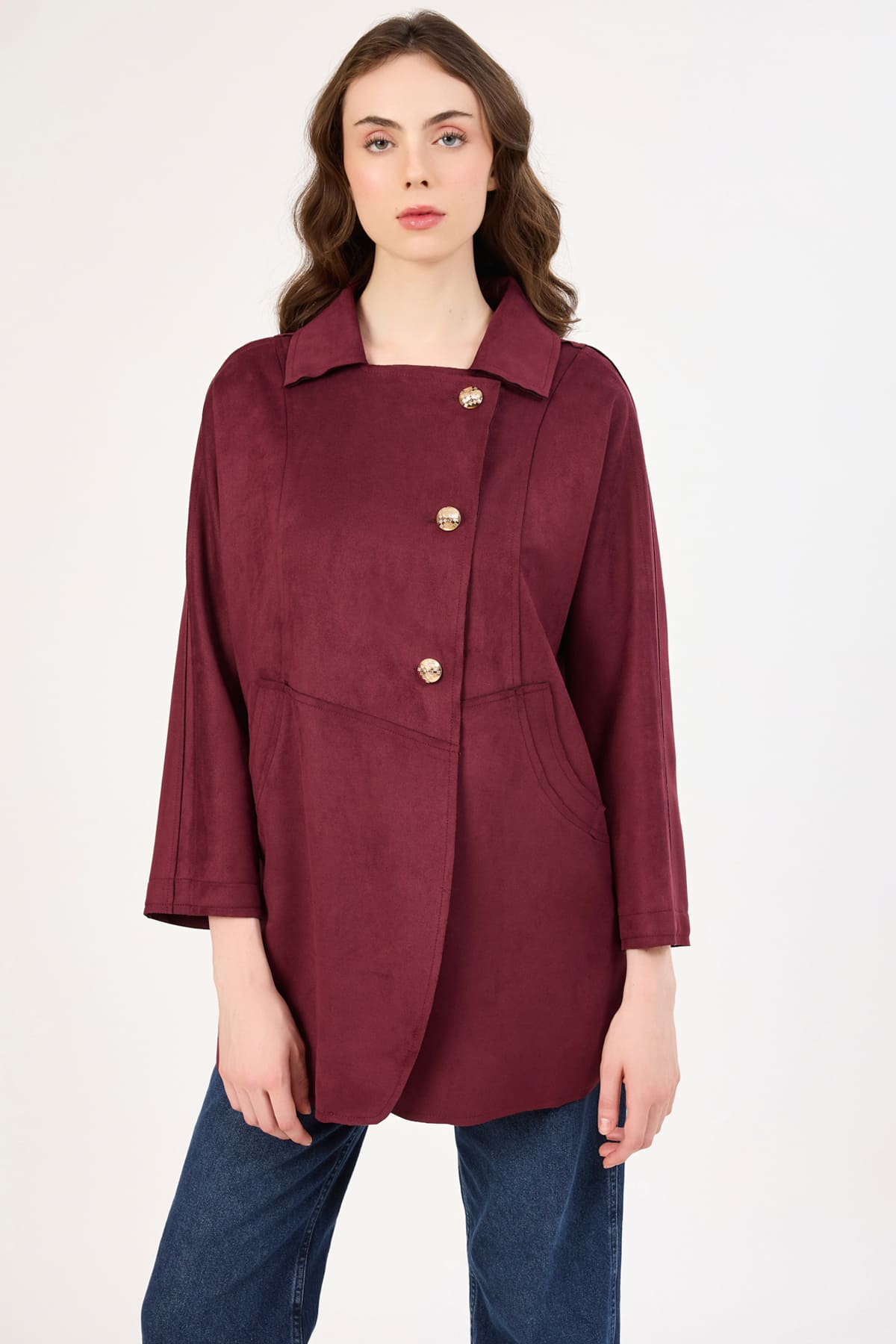 ÜRÜN BİLGİSİ:Süet görünümlü,soft yüzeyli kumaş,yakalı,cepli,düşük kollu,rahat form,astarsız kap