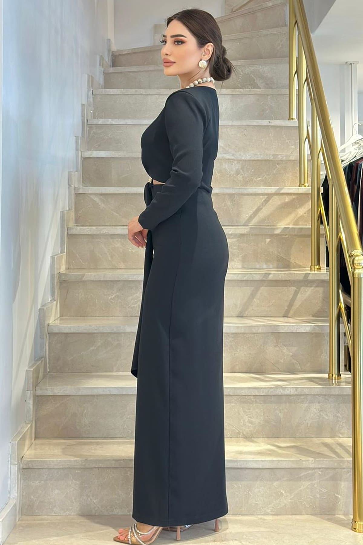 Minimal aksesuar pencere detaylı elbise