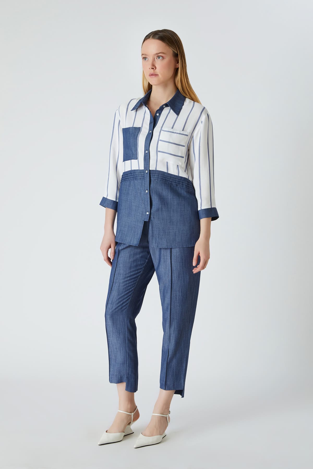 Nervür detaylı viskon gömlek