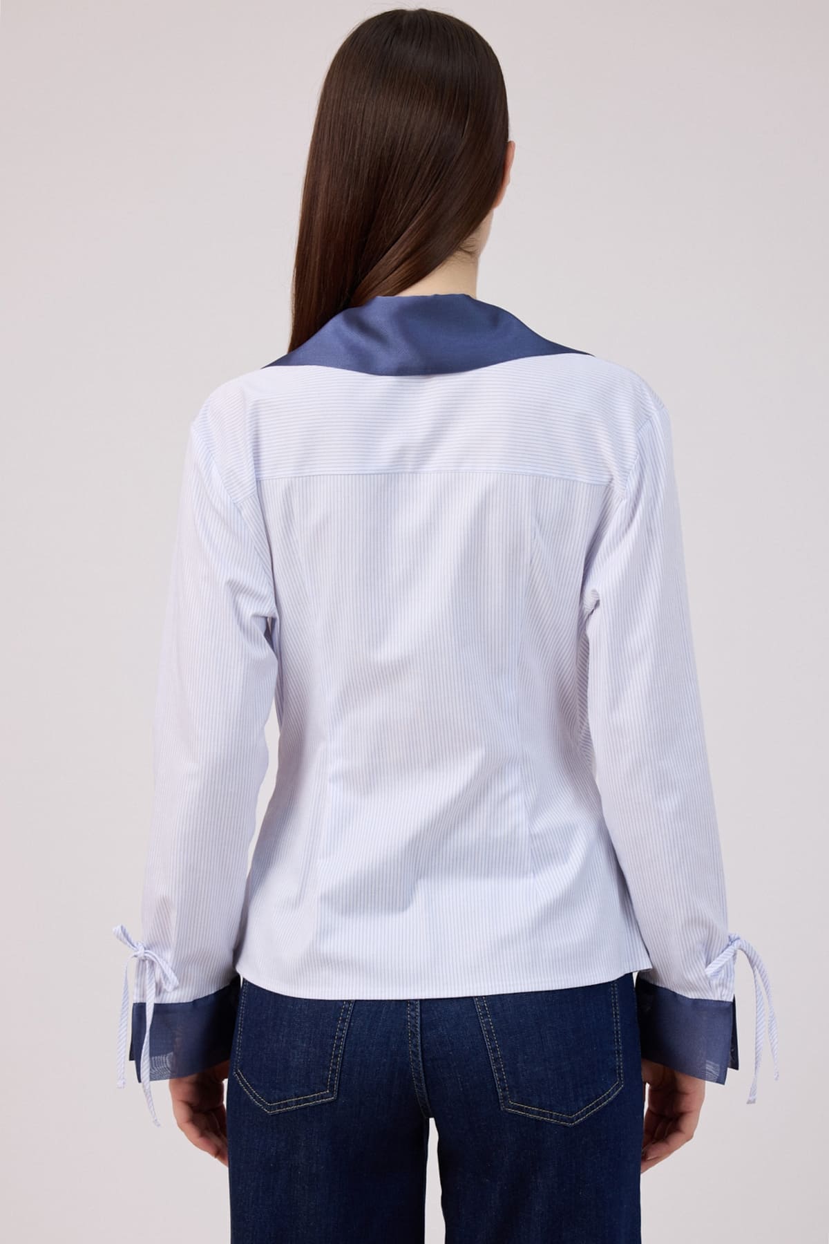 ÜRÜN BİLGİSİ:İnce çizgili poplin kumaş,yaka ve kol manşetleri uyumlu renkte organze kumaş,anvelop kuplu ve küçük altın rengi tokalı bluz
