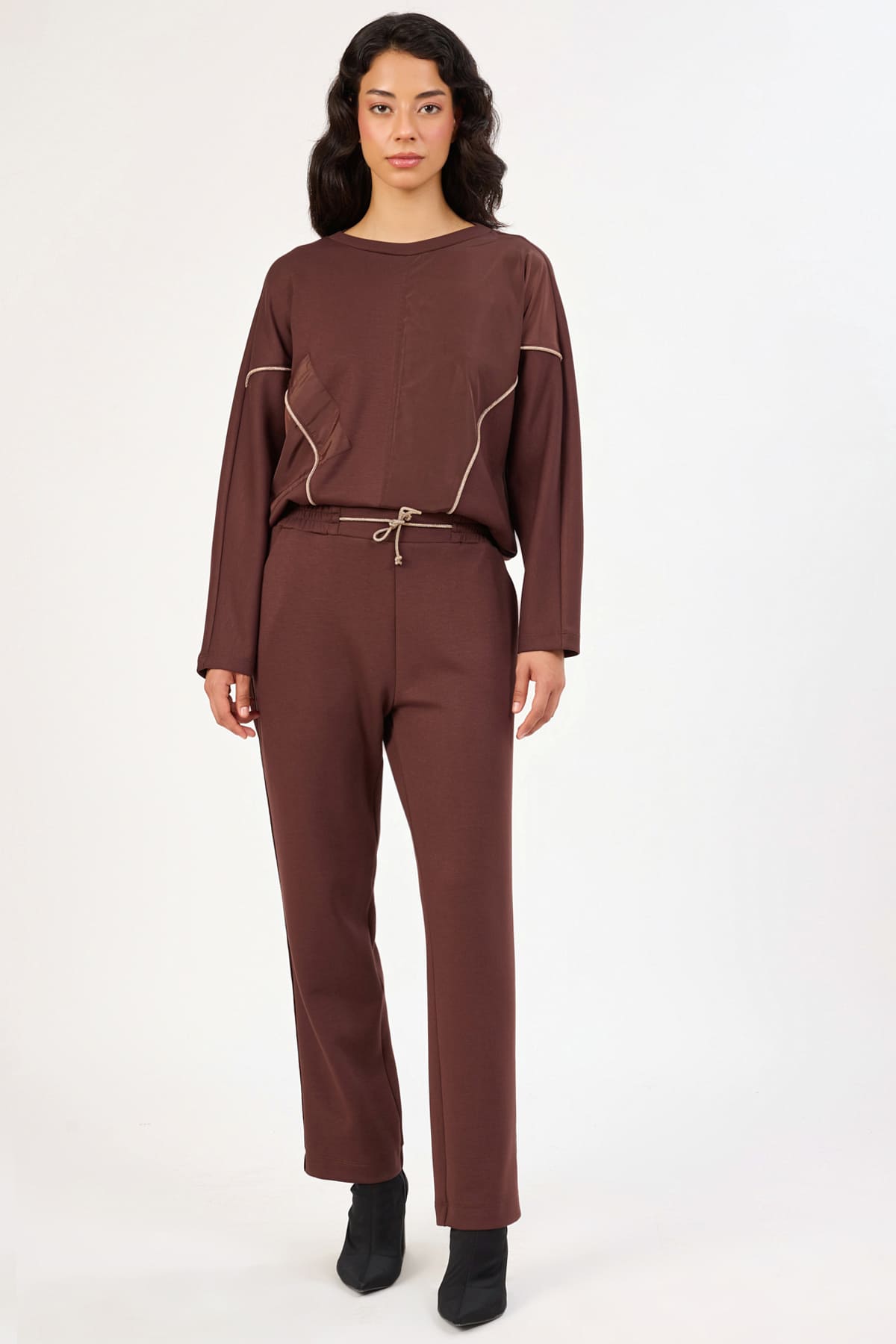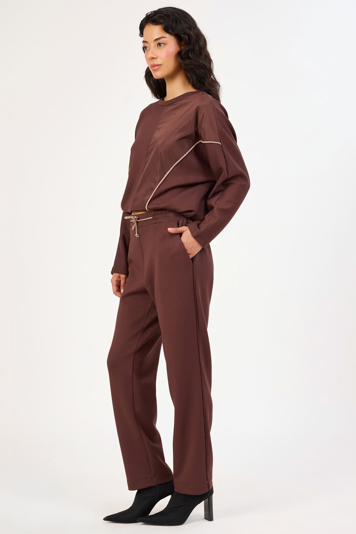 ÜRÜN BİLGİSİ:Likralı modal soft yüzeyli kumaş,parlak bağcık detaylı,elastik bel,cepli,rahat form şık eşofman pantolon.