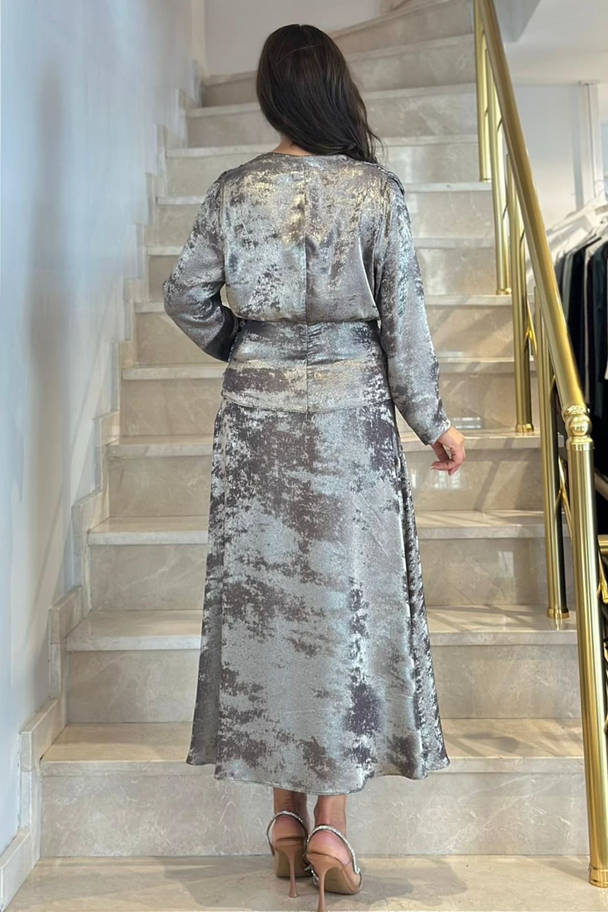 Parlak yüzeyli kloş etek