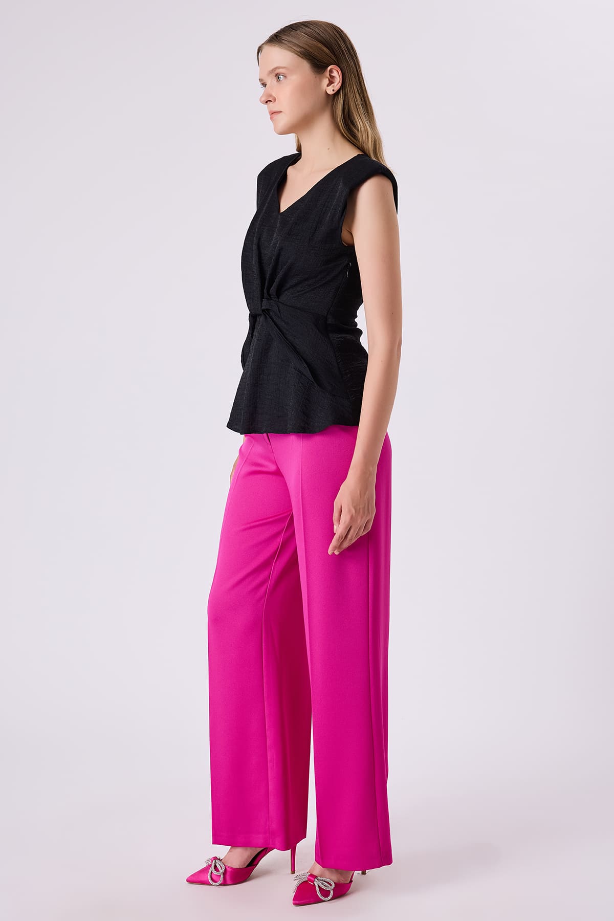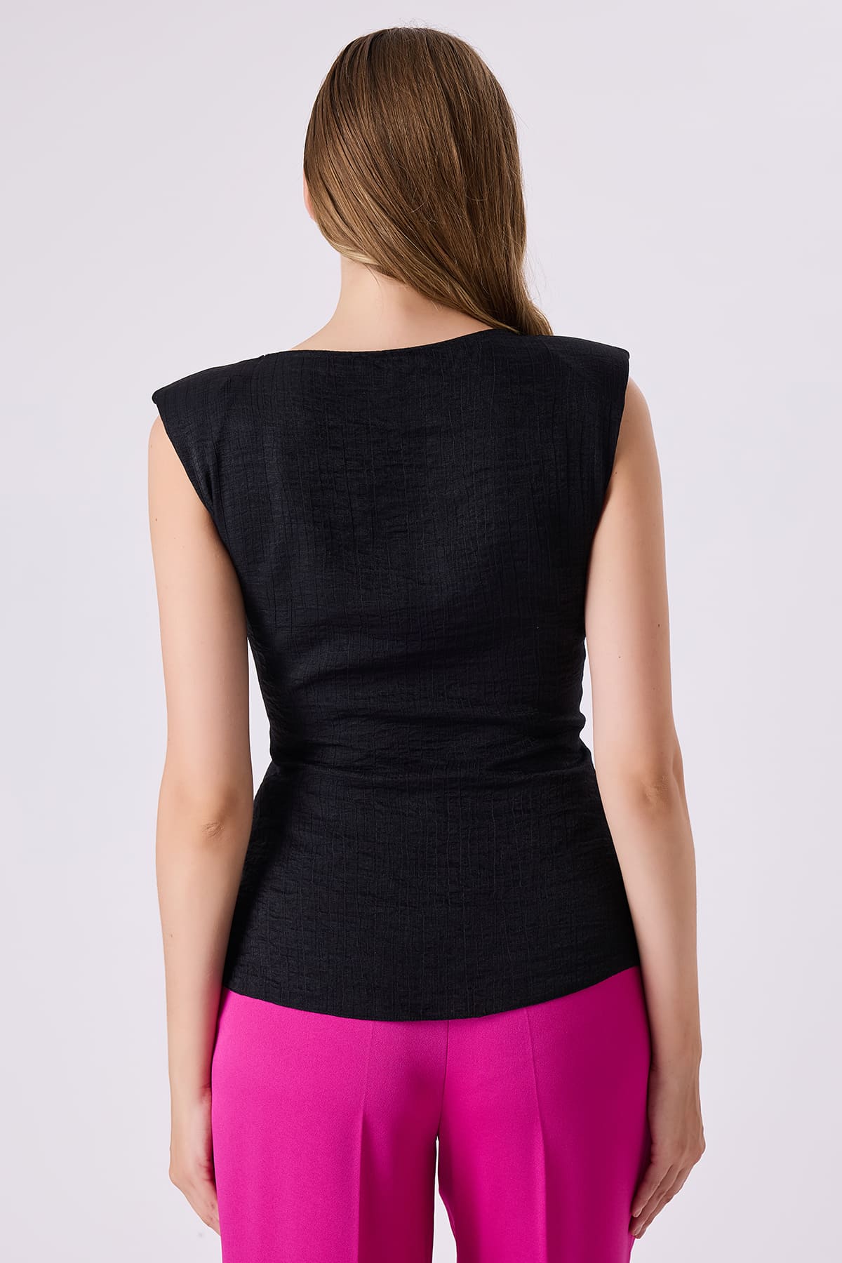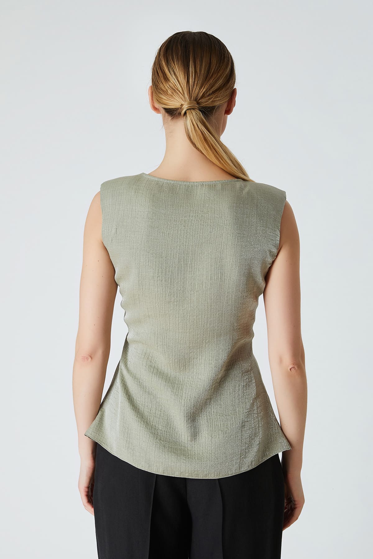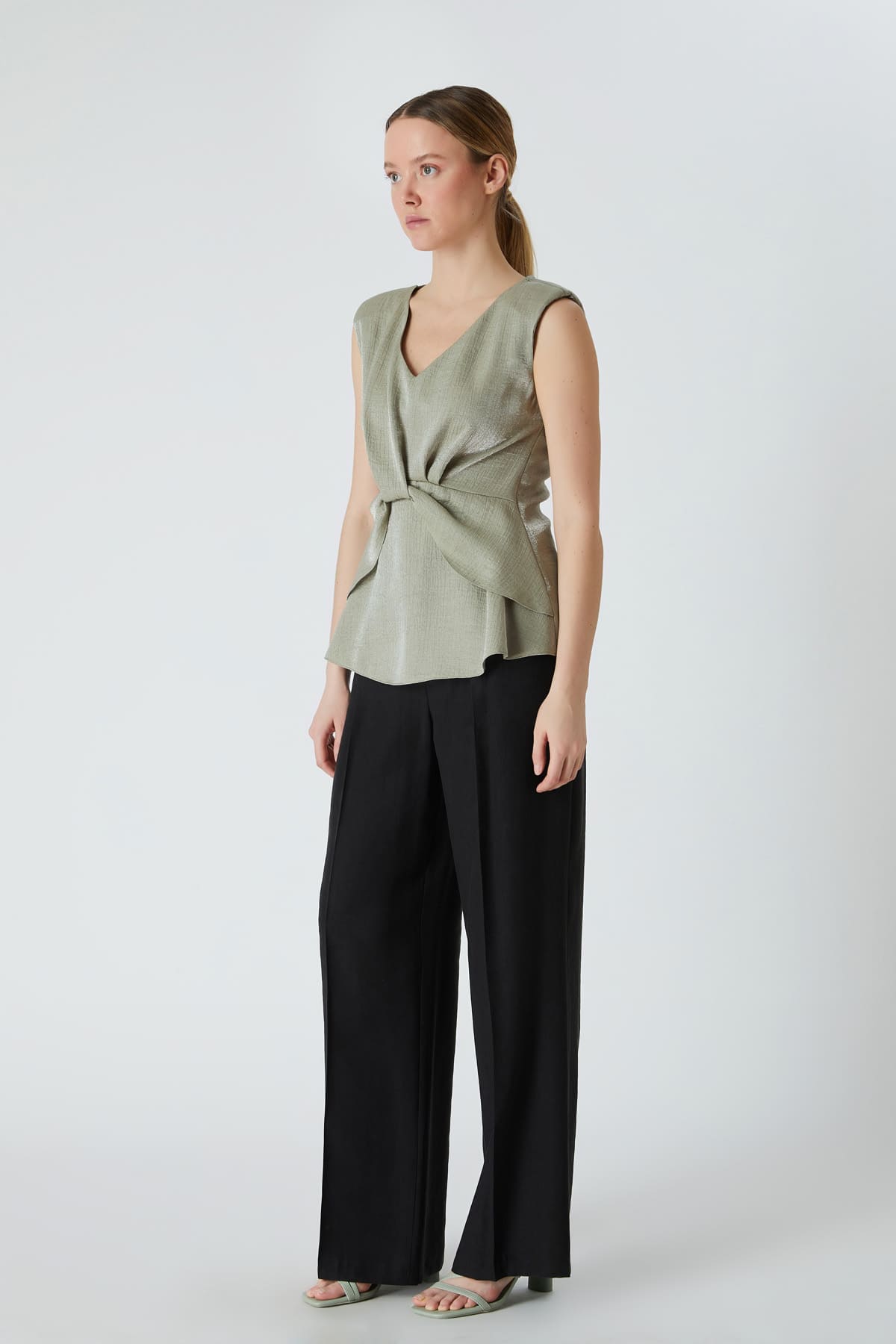 ÜRÜN BİLGİSİ:Viskon içerikli parlak kumaş,önü v yakalı,omuzları vatkalı,beli pile detaylı,fermuarlı şık bluz.