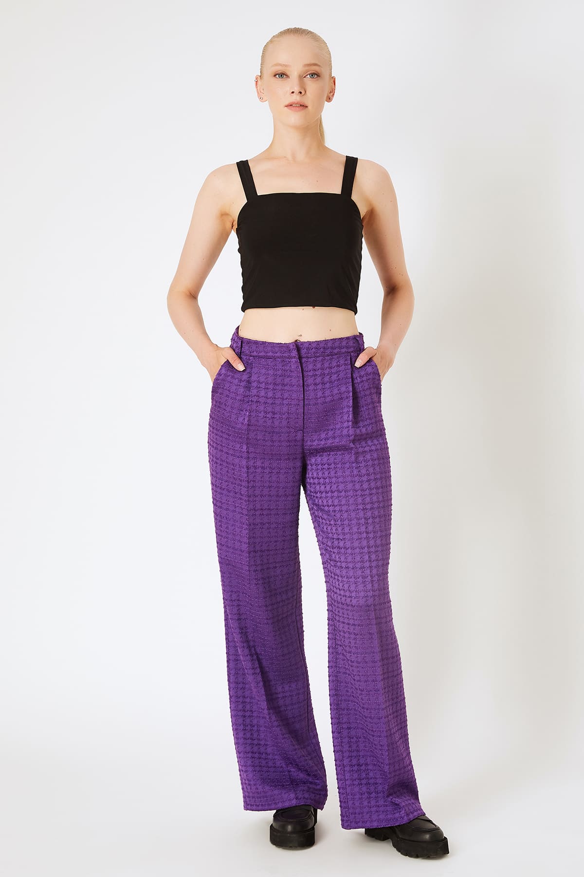 ÜRÜN BİLGİSİ:Tüvid dokulu kumaş,yüksek bel,tek plili,yan cepli,hafif geniş paça pantolon