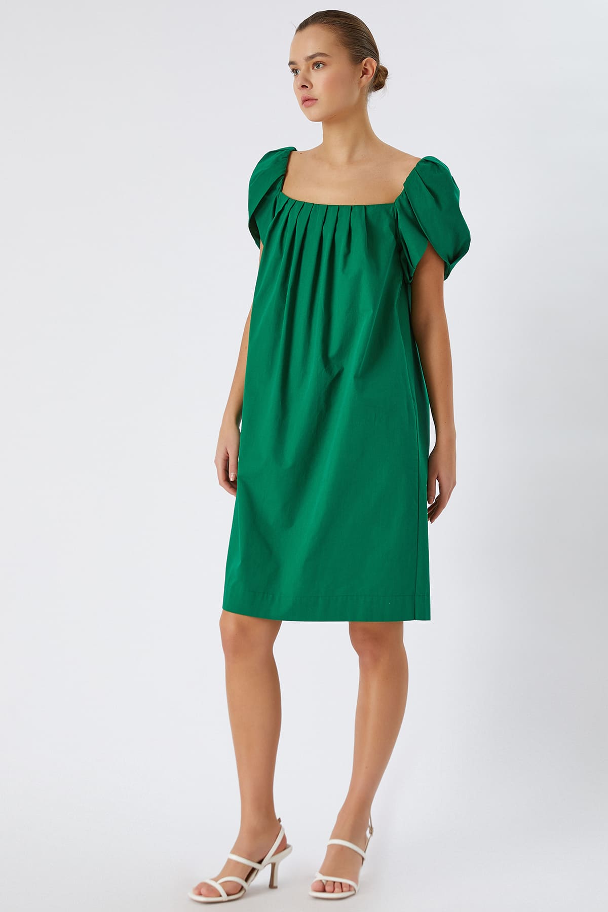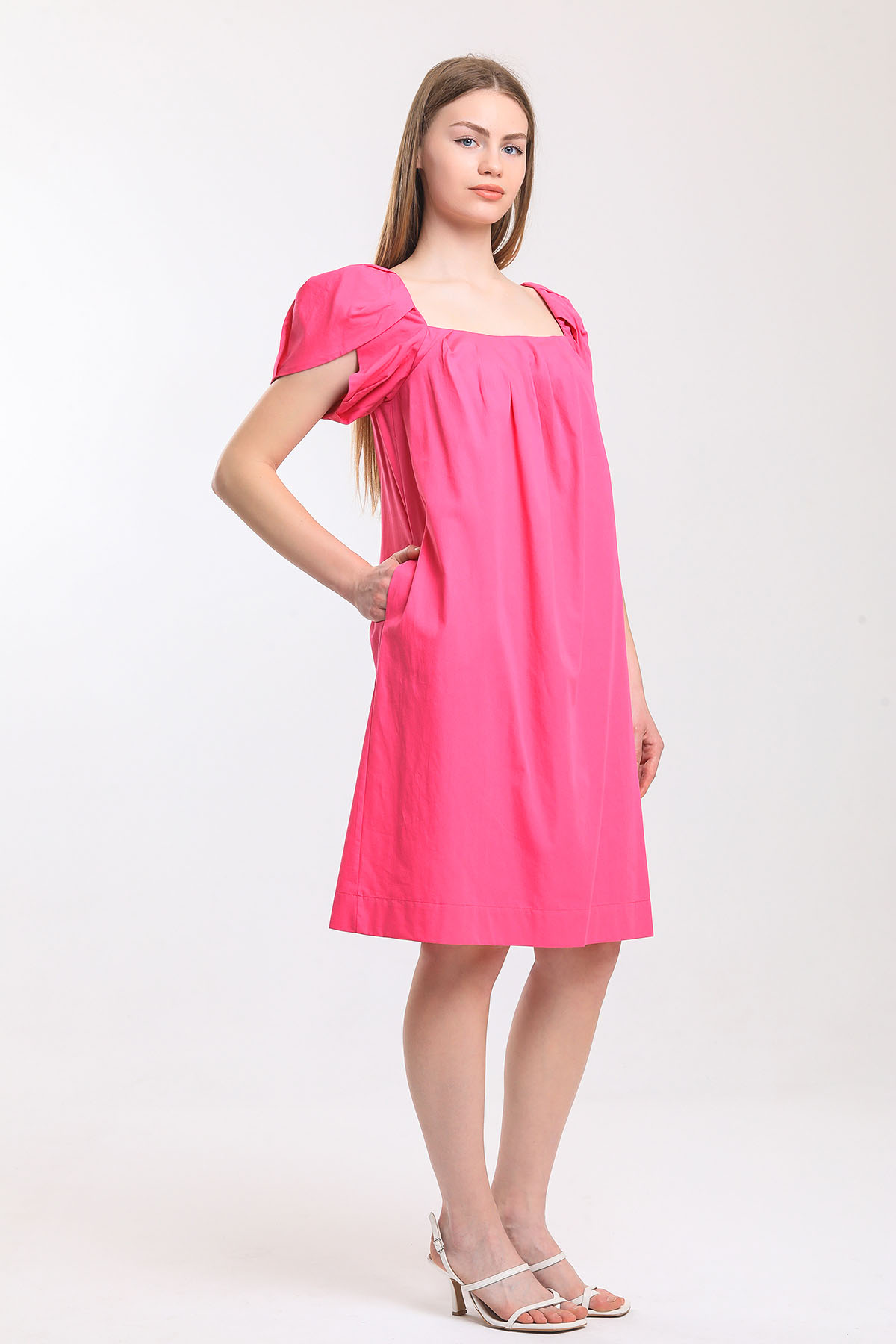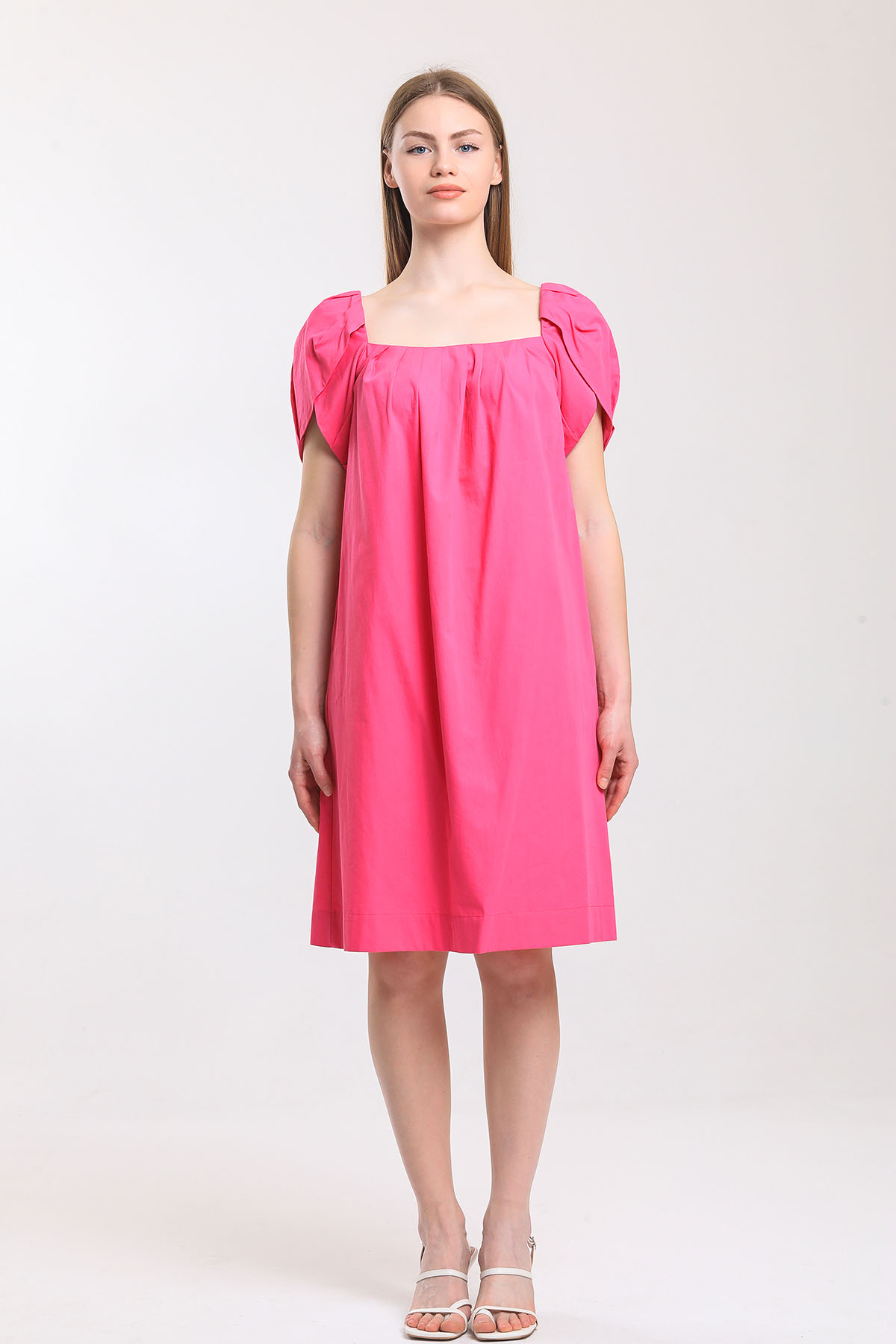 Poplin kare yaka elbise