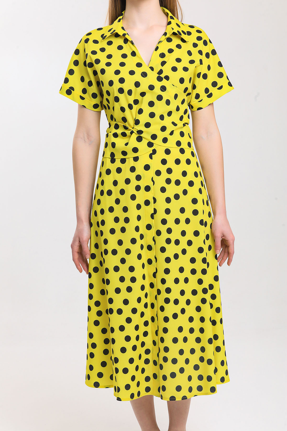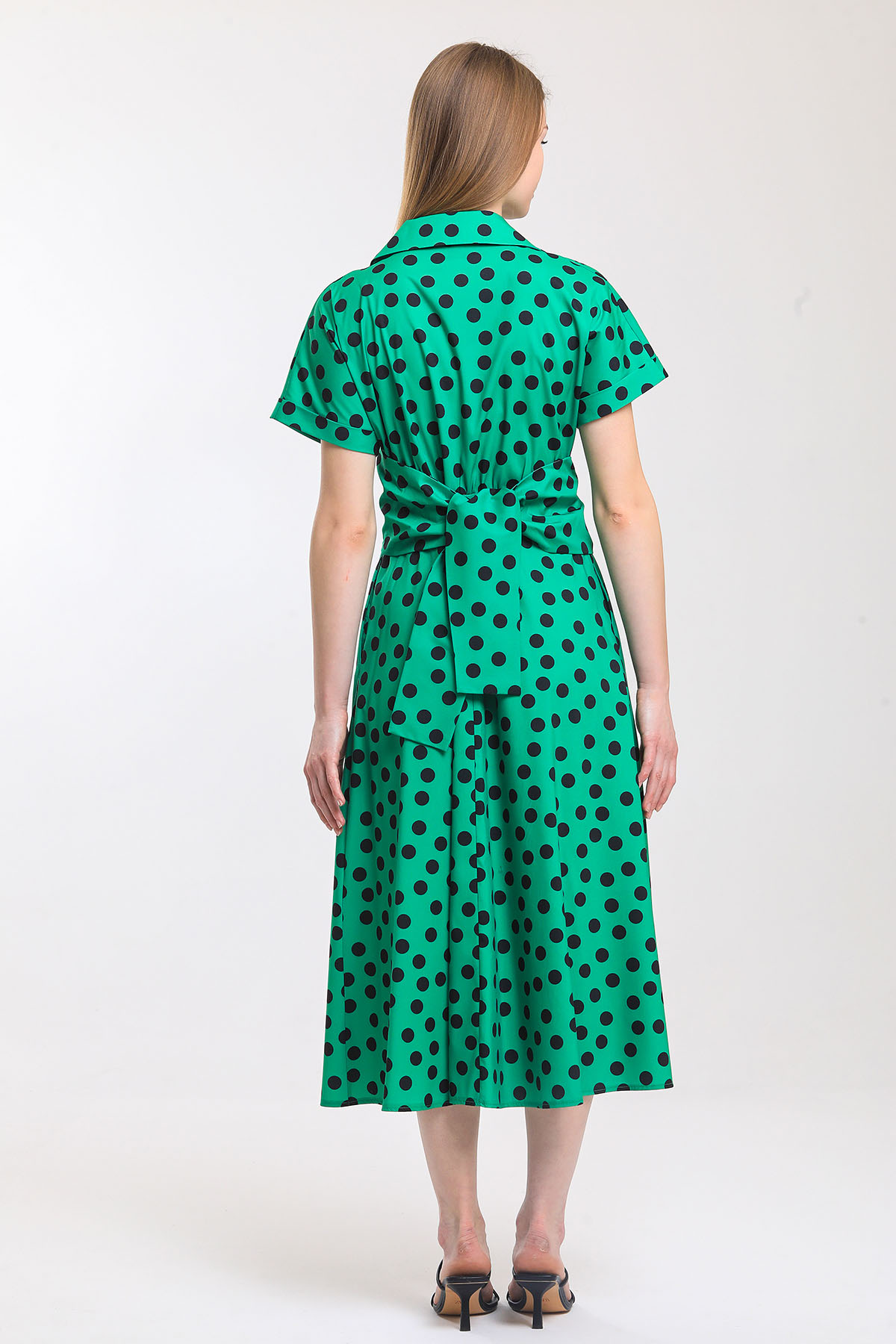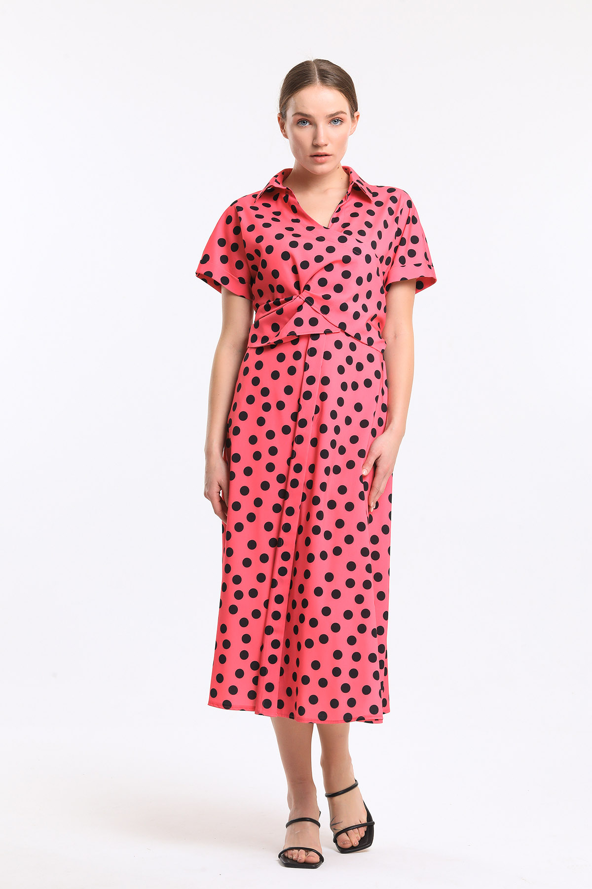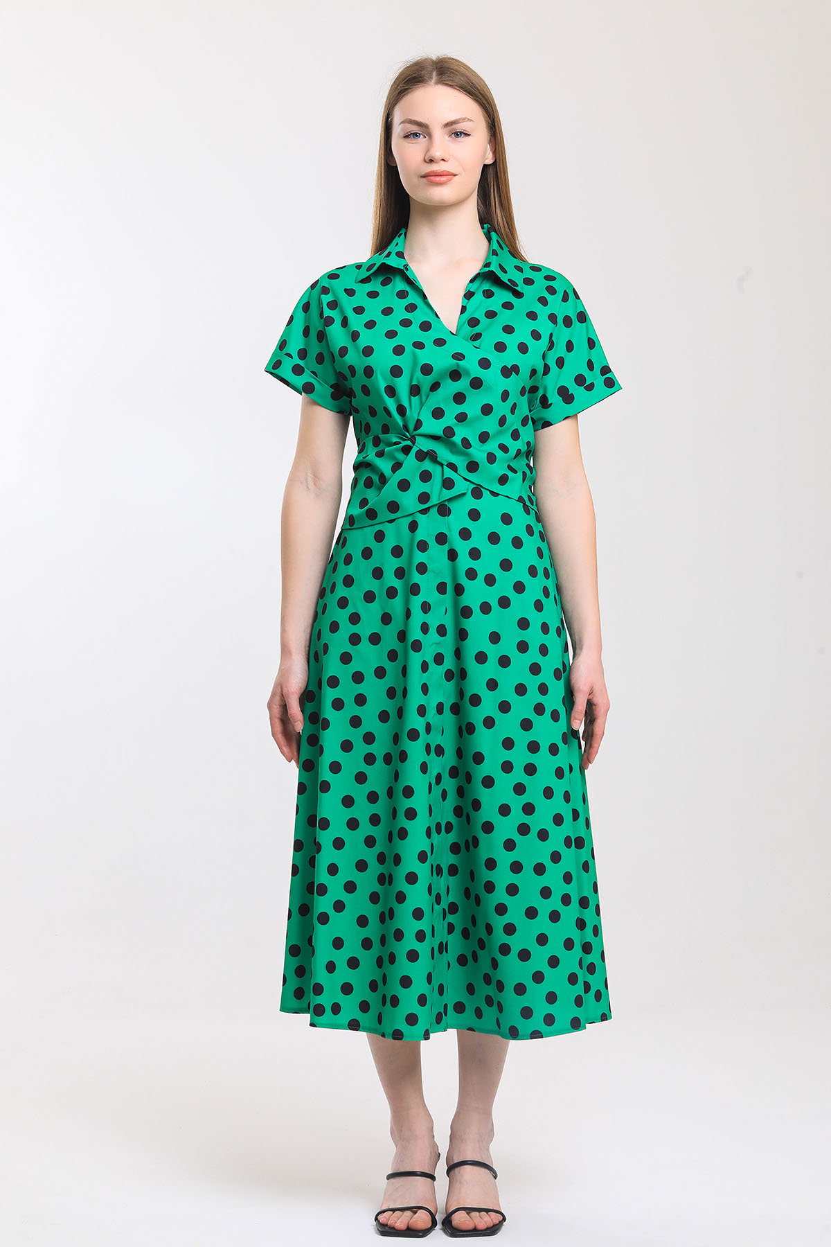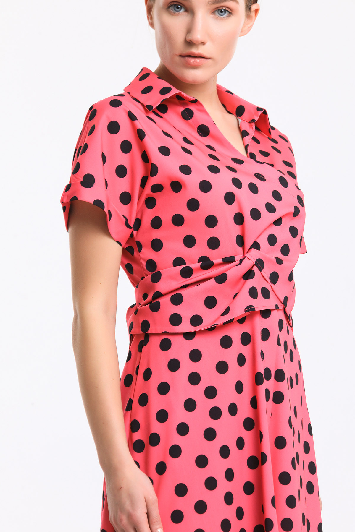 Puan desenli bağlamalı elbise