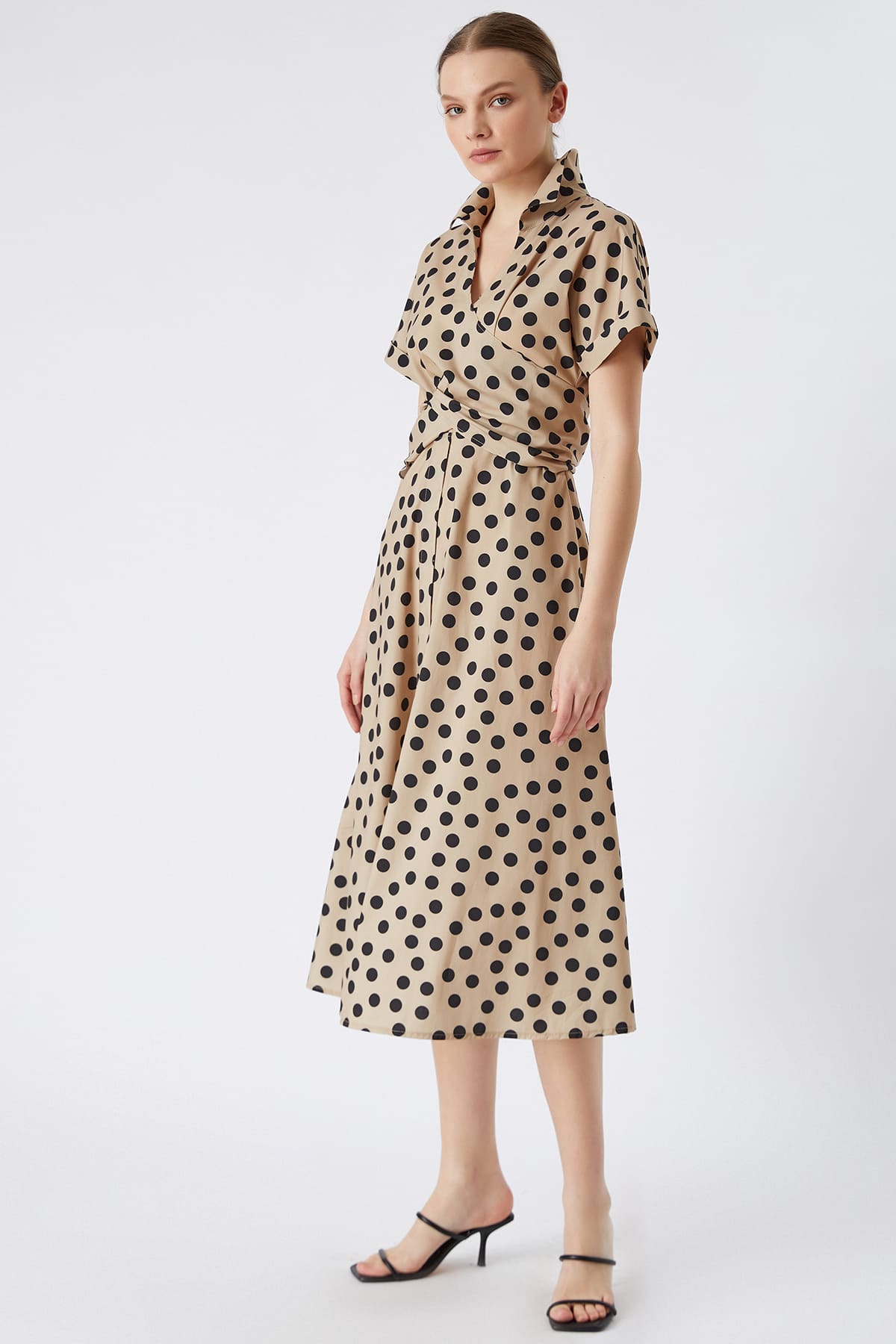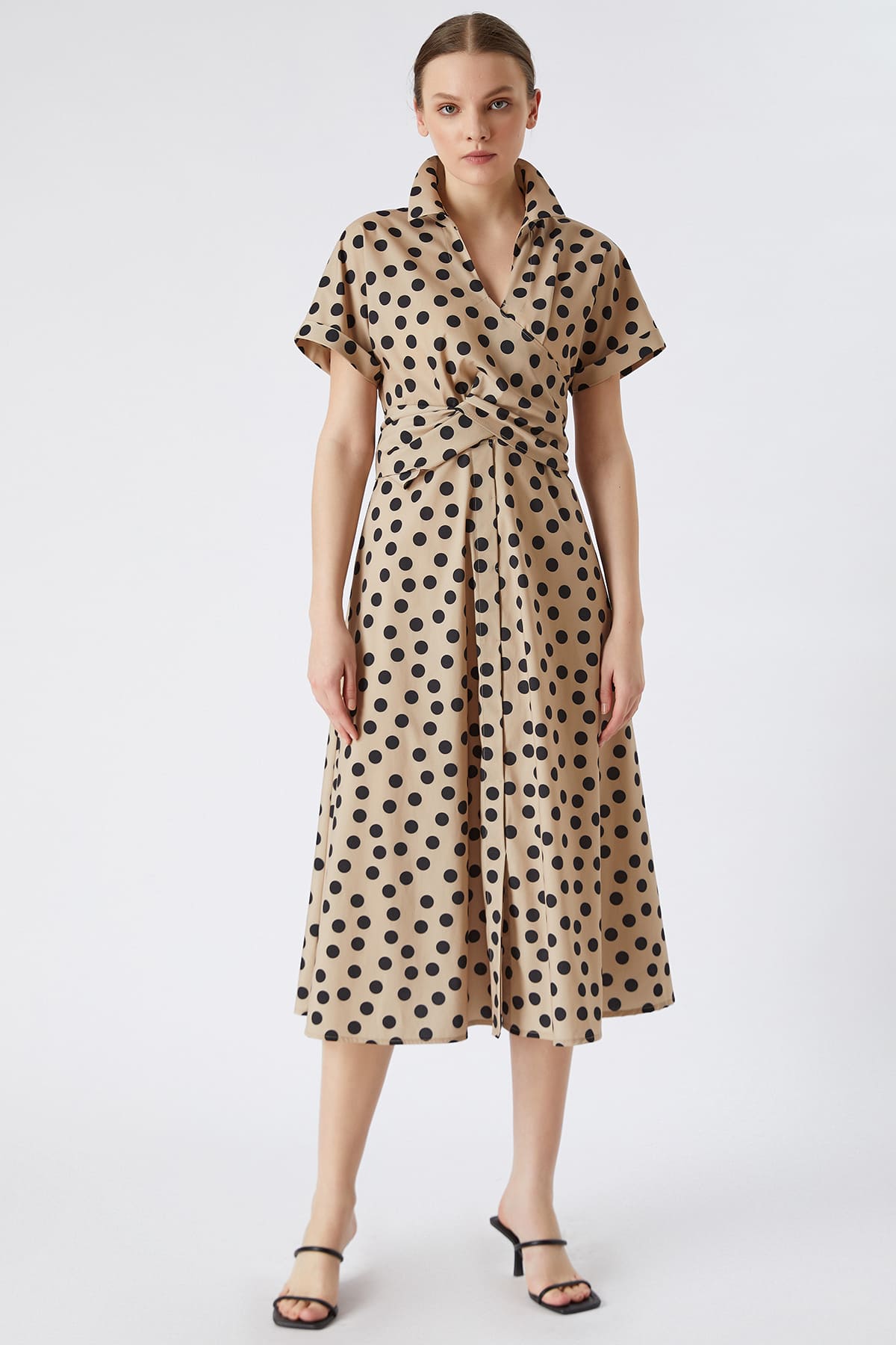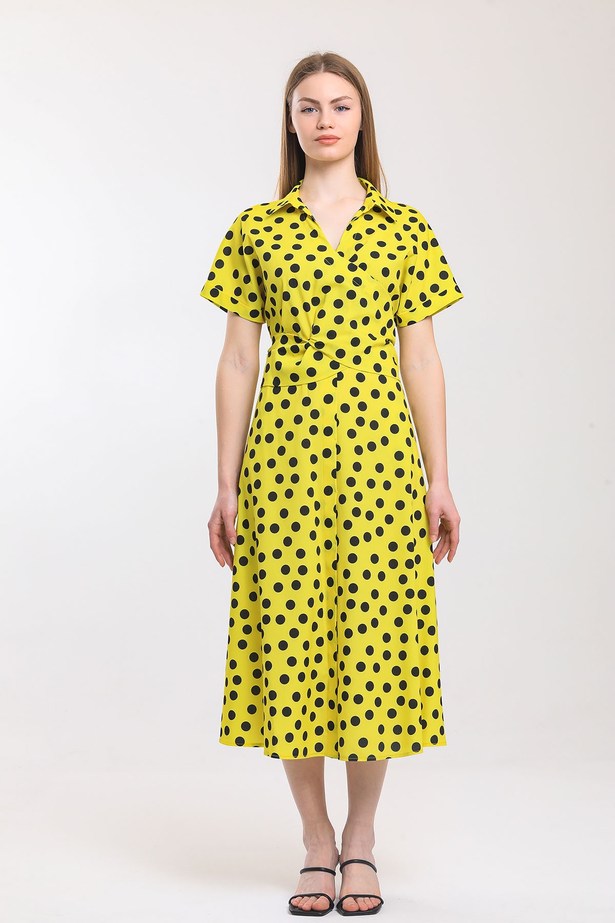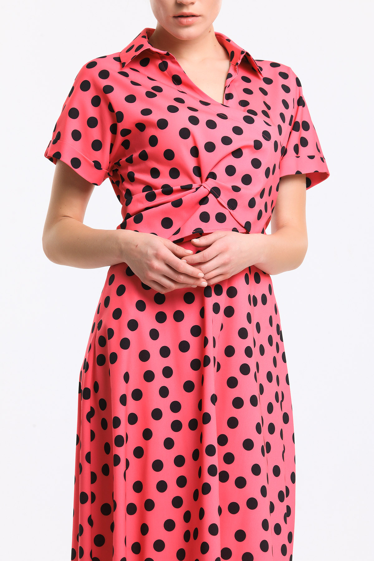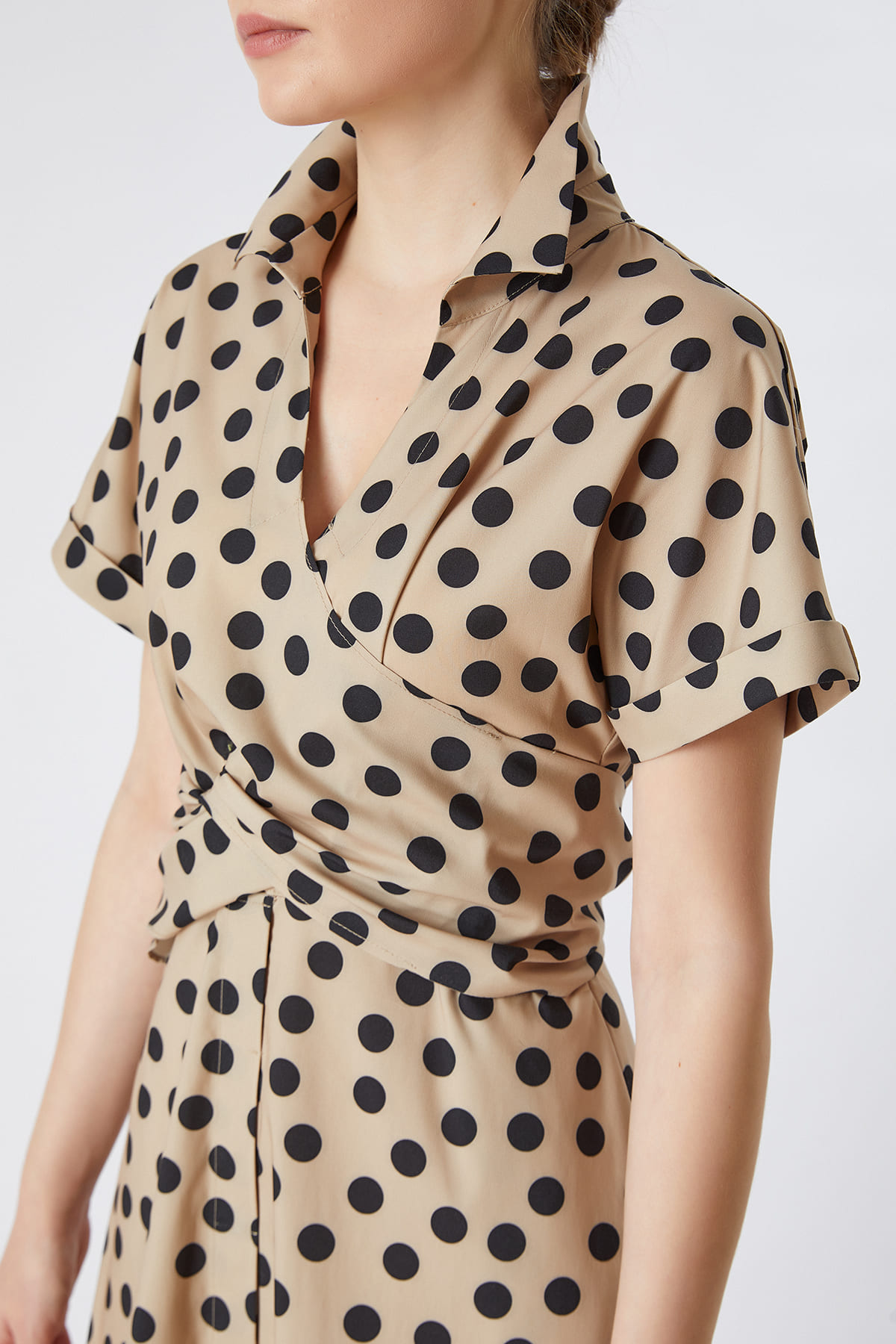 Puan desenli bağlamalı elbise
