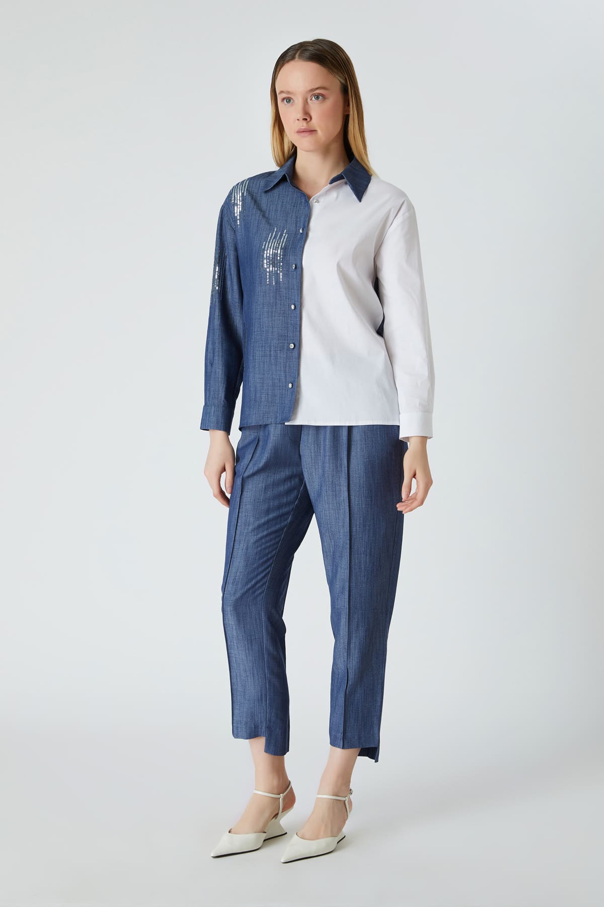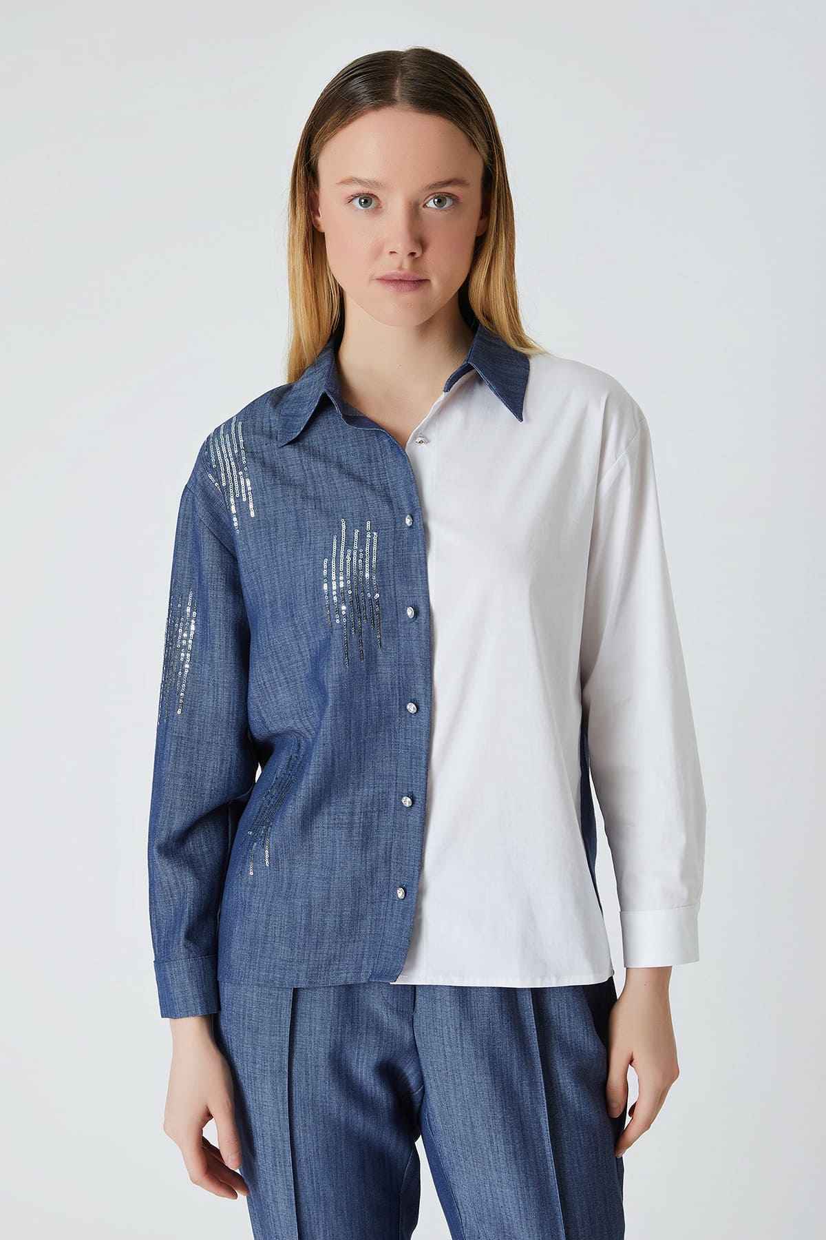 ÜRÜN BİLGİSİ:Viskon içerikli kumaş,yakalı,patlı,uzun kollu,tek tarfı pul nakışlı,düz form gömlek.