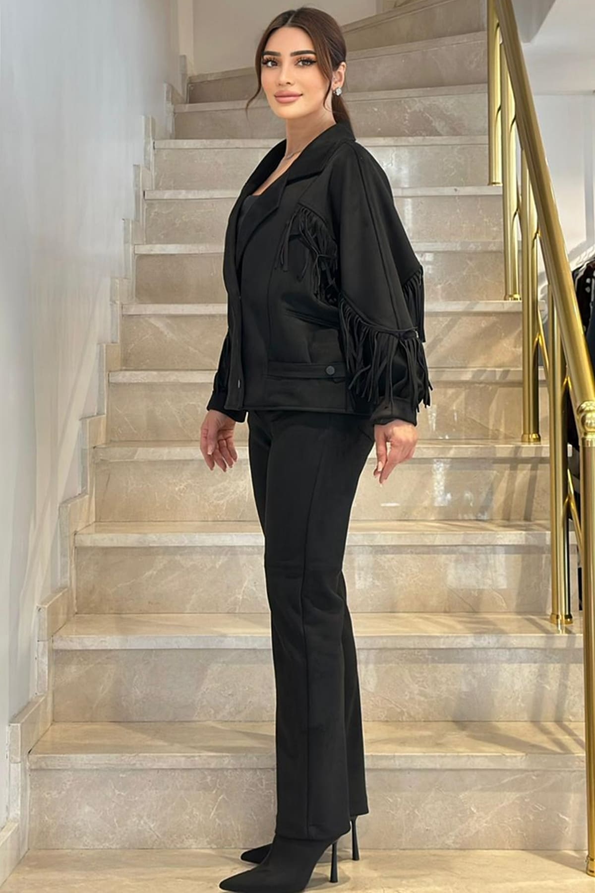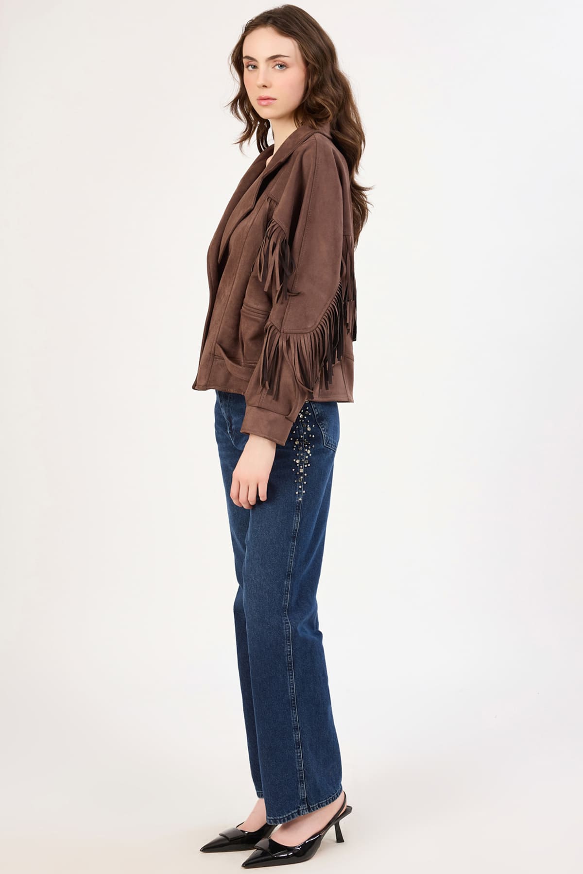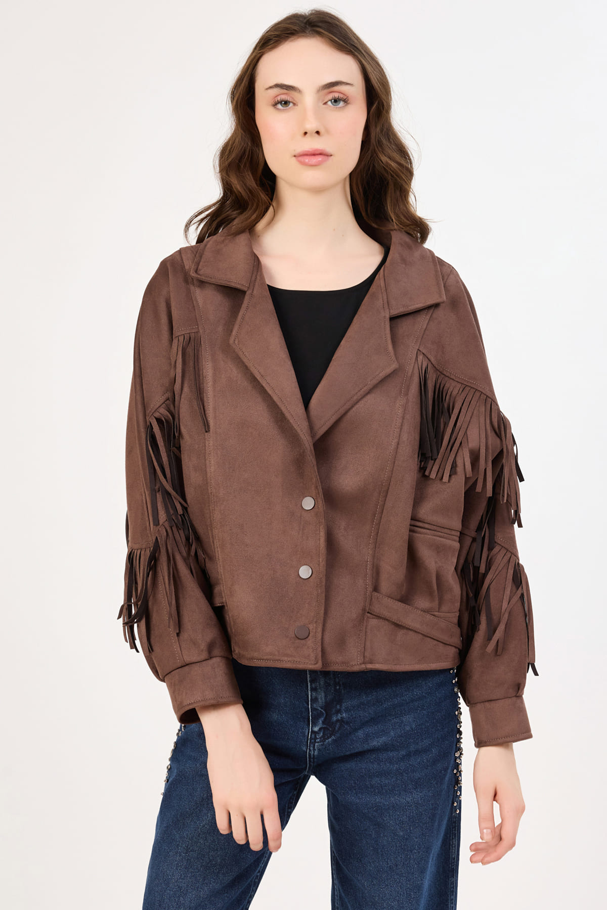 ÜRÜN BİLGİSİ:Yeni nesil sürdürülebilir sof yüzeyli süet kumali,kruvaze kapamalı,çıt çıt detaylı,cepli,astasrlı rahat form şık süet ceket.1 beden 36-38-40 2 beden 42-44-46 alabilir.