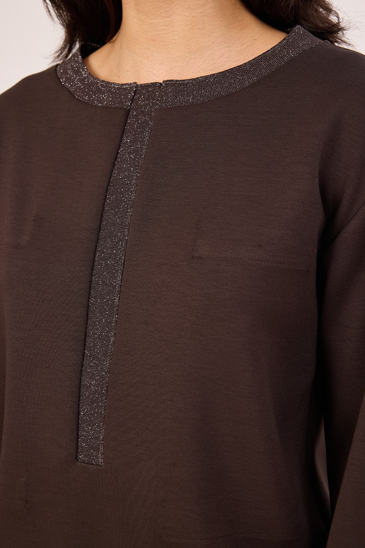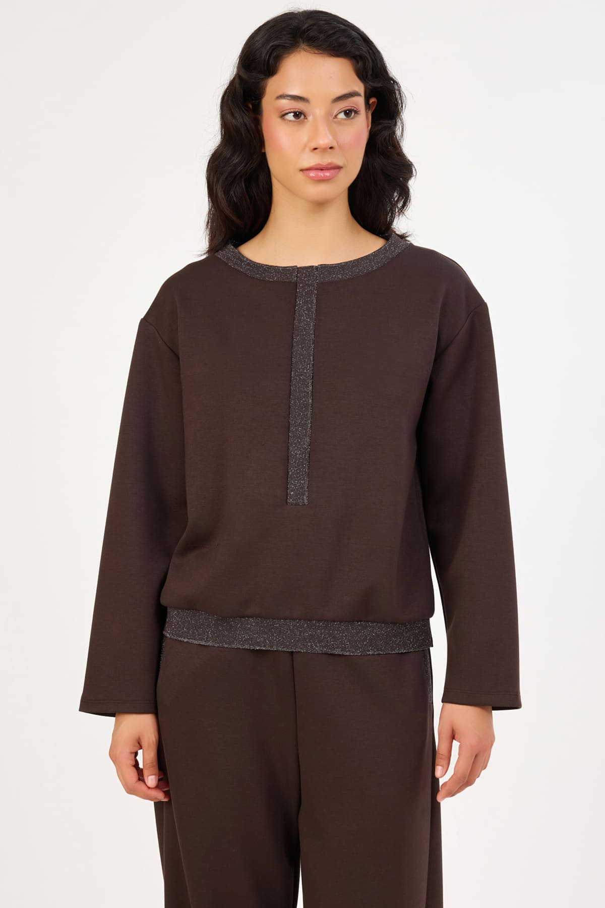 ÜRÜN BİLGİSİ:Hafif esnek dokulu örme kumaş,yaka ve etek ucu uyumlu renkte ribana bant detaylı,yuvarlak yakalı,uzun kollu örme bluz