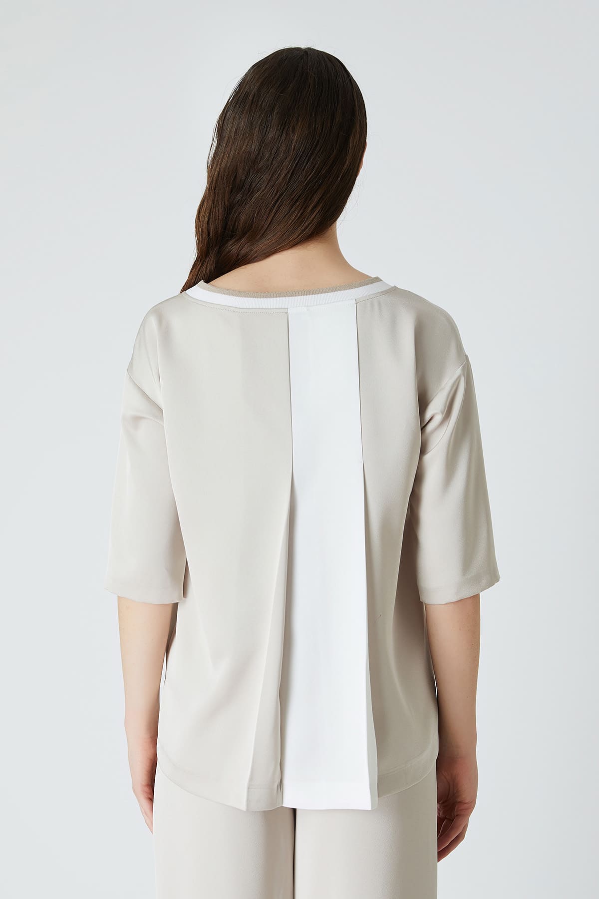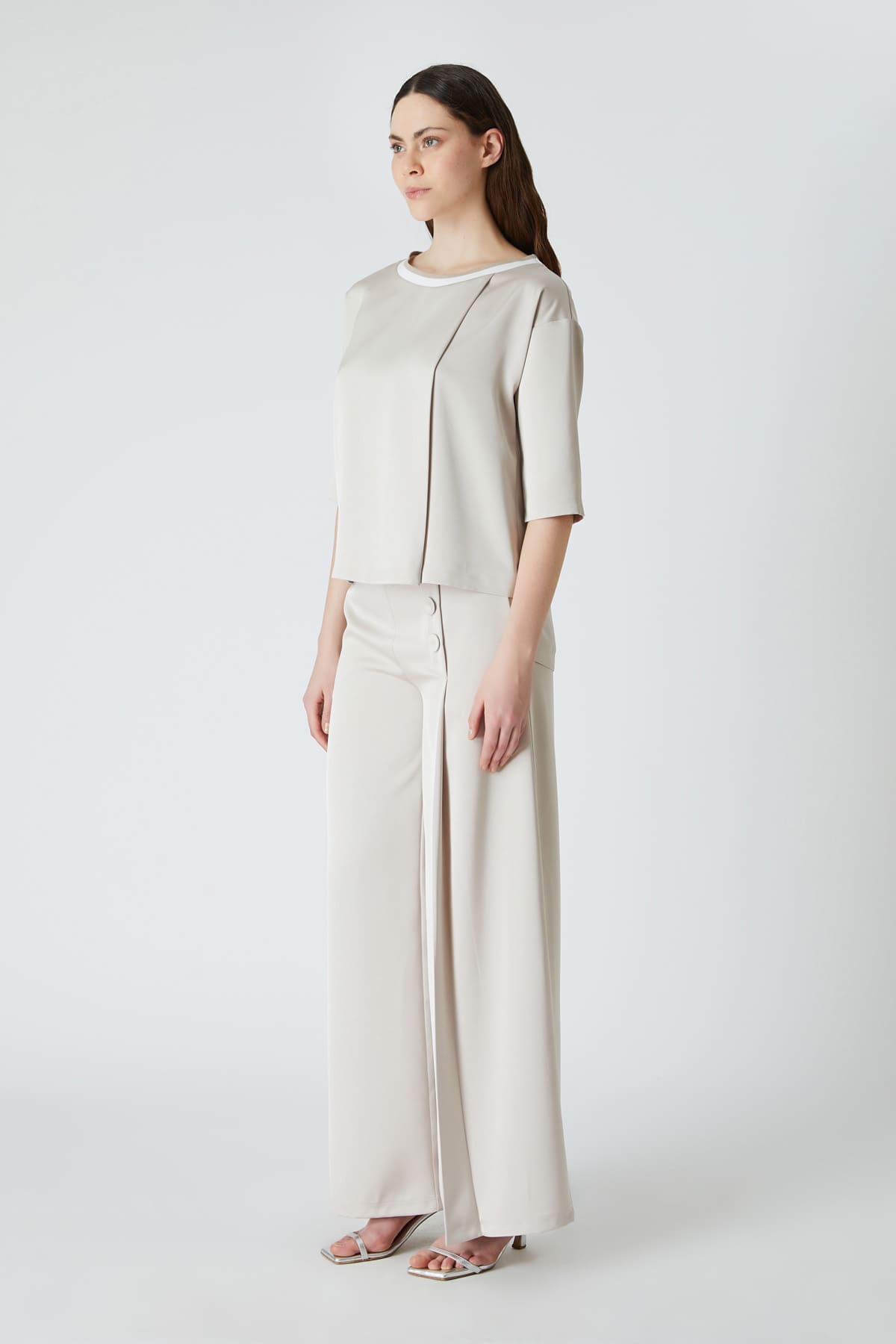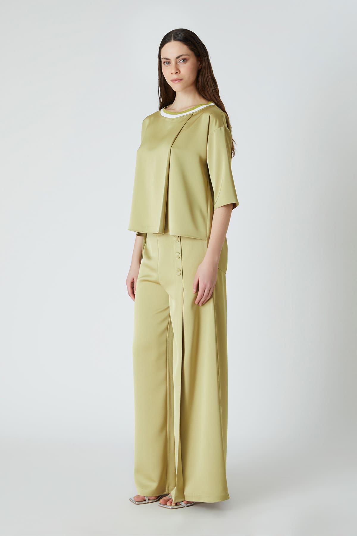 ÜRÜN BİLGİSİ:Parlak yüzeyli dökümlü kumaş,yakası ribanalı,yarım kollu,ön ve arkası katlama detaylı,arka etek ucu uzun,rahat form şık bluz.