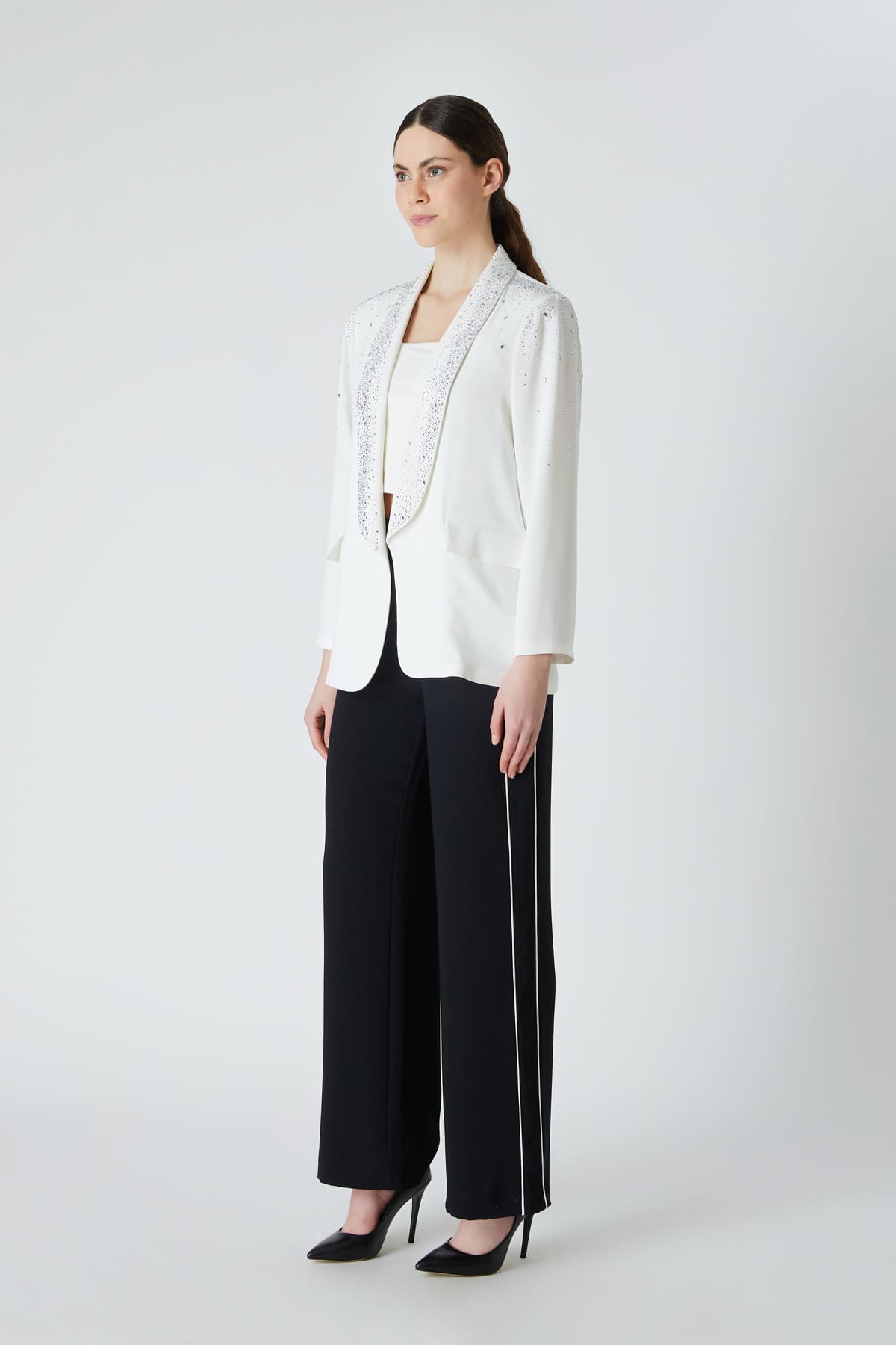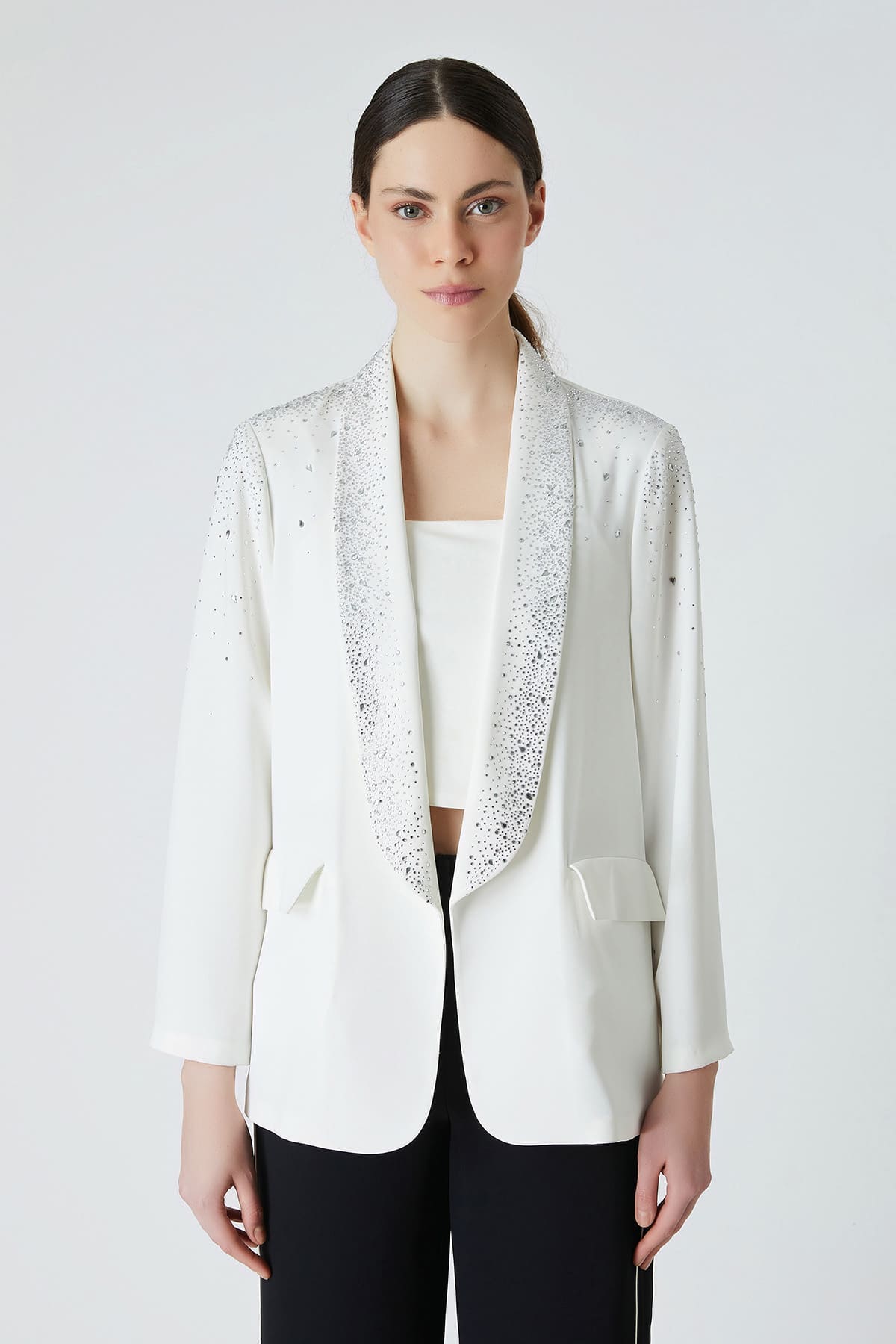 Şal yakalı taşlı ceket