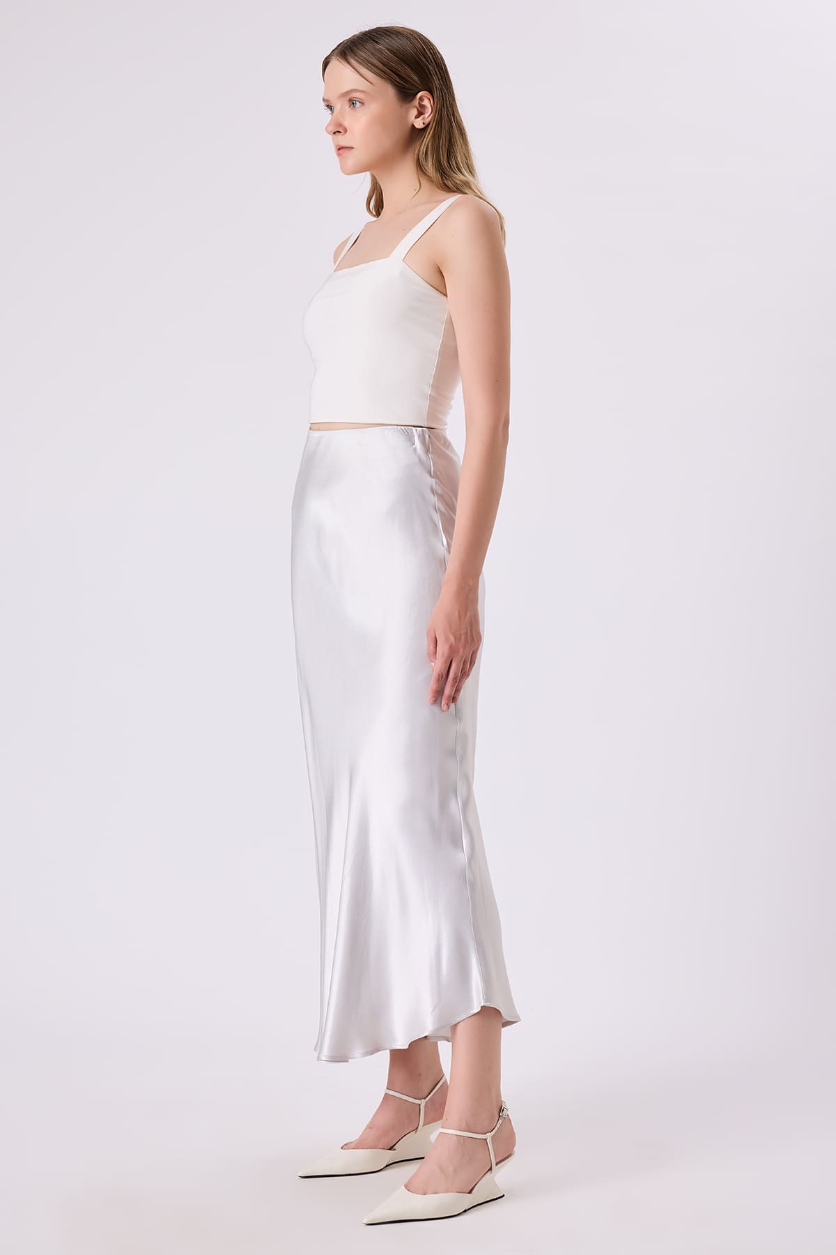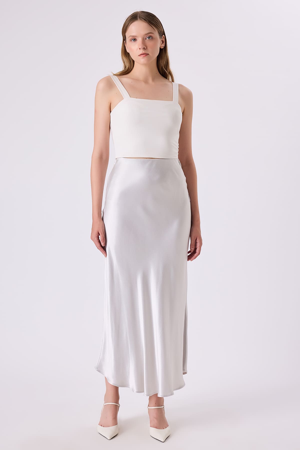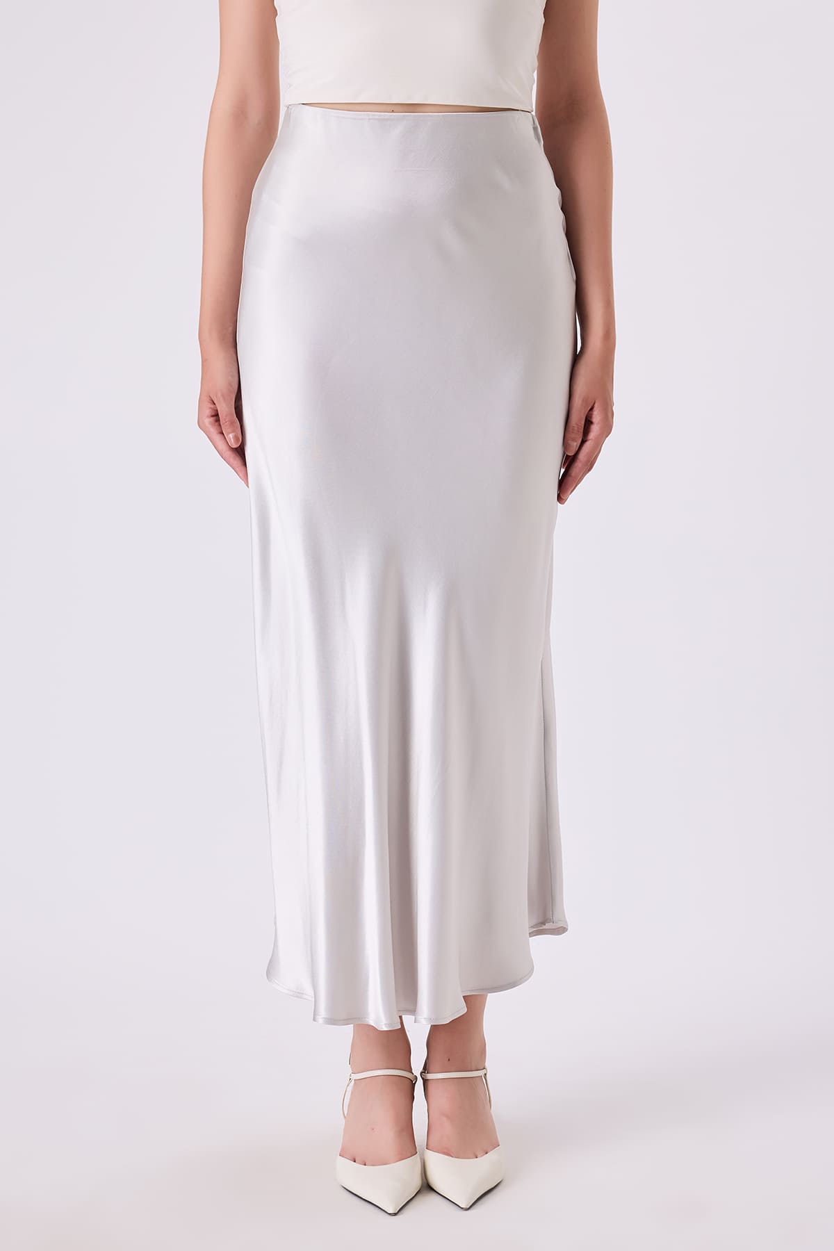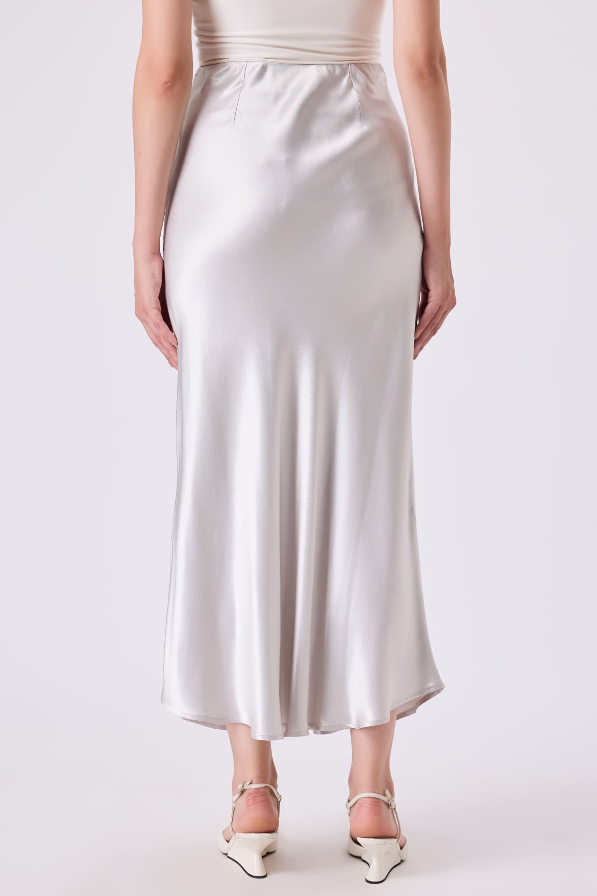 ÜRÜN BİLGİSİ:Floş içerikli saten kumaş,normal bel,elastik bel bantlı,fermuarlı,midi boy etek.